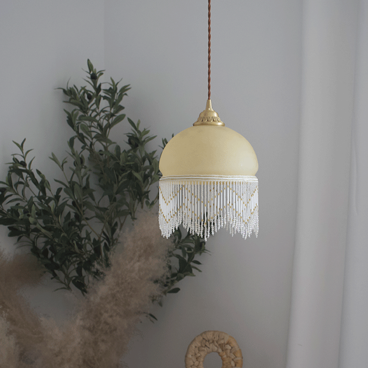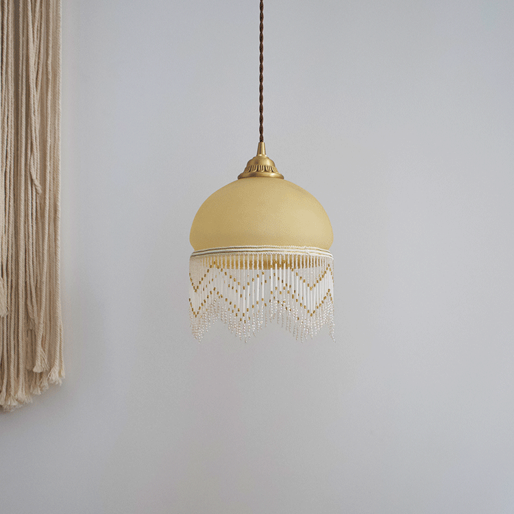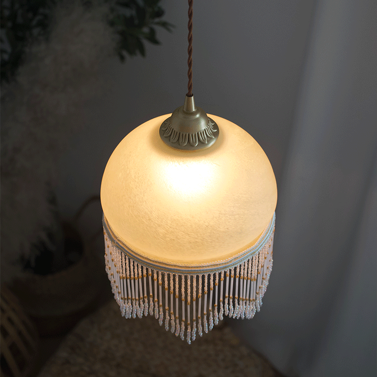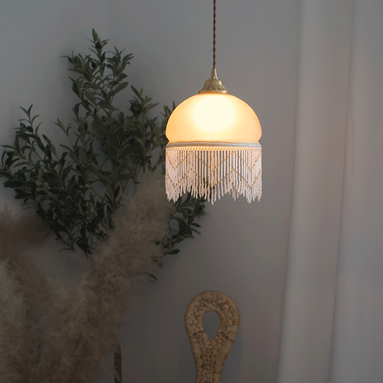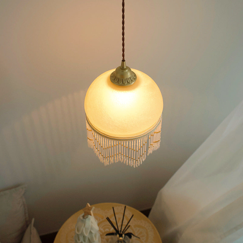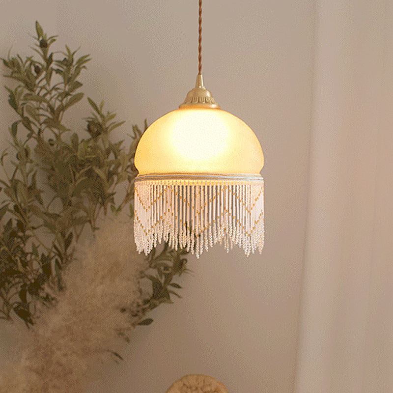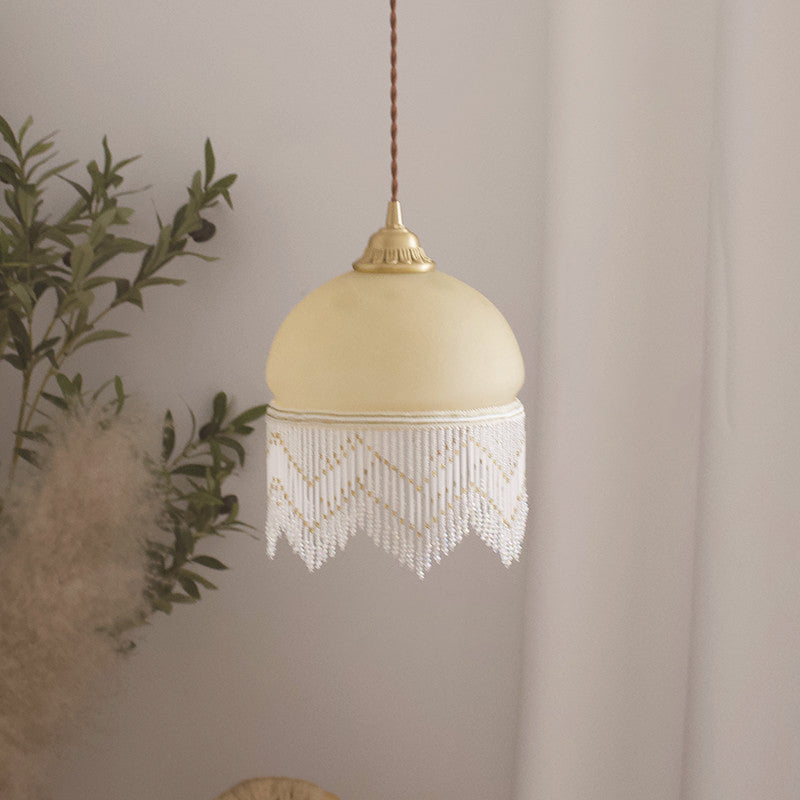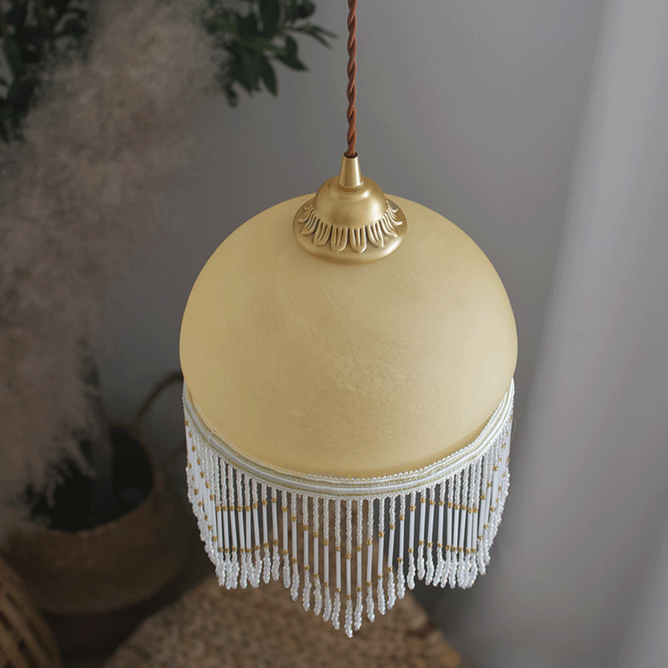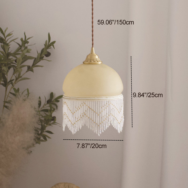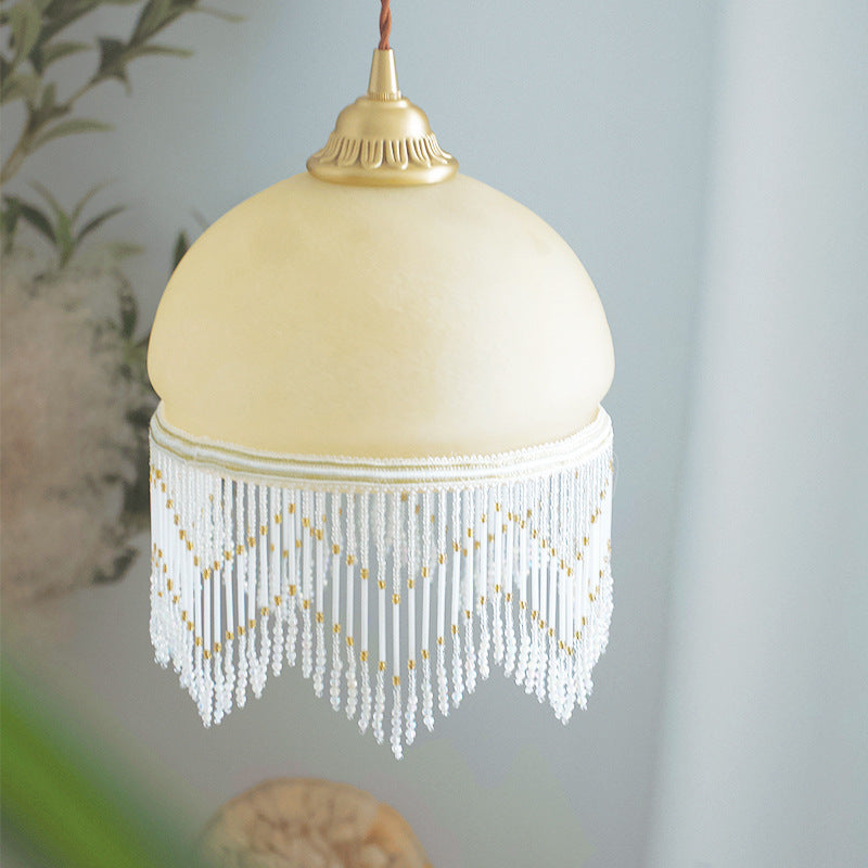 伝統的なフレンチドームガラス真鍮1灯ペンダントライト(リビングルーム用)