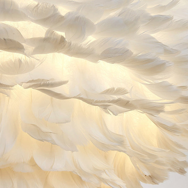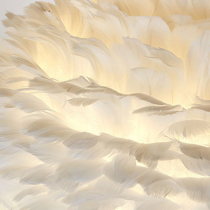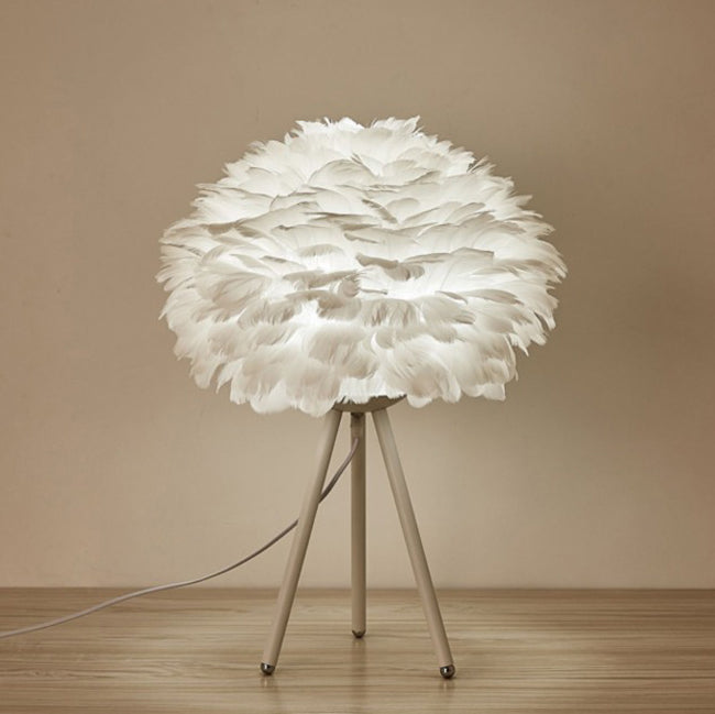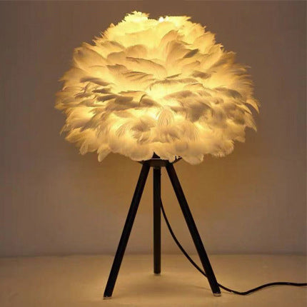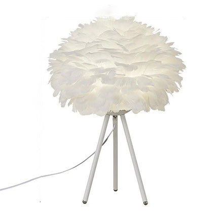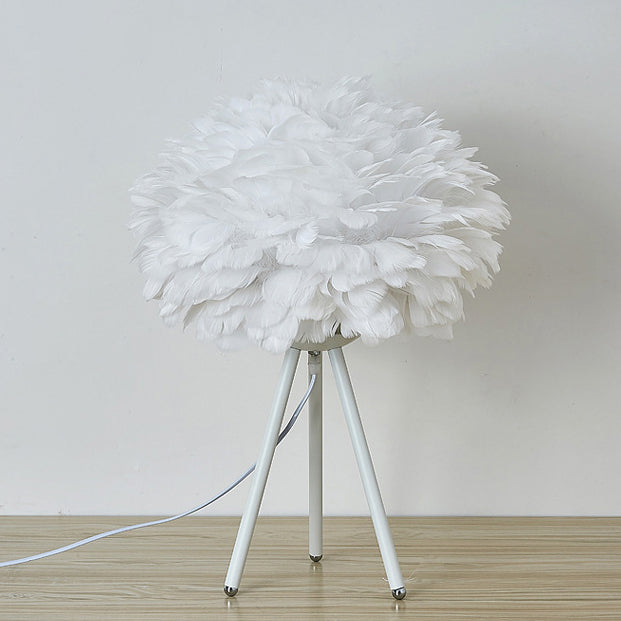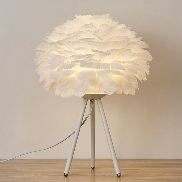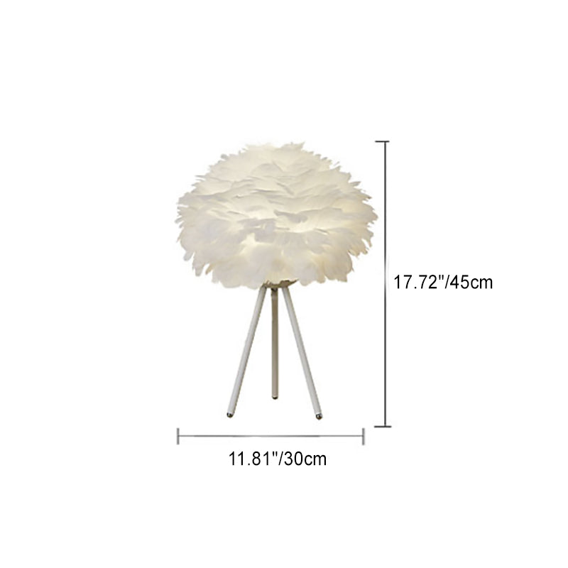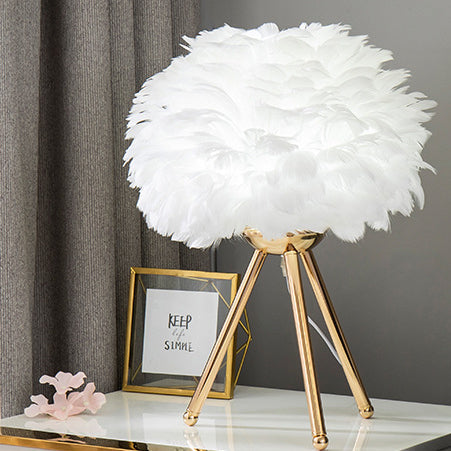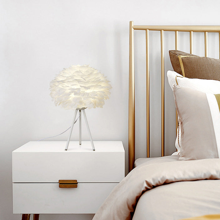 Traditional French Feather Spherical Shade Hardware Tripod 1-Light Table Lamp For Bedroom
