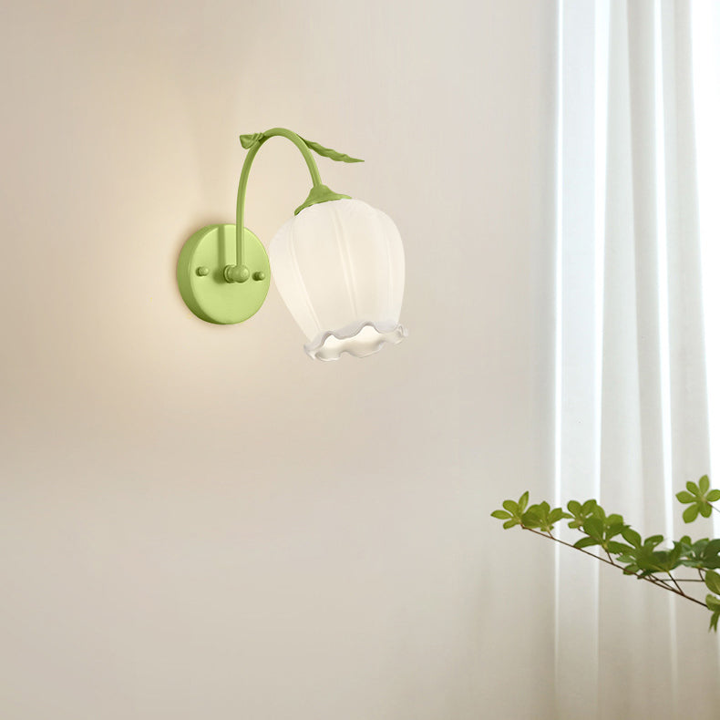 伝統的なフランスの花柄ラウンドカーブガラスアイアン1ライトウォールスコンスランプリビングルーム用