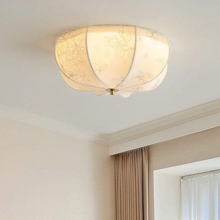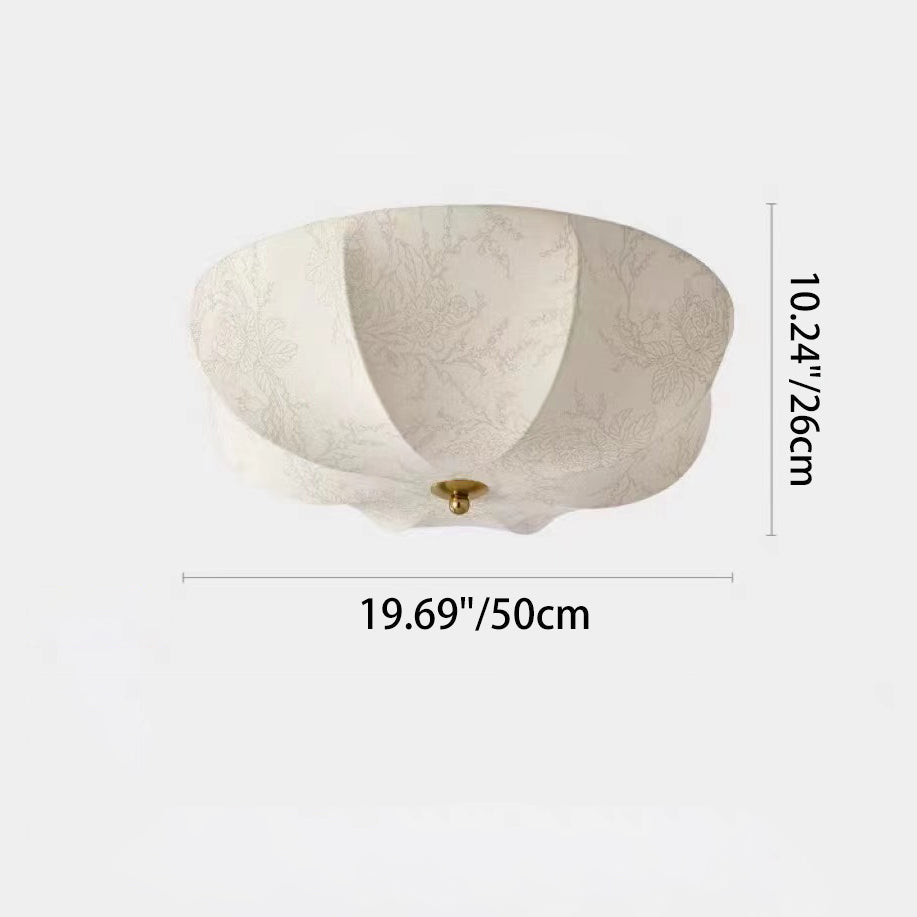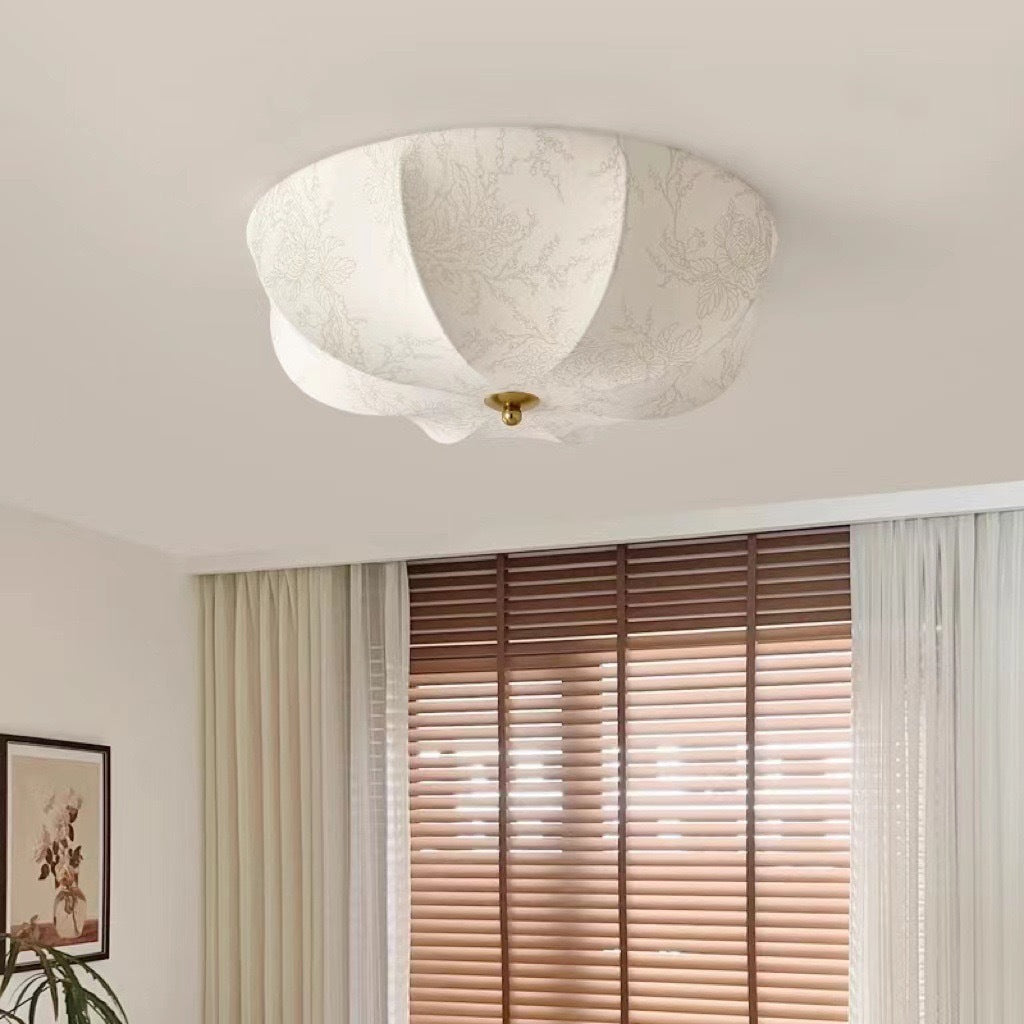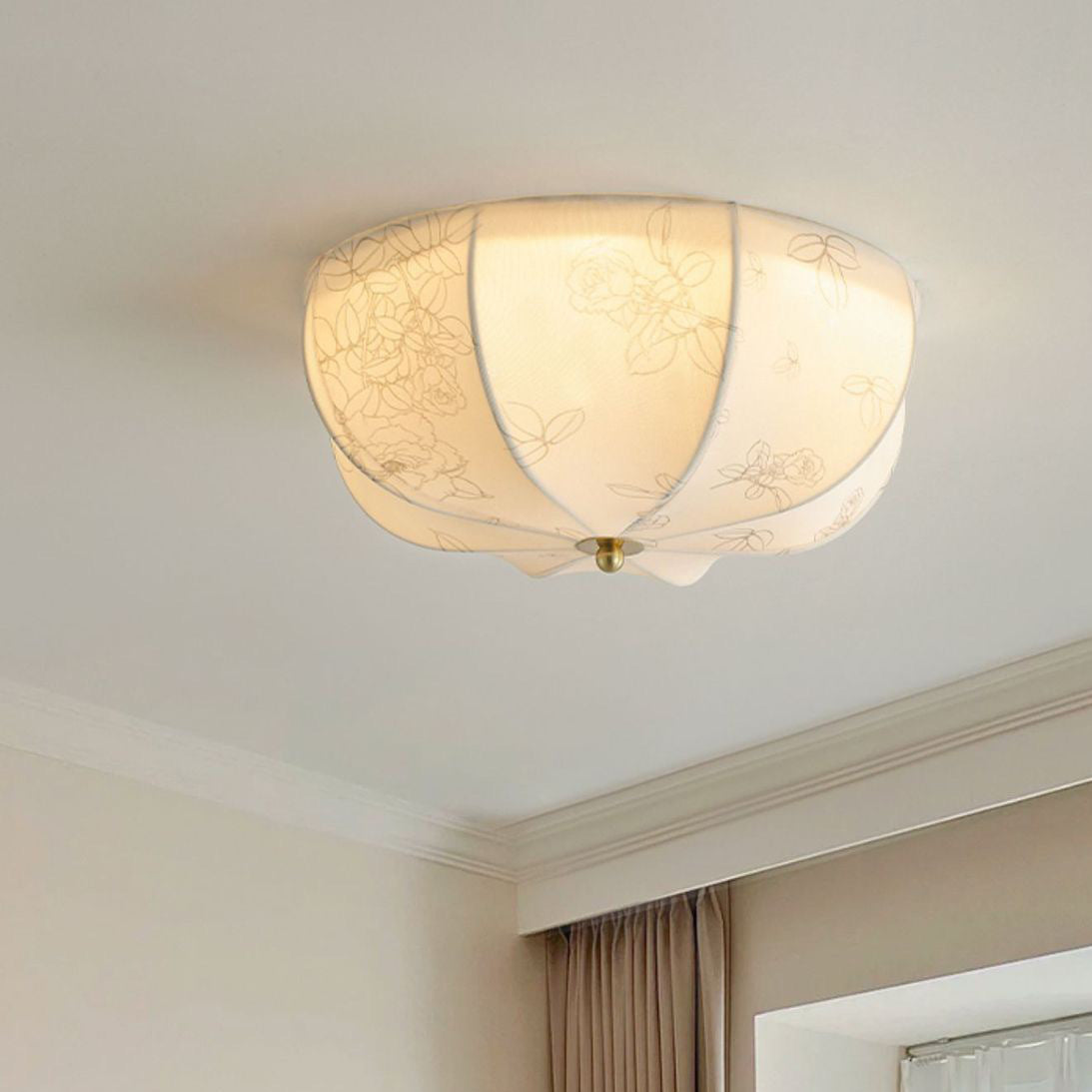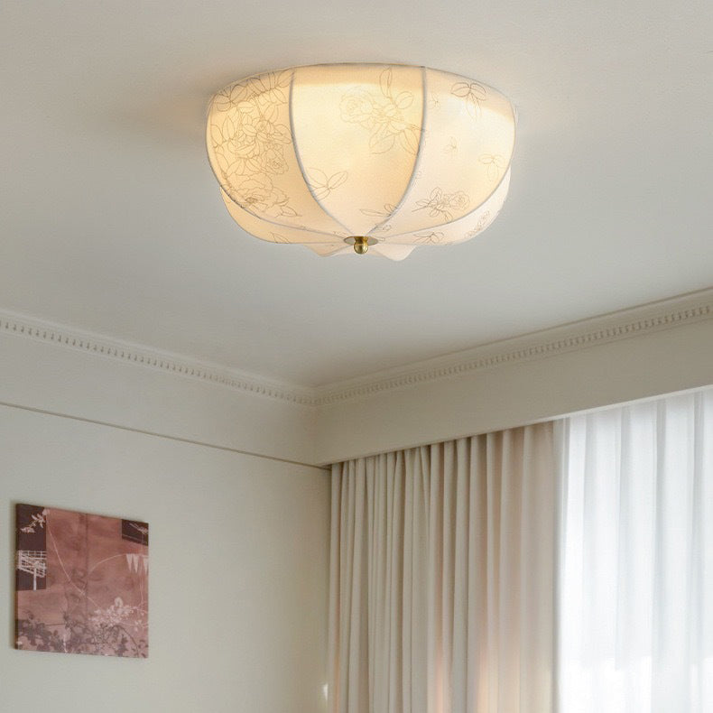伝統的なフランスの鉄と布を使用した円形の花柄LEDフラッシュマウントシーリングライト(リビングルーム用)