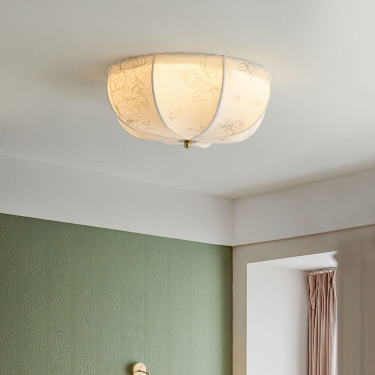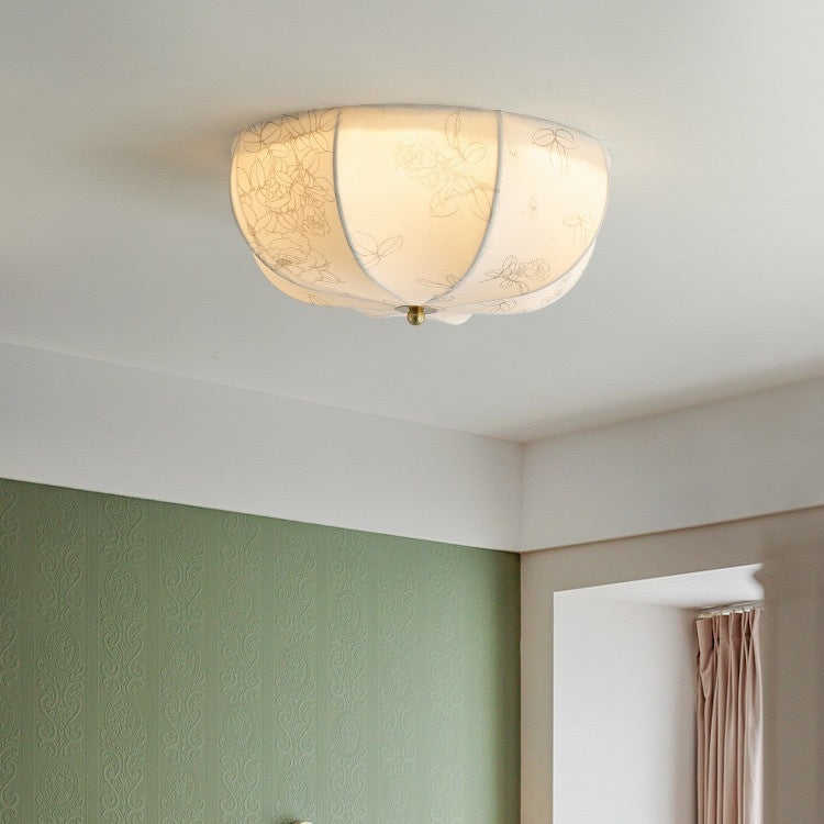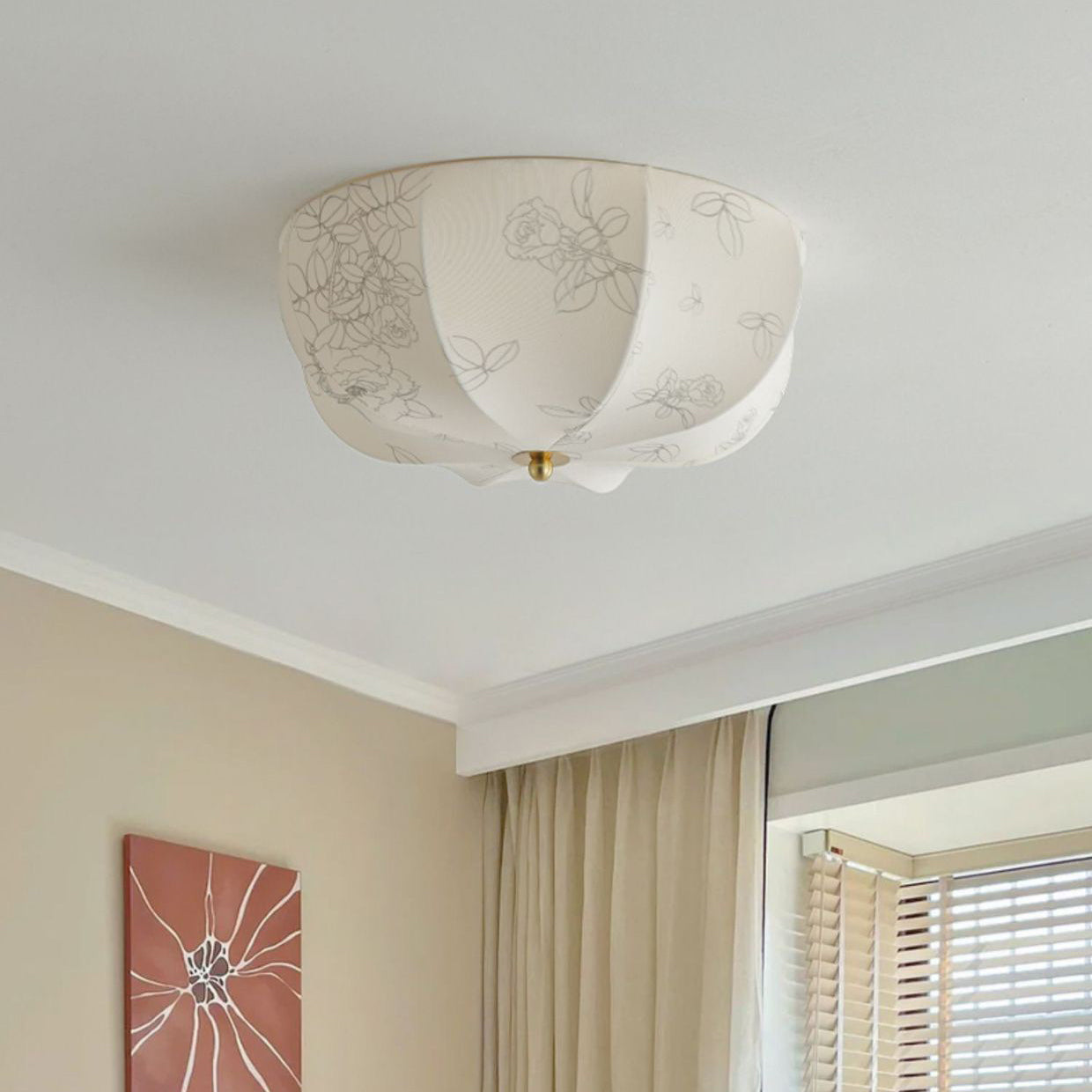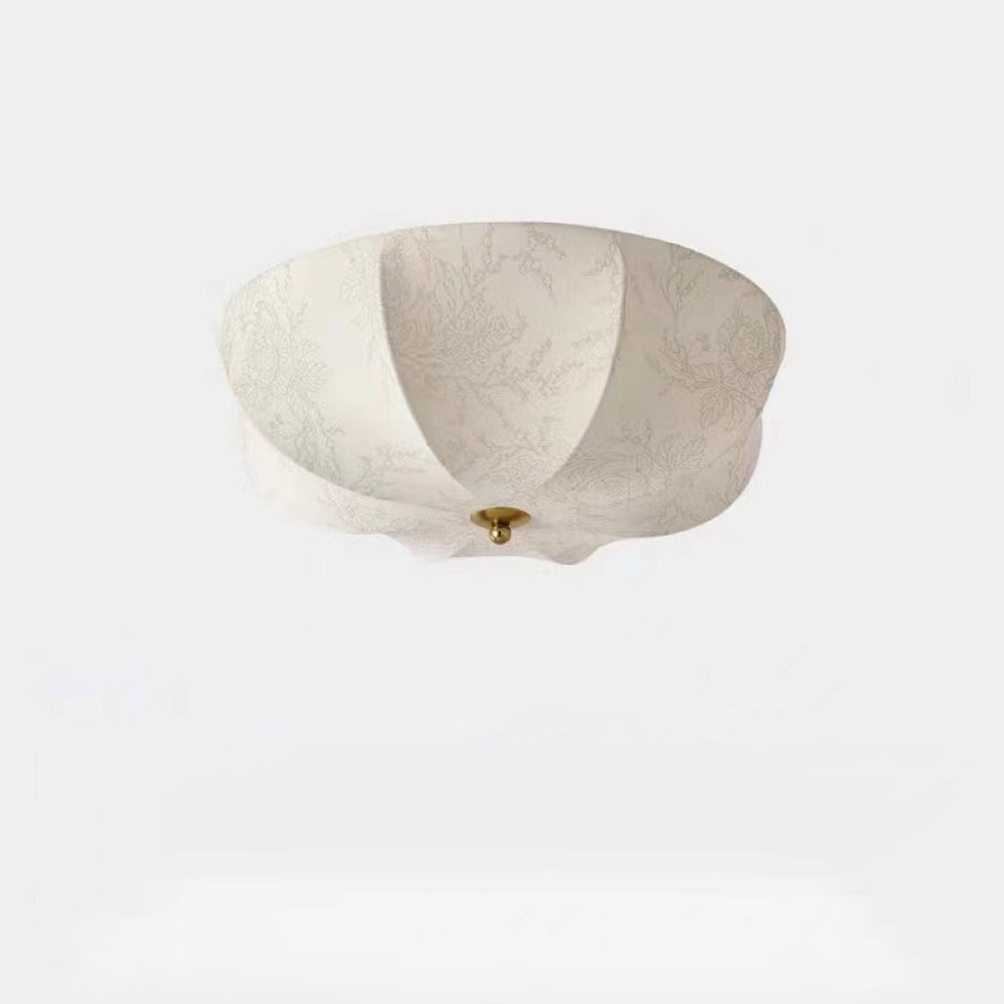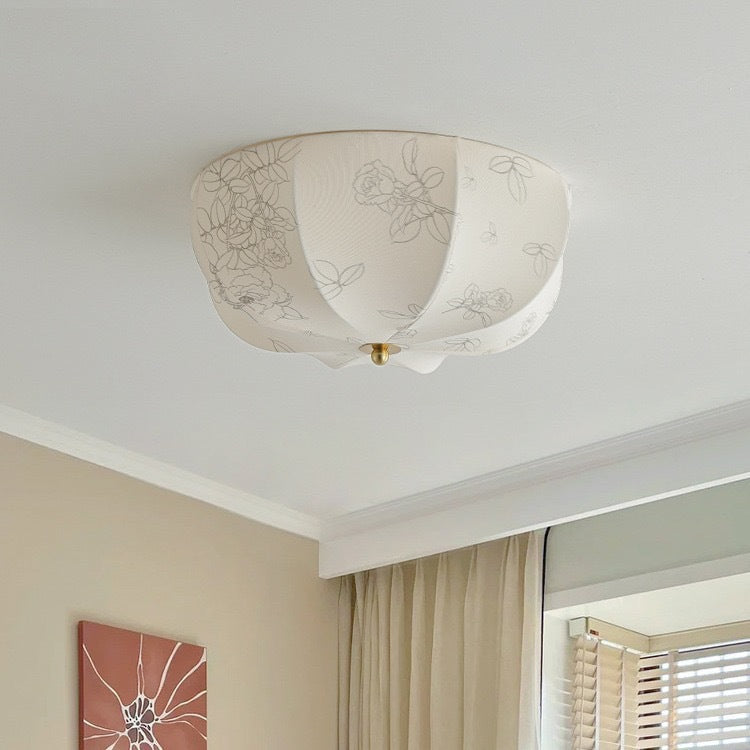 伝統的なフランスの鉄と布を使用した円形の花柄LEDフラッシュマウントシーリングライト(リビングルーム用)