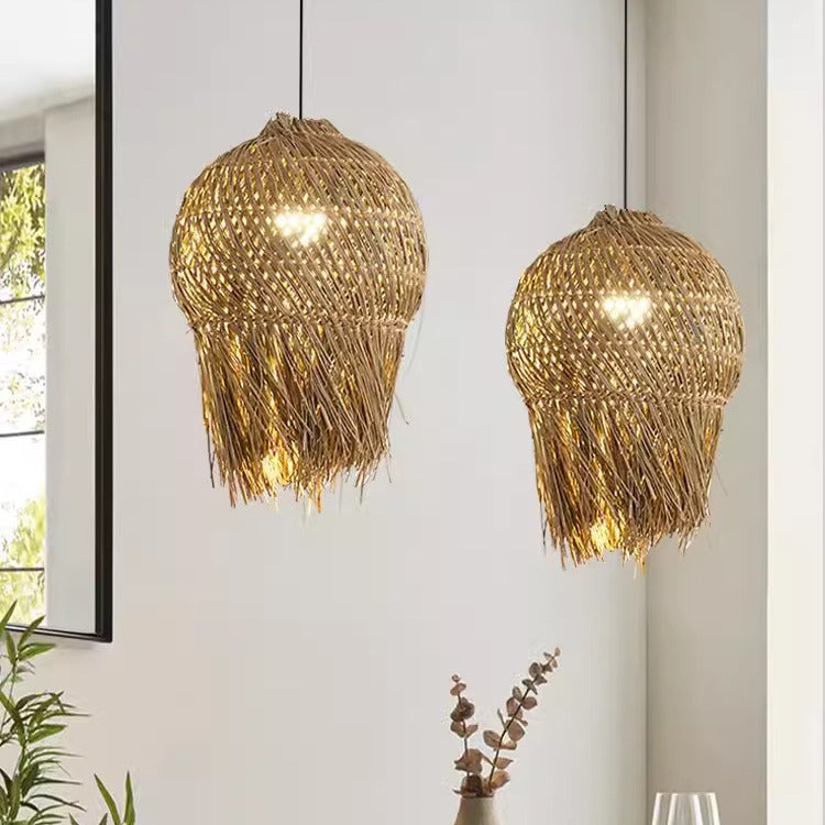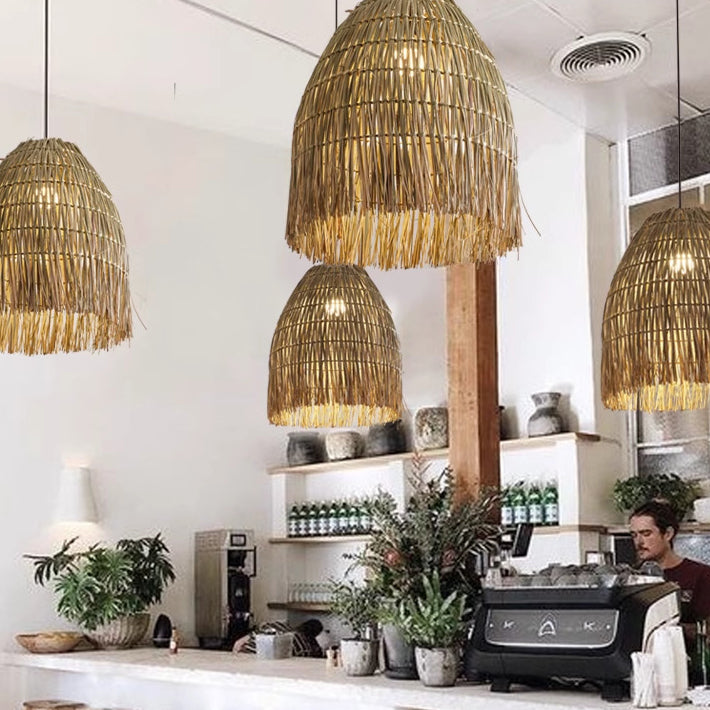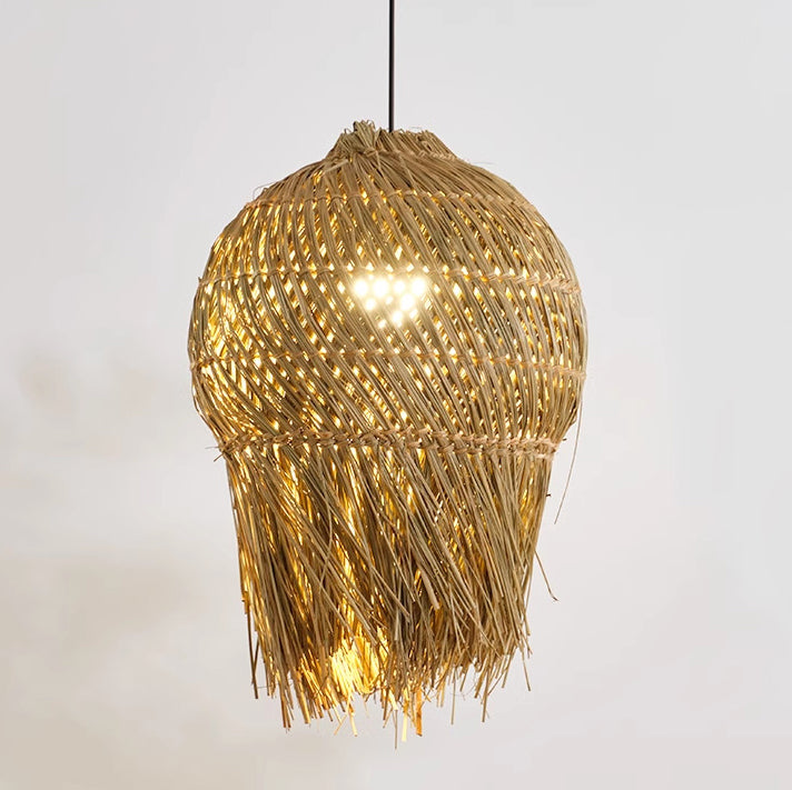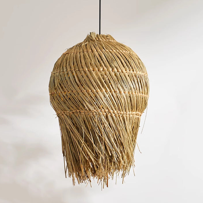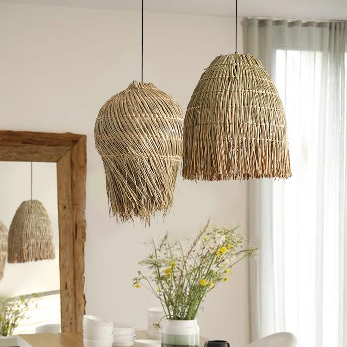 伝統的なフランスの麦わら編みの丸型シェード、リビングルーム用1灯ペンダントライト