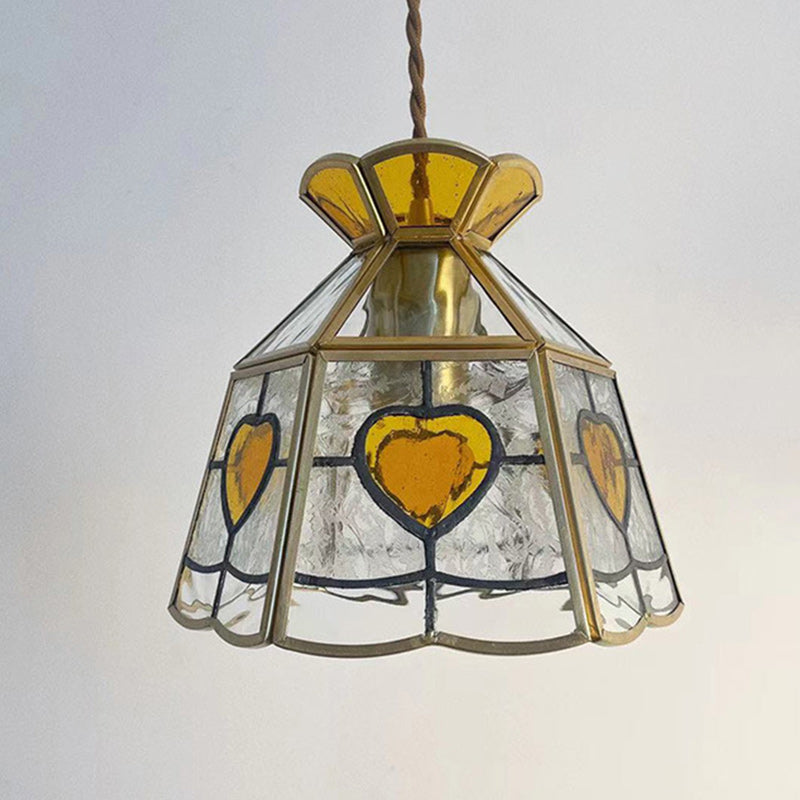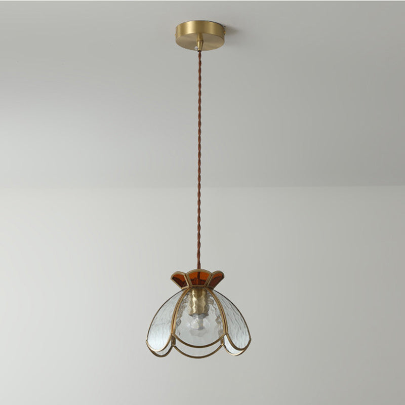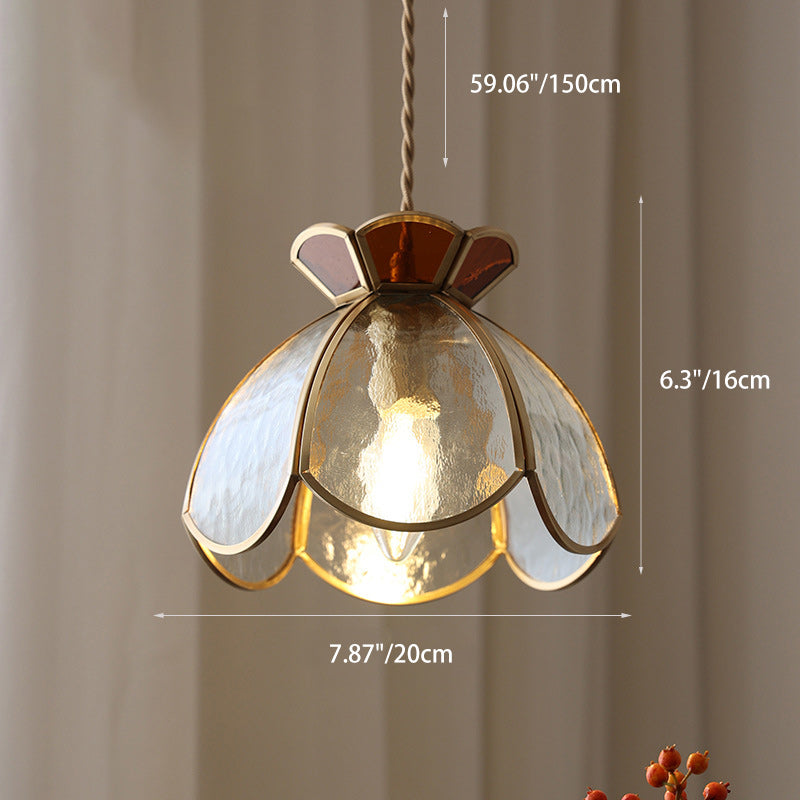 伝統的な日本の真鍮フレーム、フロストリップルガラス、花びら型、リビングルーム用1灯ペンダントライト