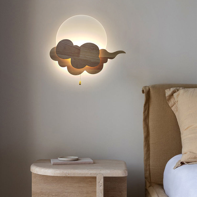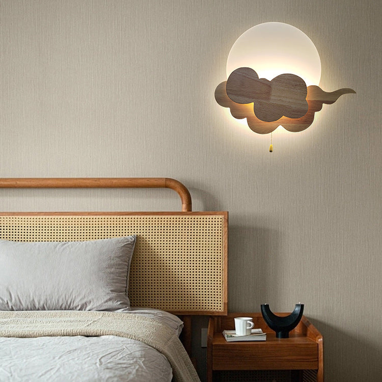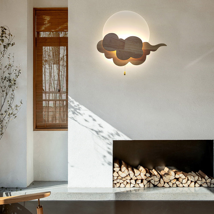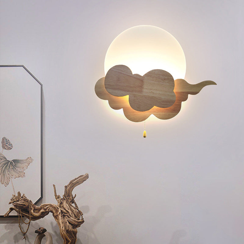 伝統的な日本のクラウドオークアクリルLED壁取り付け用燭台ランプリビングルーム用