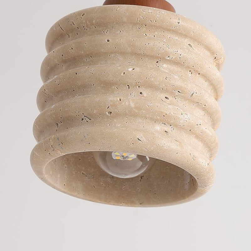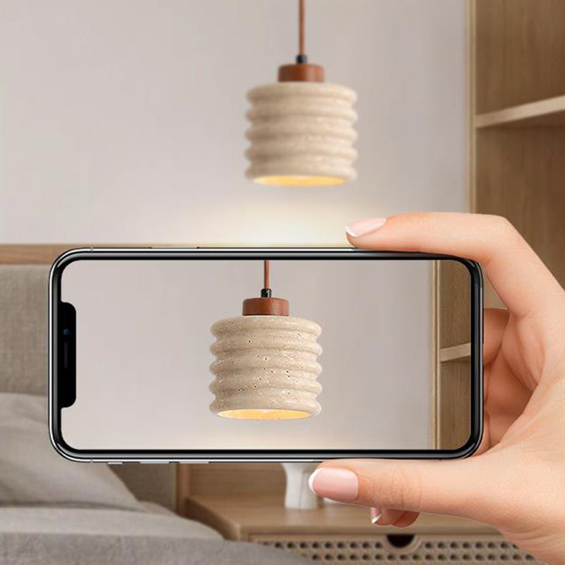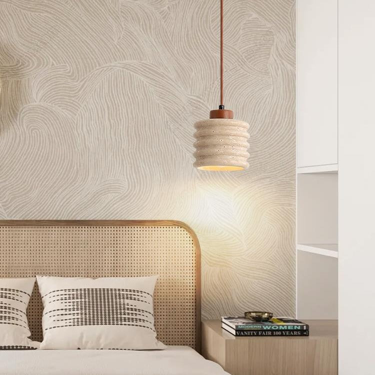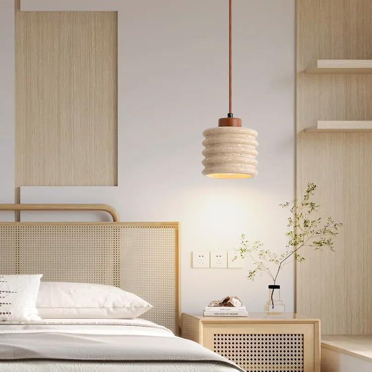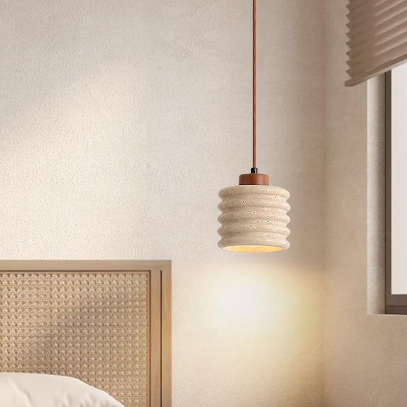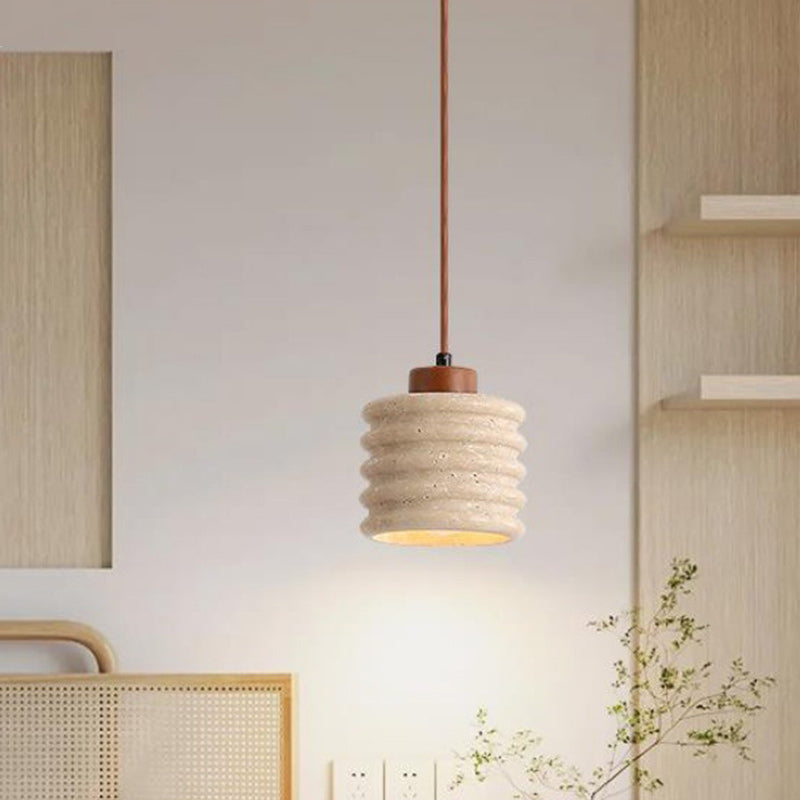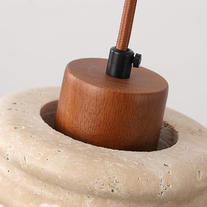 伝統的な日本の柱と石材を使用したリビングルーム用1灯ペンダントライト