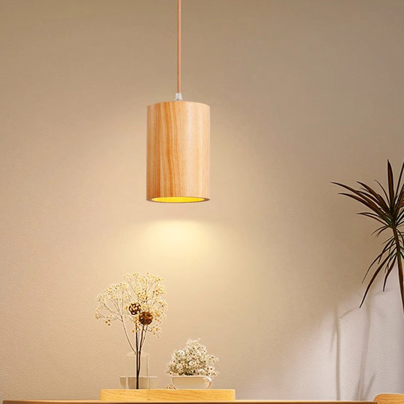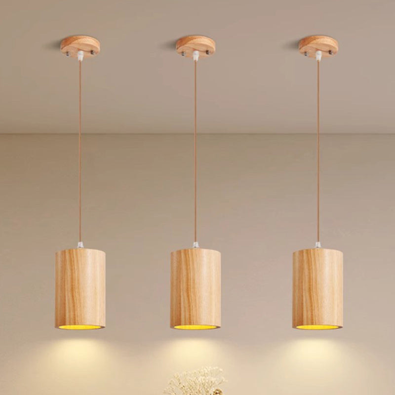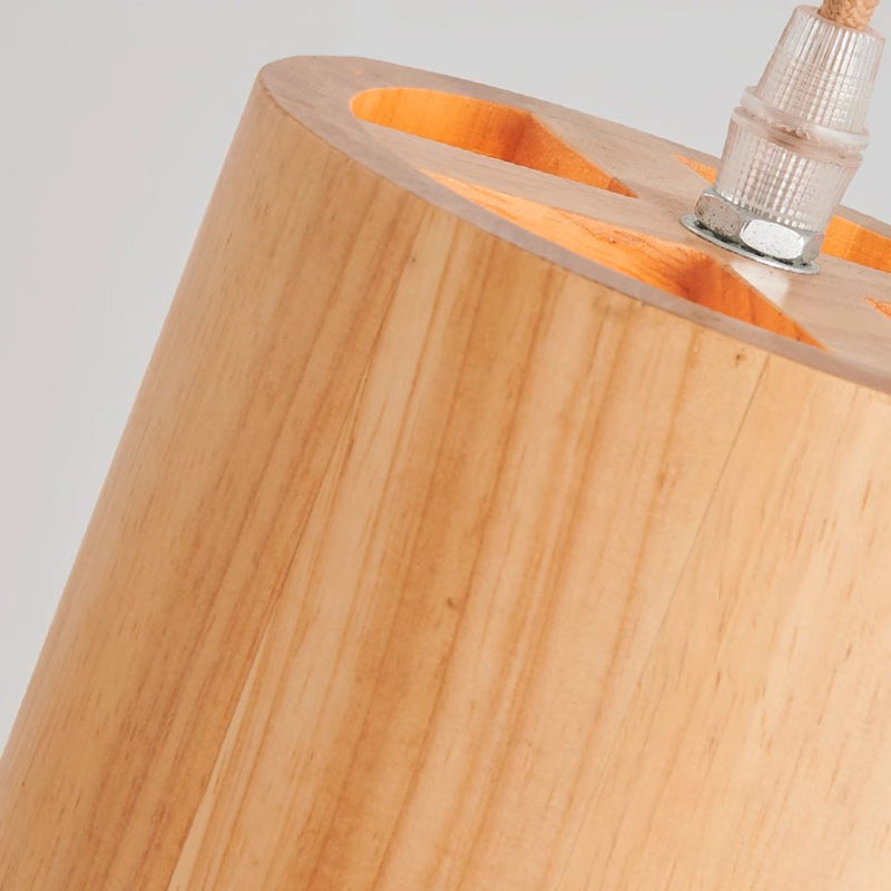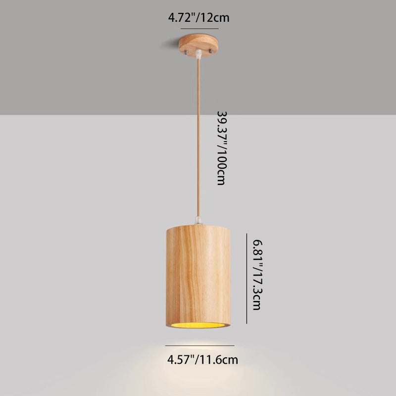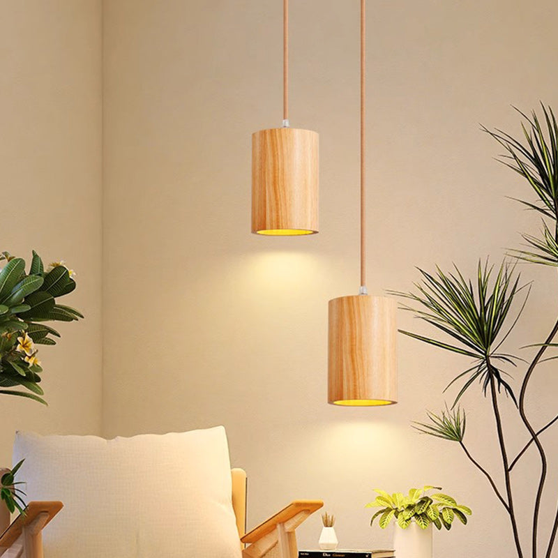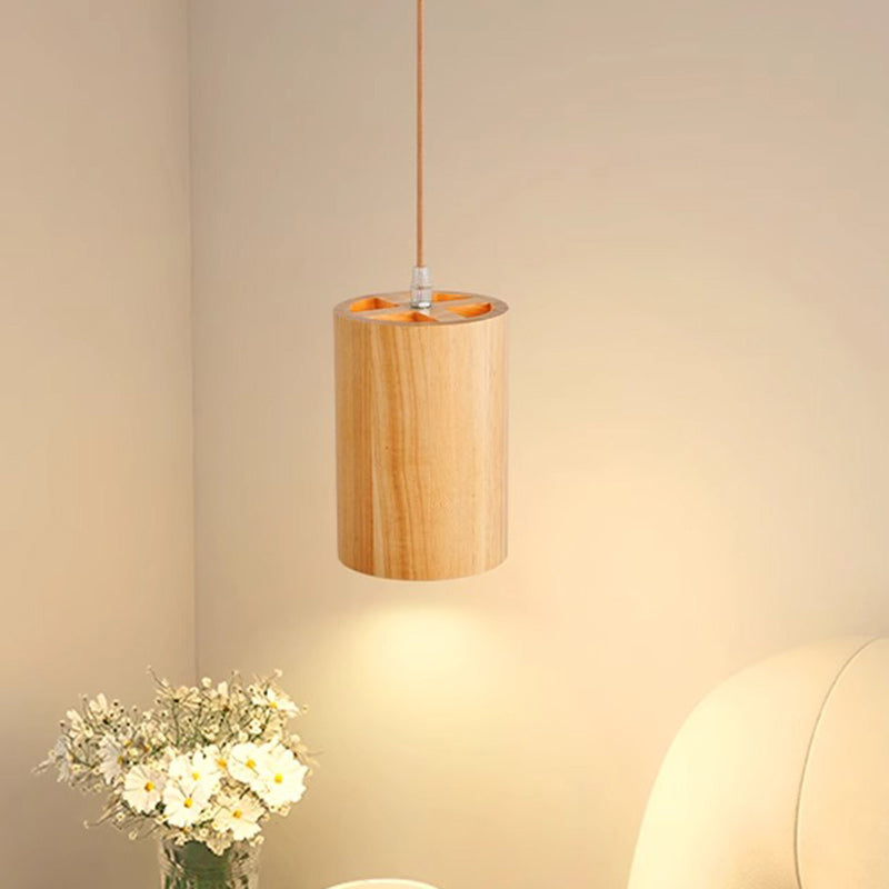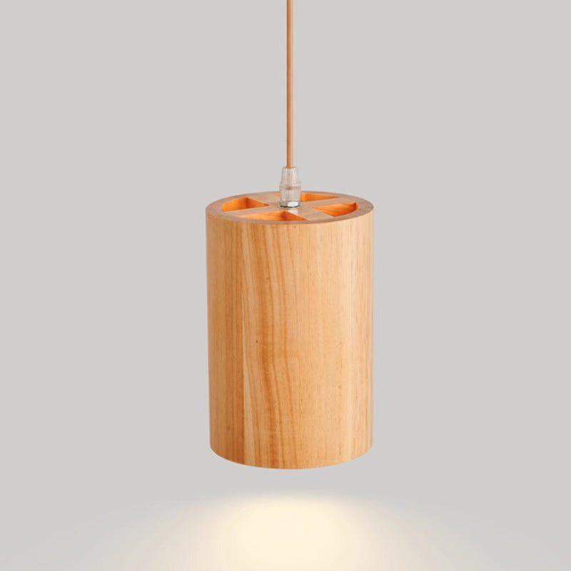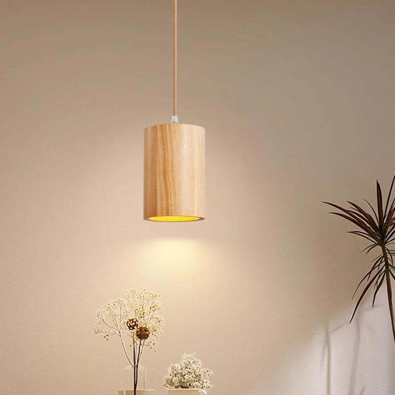 リビングルームに最適な、伝統的な日本の柱と木製1灯ペンダントライト