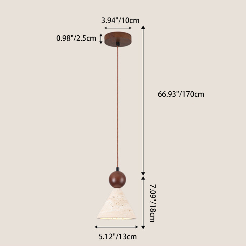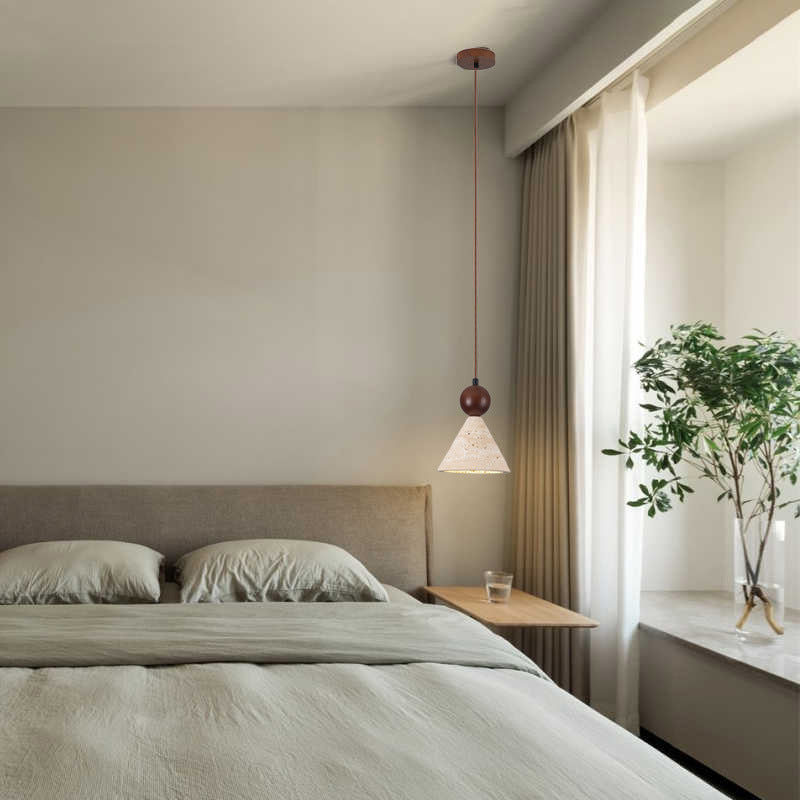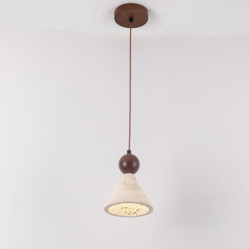 リビングルームに最適な、伝統的な日本の円錐形ウッドストーンペンダントライト1灯