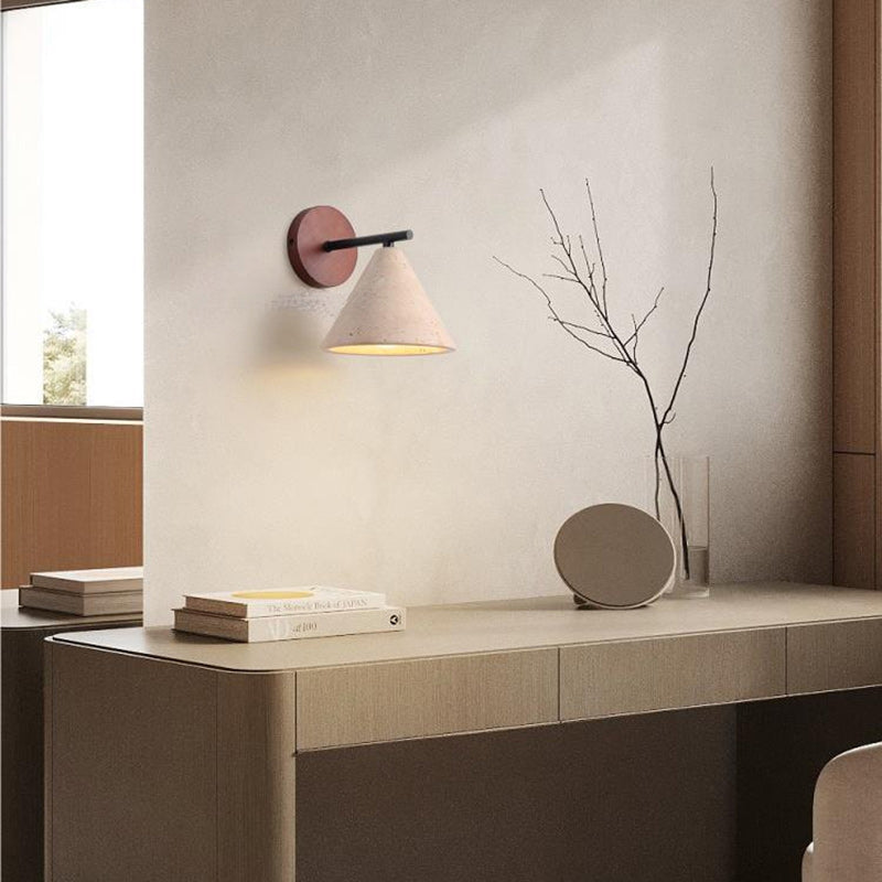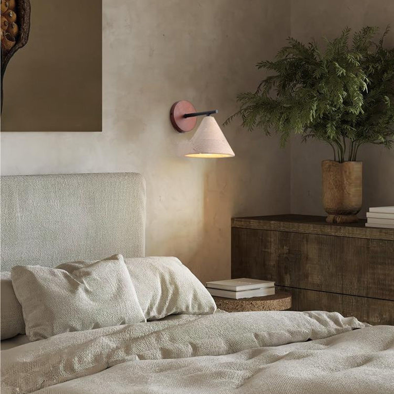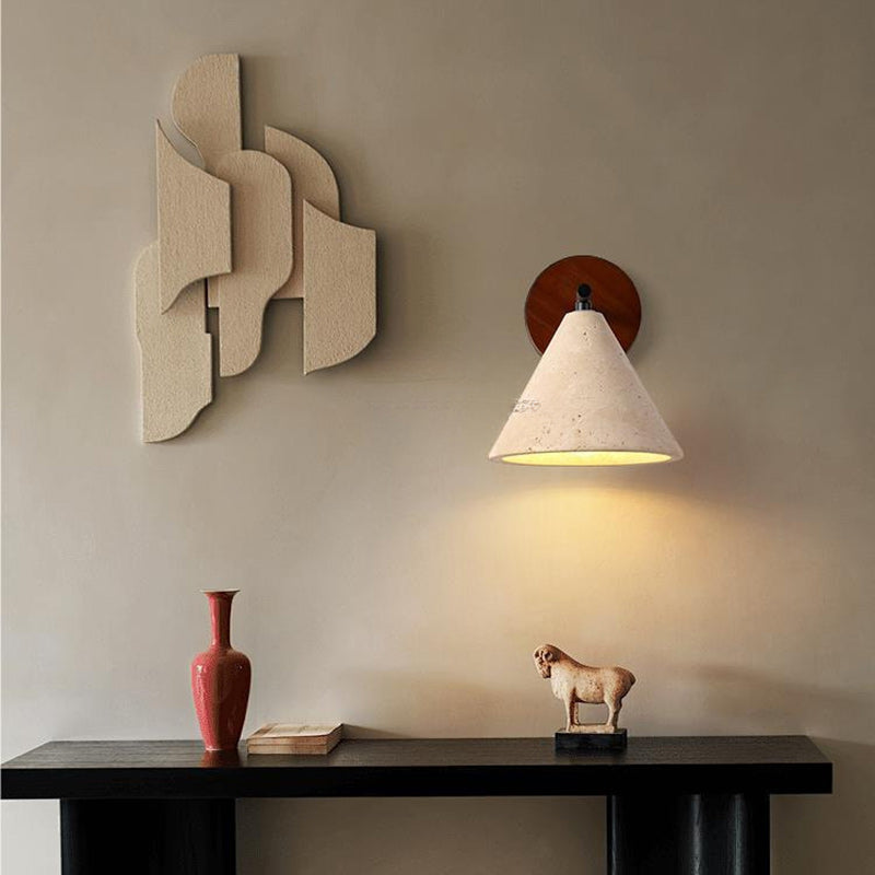 リビングルーム用、伝統的な日本の円錐形木製石1灯壁取り付け用燭台ランプ