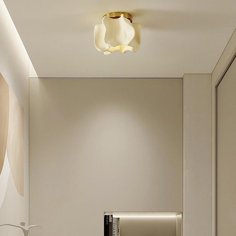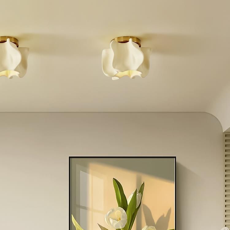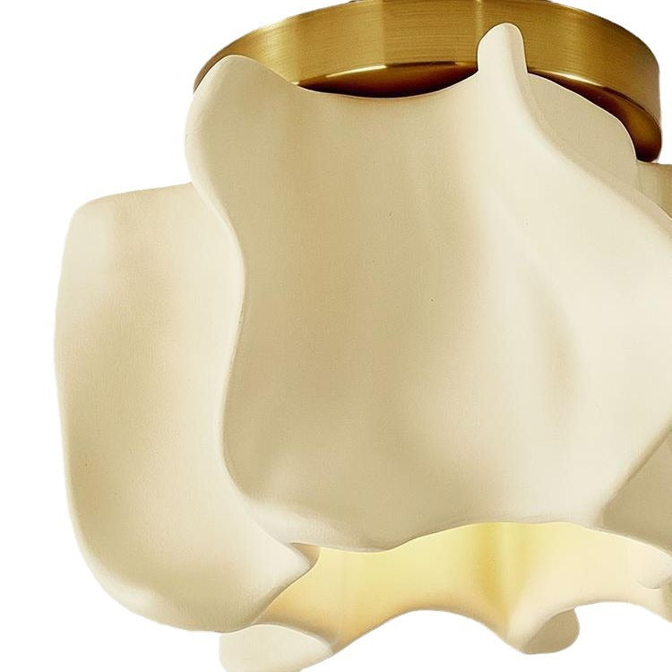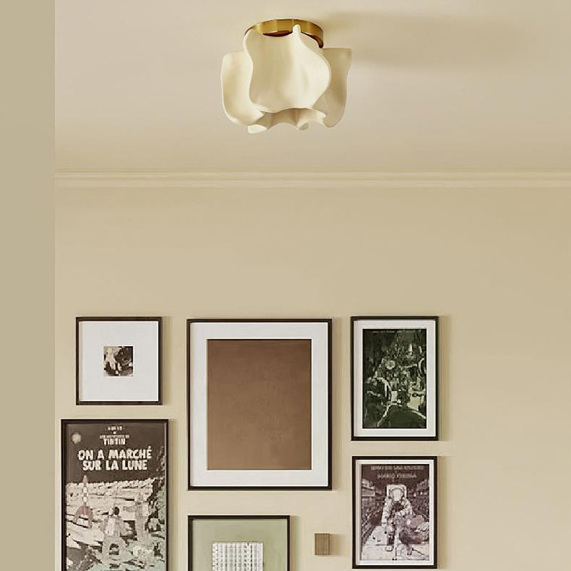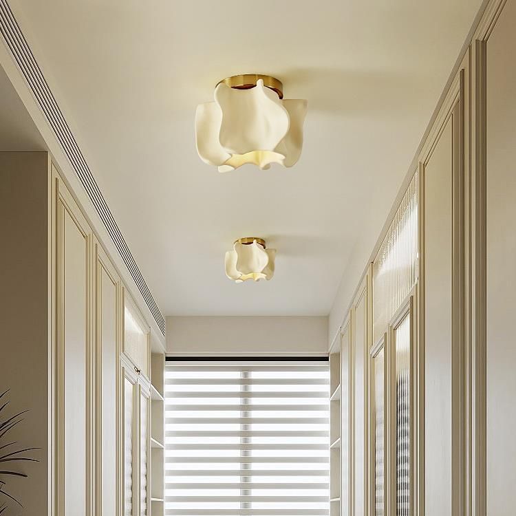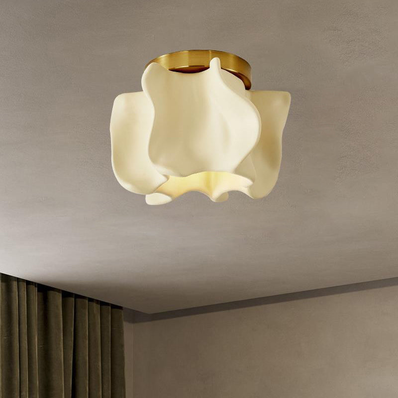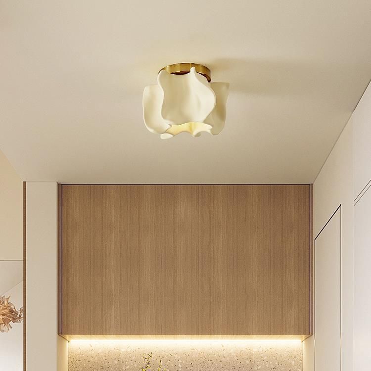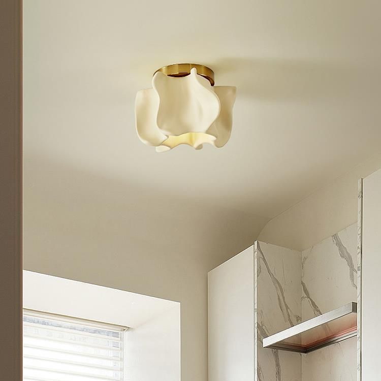 伝統的な日本の曲線花ディスクベース樹脂メタル1ライトセミフラッシュマウントシーリングライトリビングルーム用