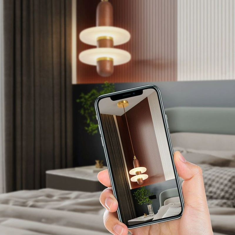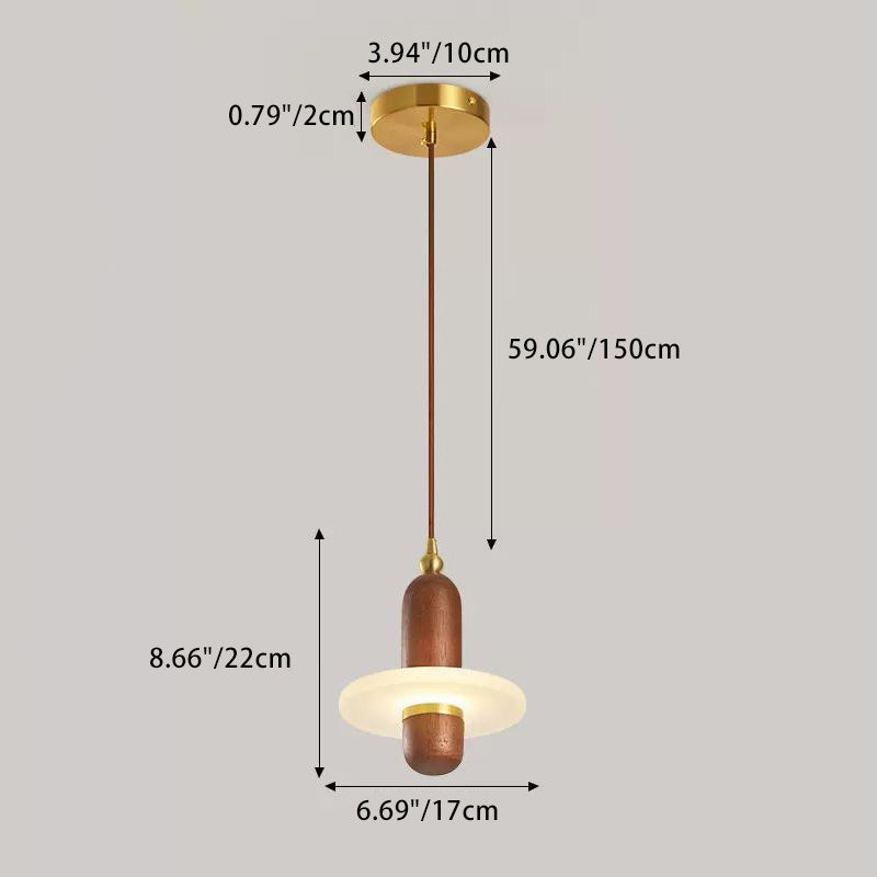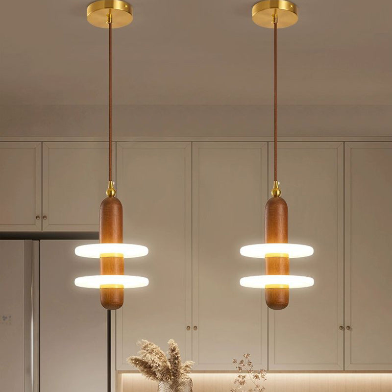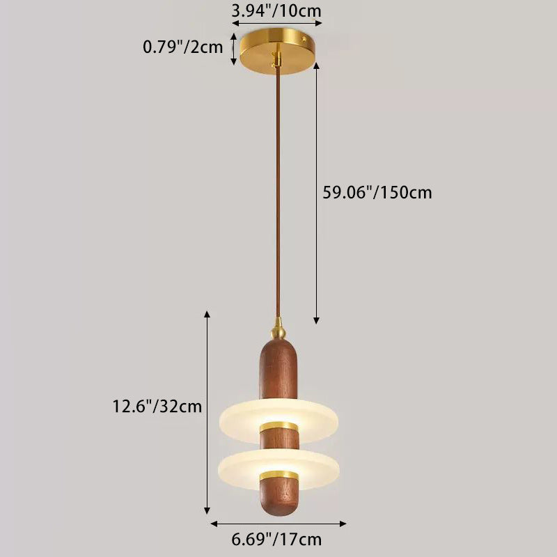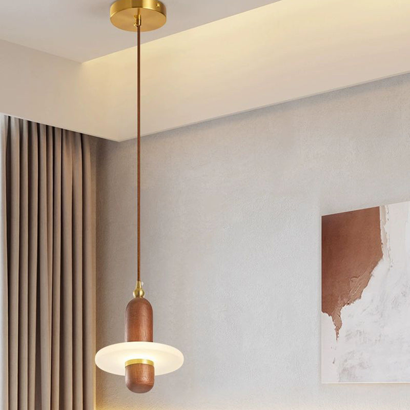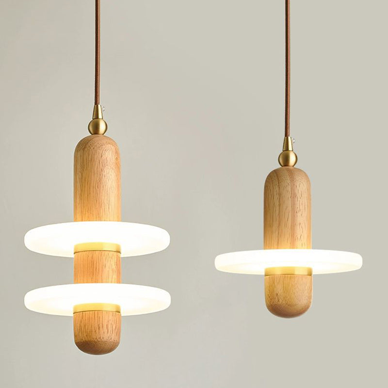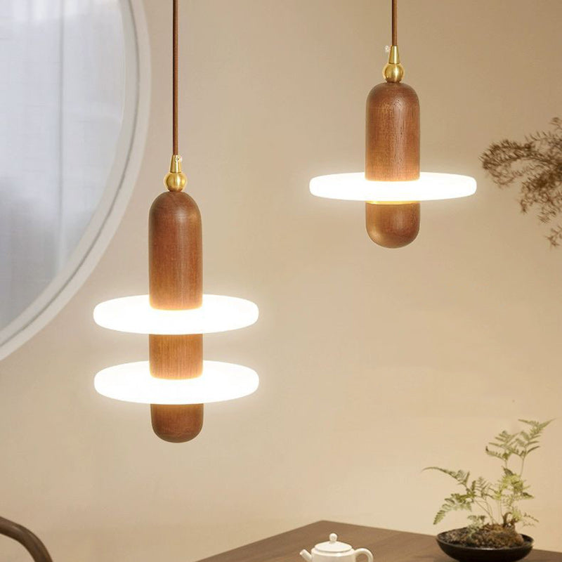 寝室用 伝統的な日本の円筒形円形木製銅アクリルLEDペンダントライト