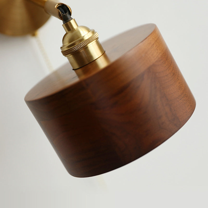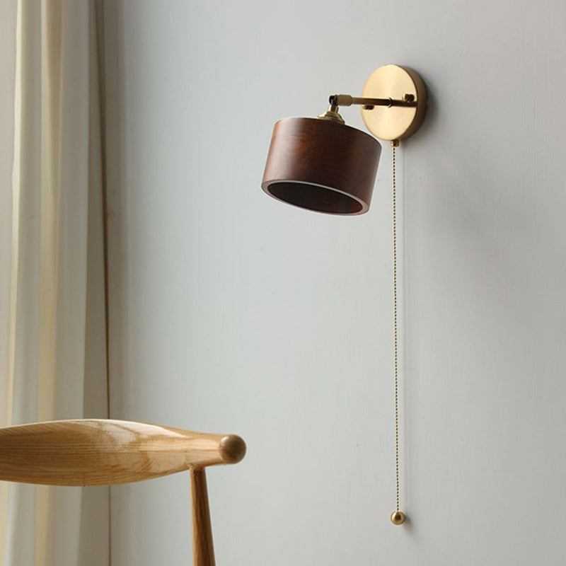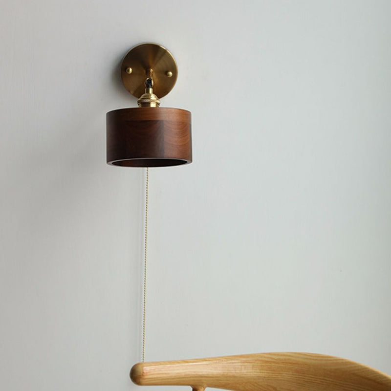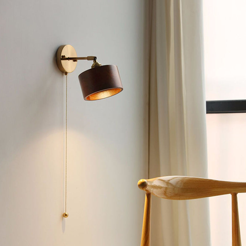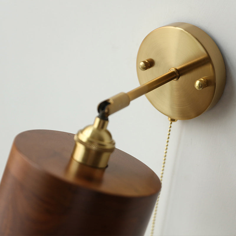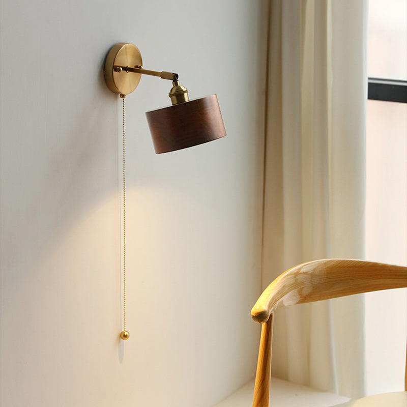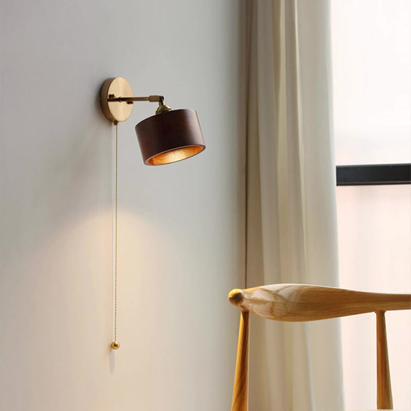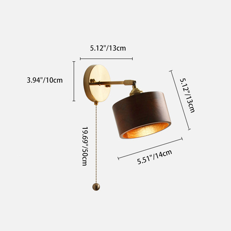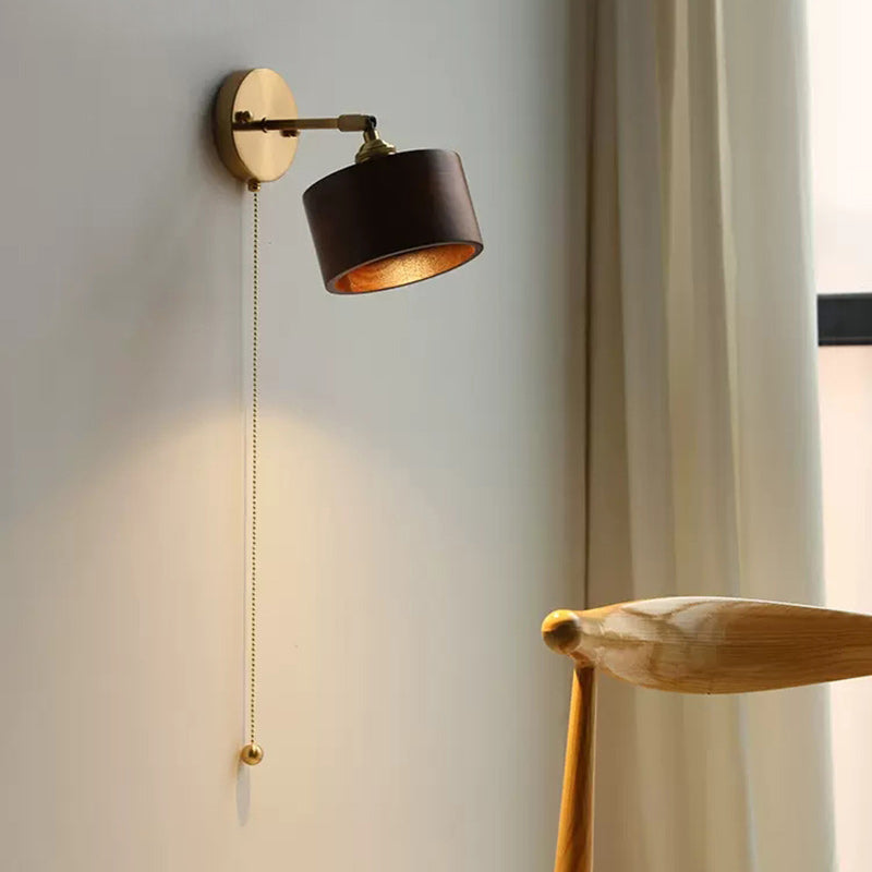 伝統的な日本の円筒形銅木製1灯壁取り付け用燭台ランプリビングルーム用