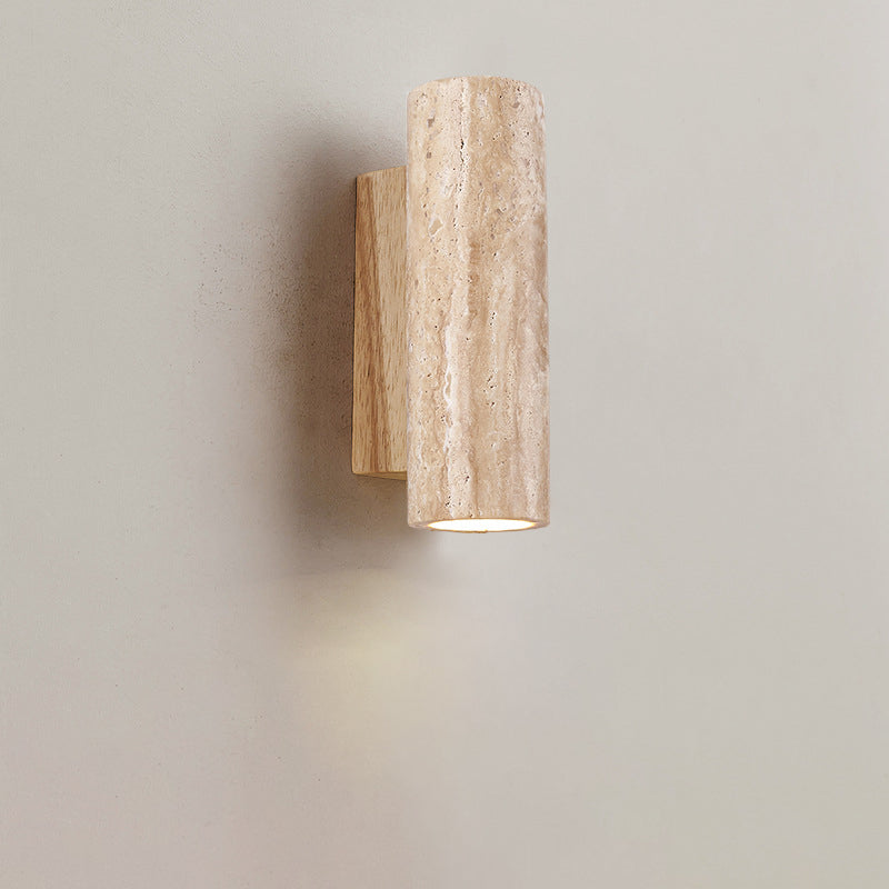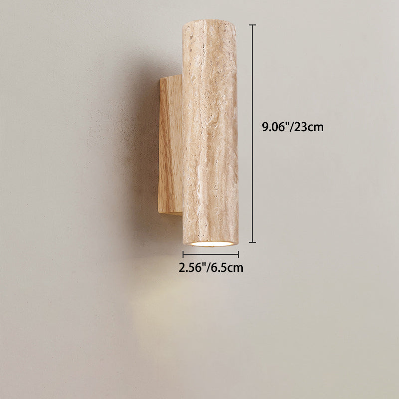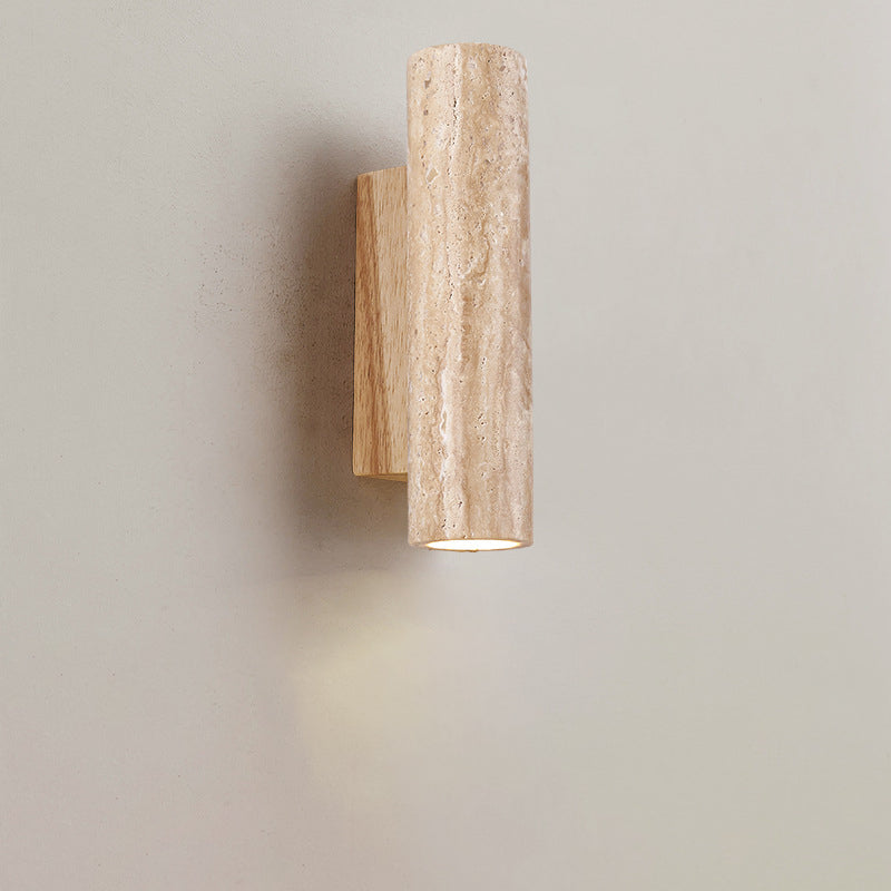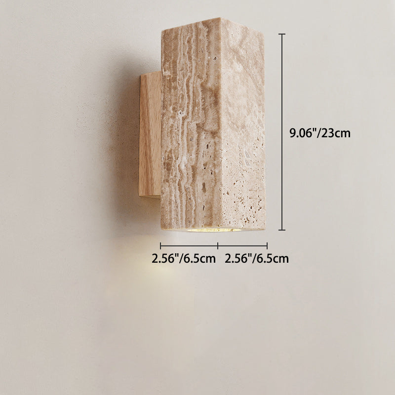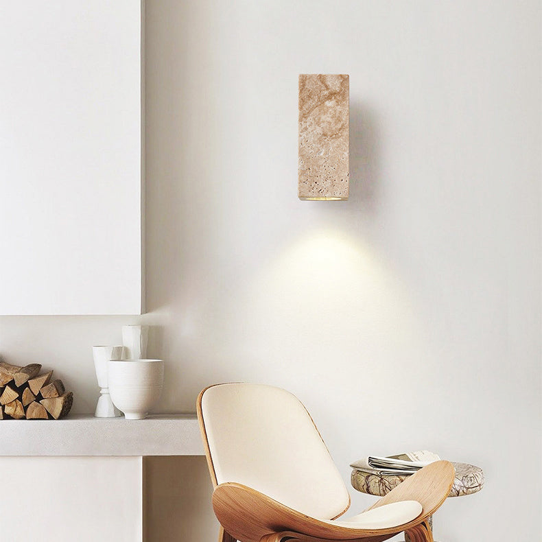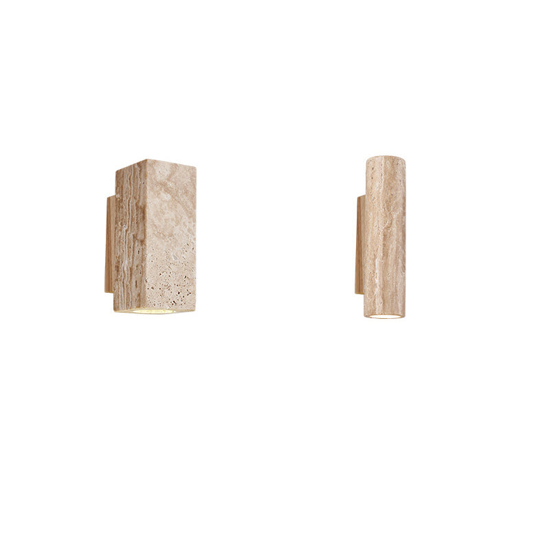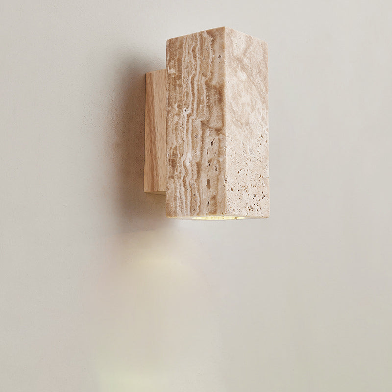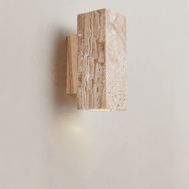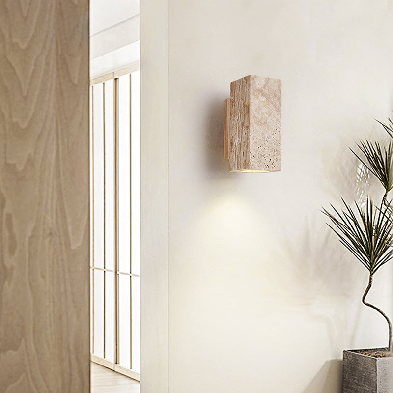 伝統的な日本のドロマイト材の立方体シリンダー1灯壁取り付け用燭台ランプ(ベッドサイド用)