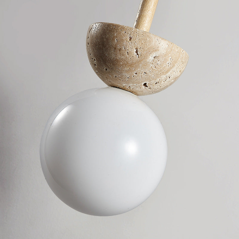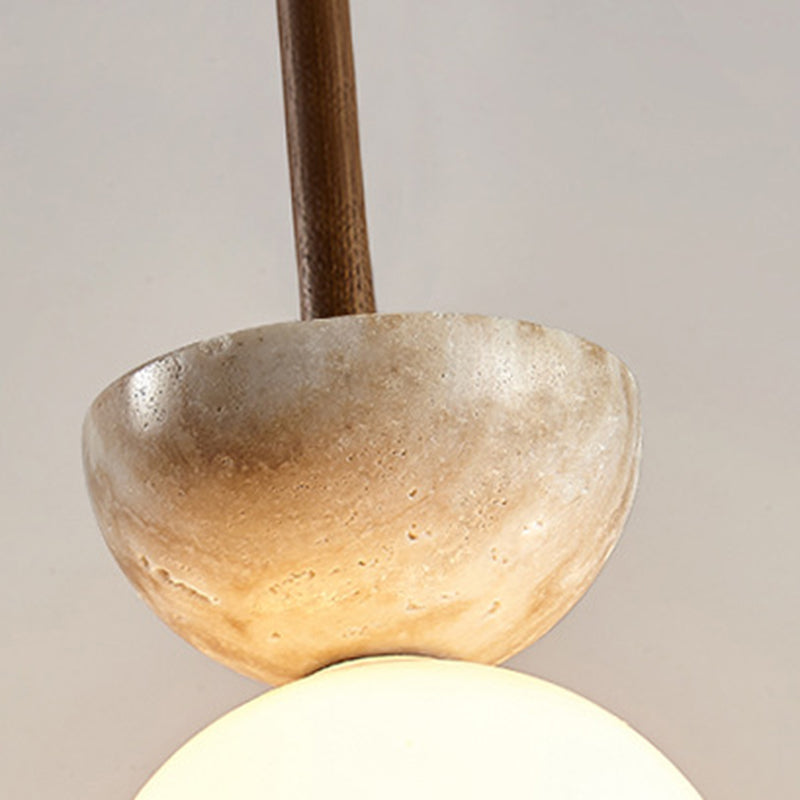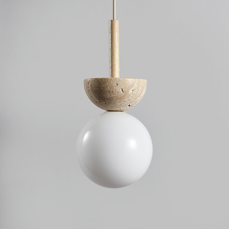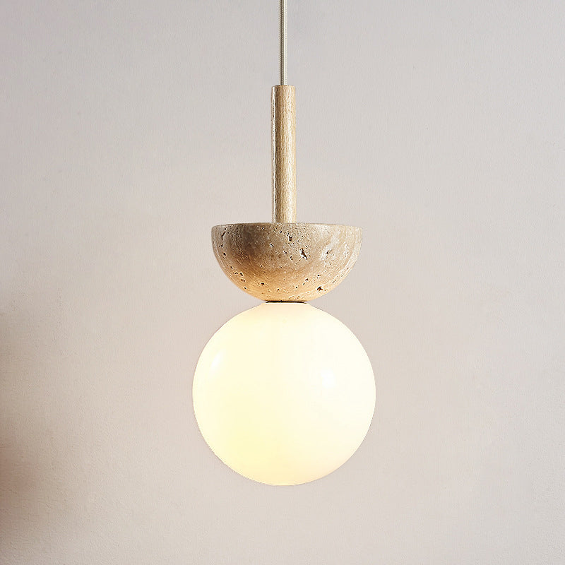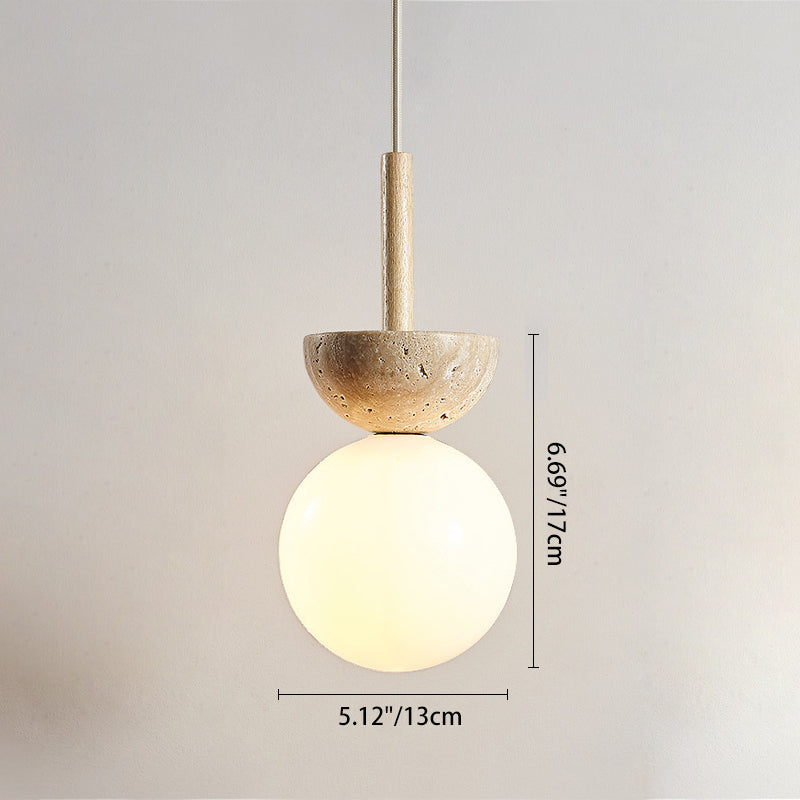 伝統的な日本のドームオーブガラスイエロートラバーチンランプシェード1灯 - リビングルーム用ペンダントライト