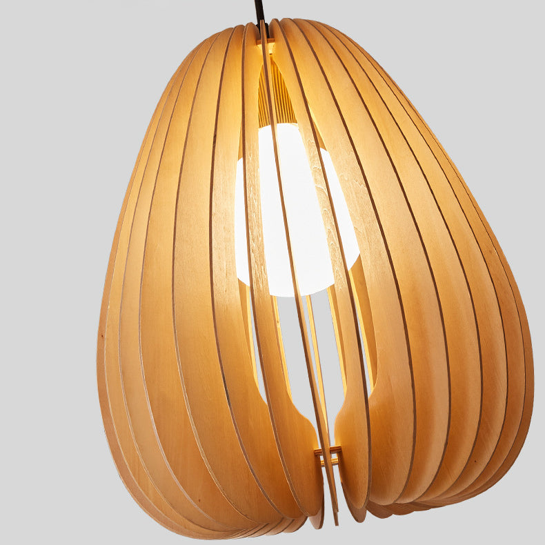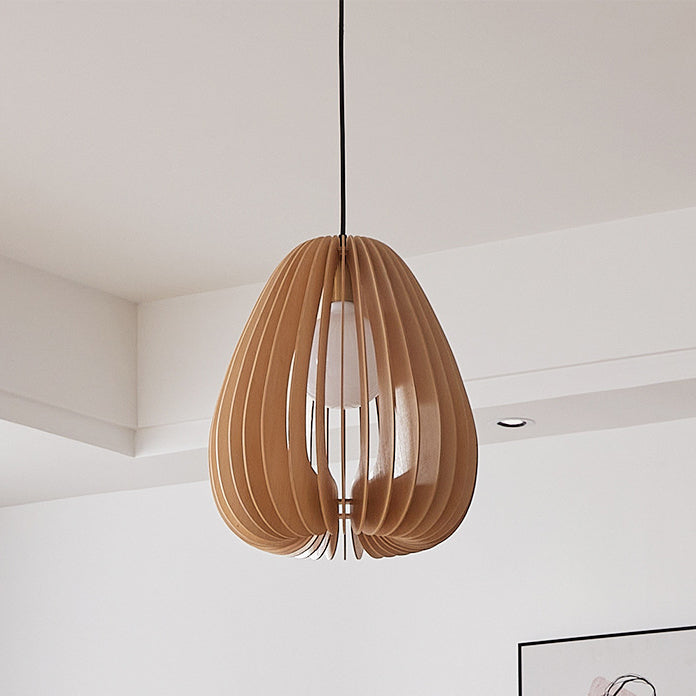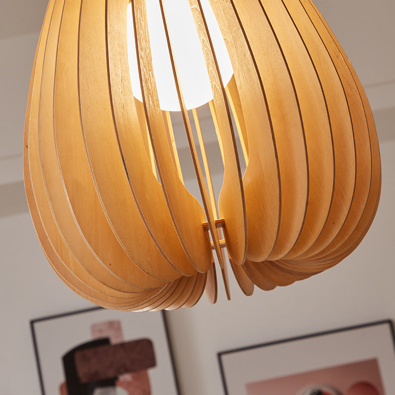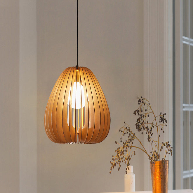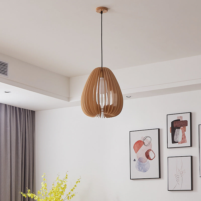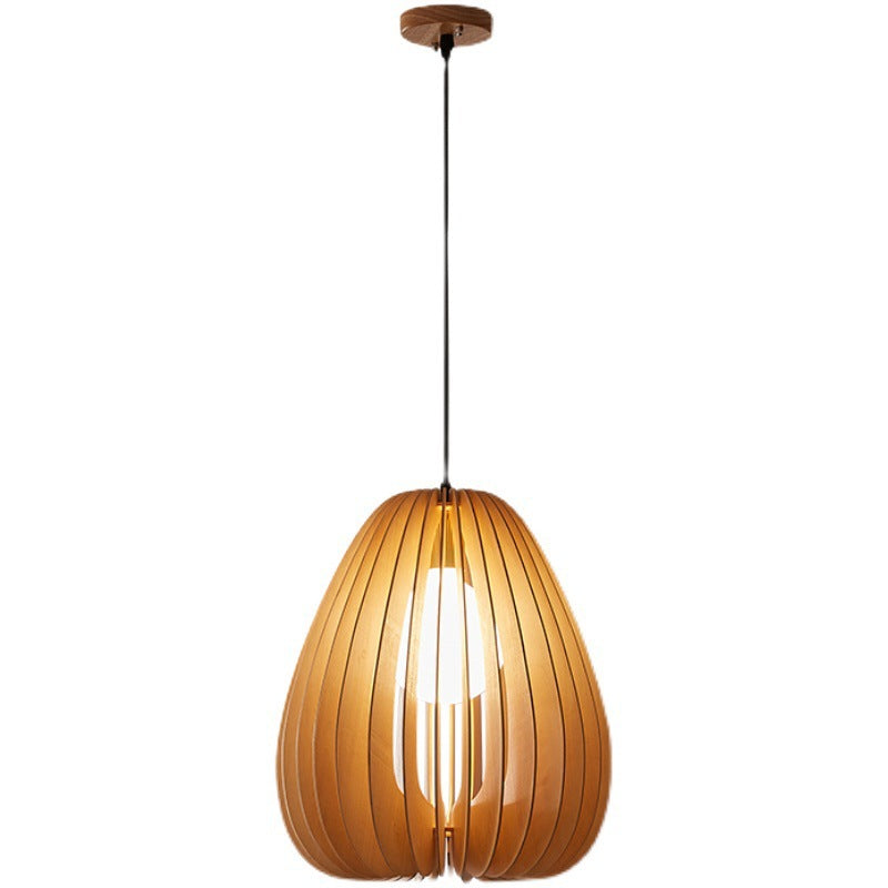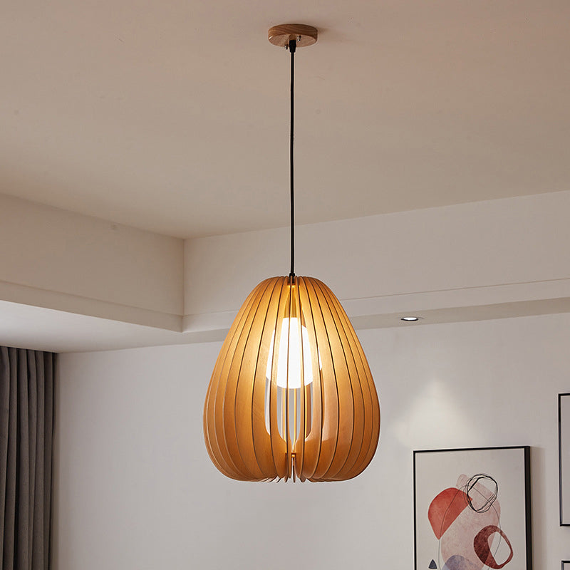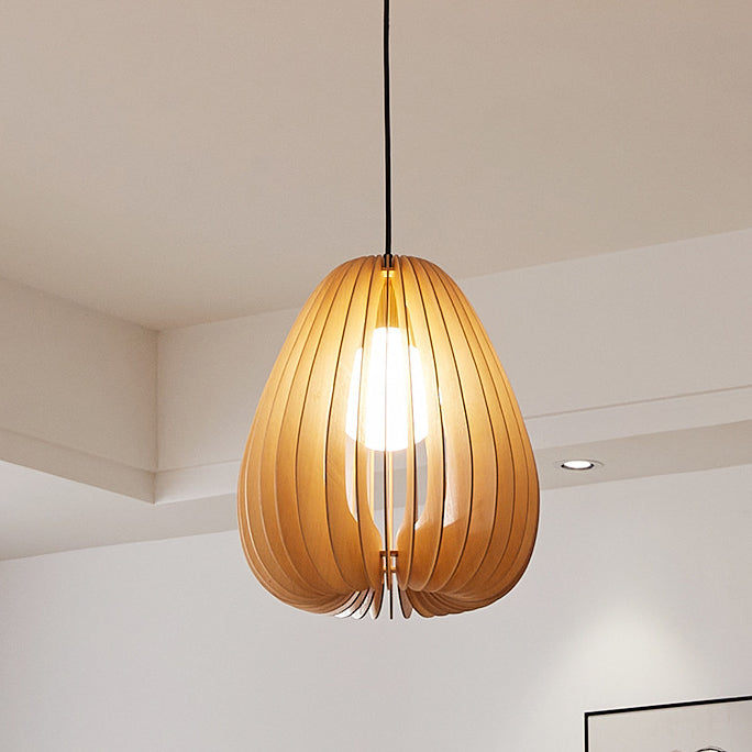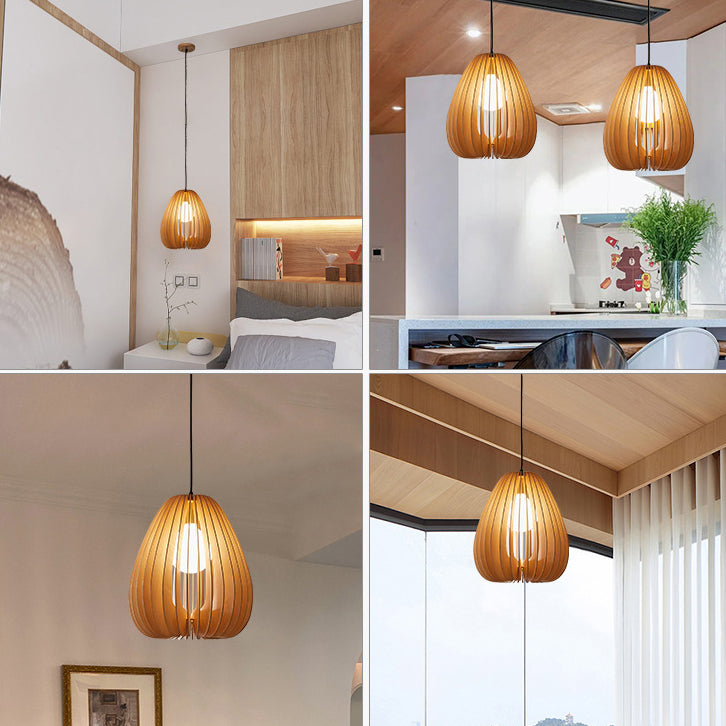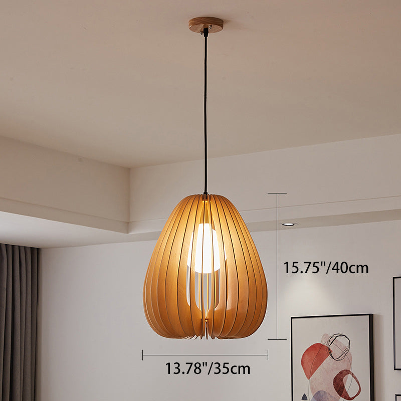 伝統的な日本のドーム型パンプキンバスウッド無垢材1灯ペンダントライトダイニングルーム用