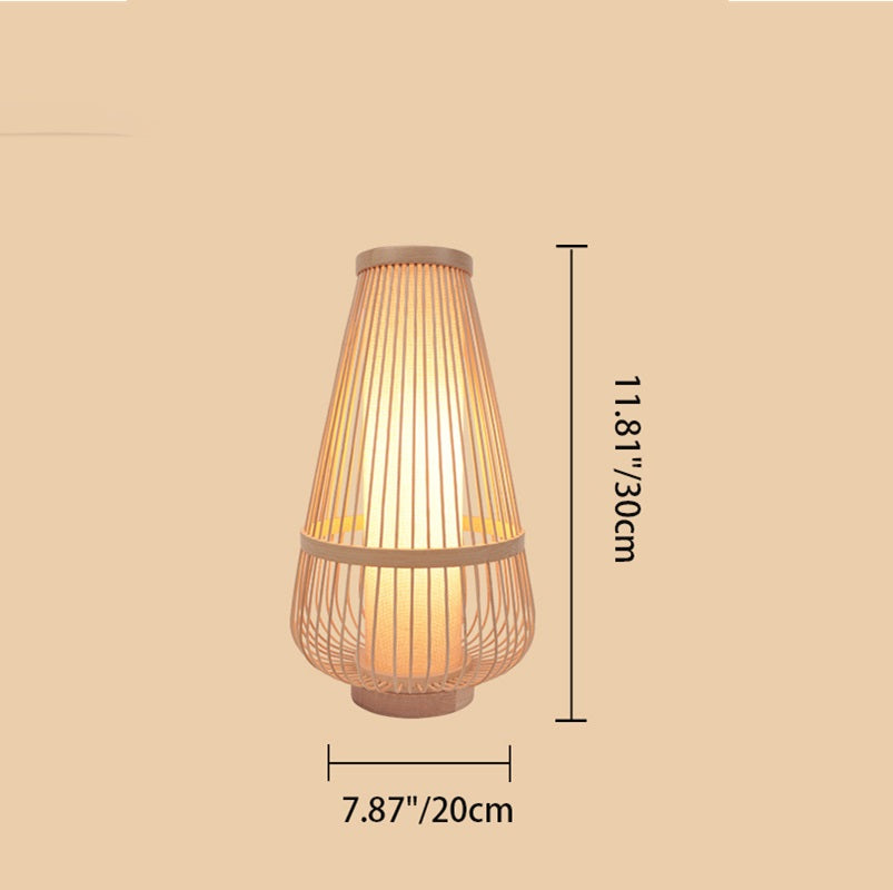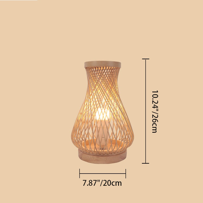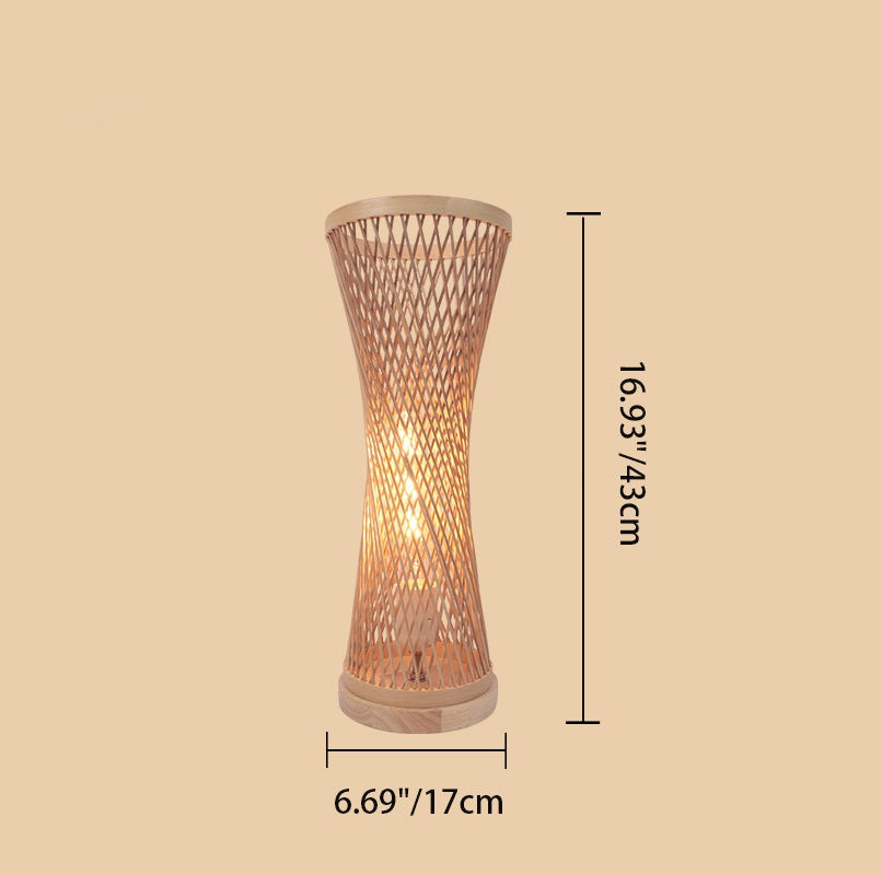 Traditional Japanese Small Waist Hollowed Round Bamboo 1-Light Table Lamp For Bedroom