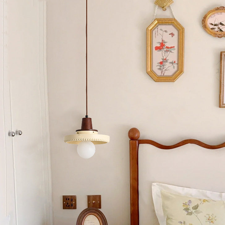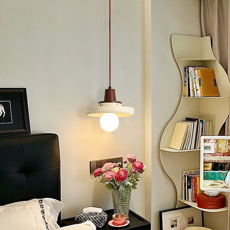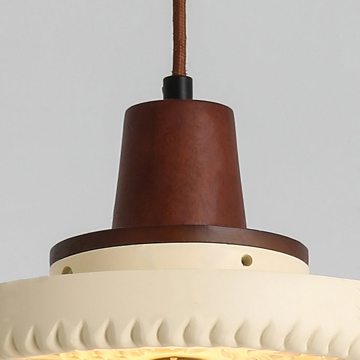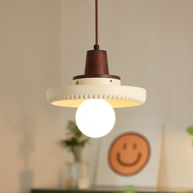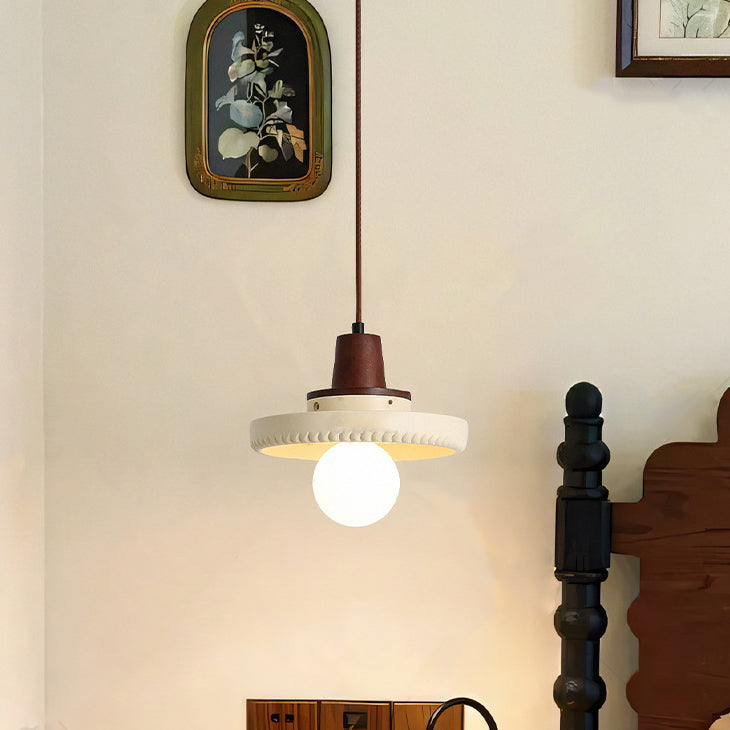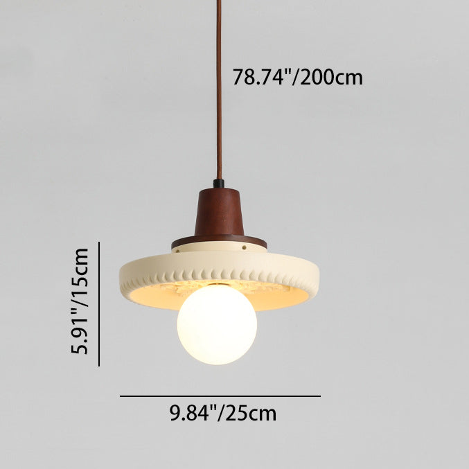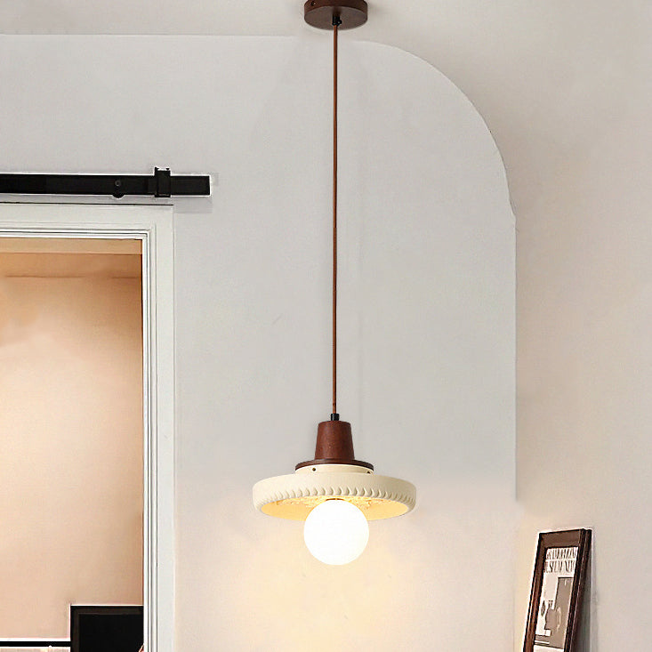 伝統的な日本の無垢材樹脂ディスク1灯ペンダントライトリビングルーム用