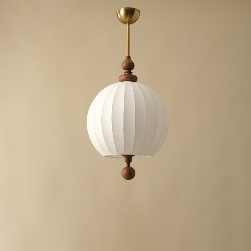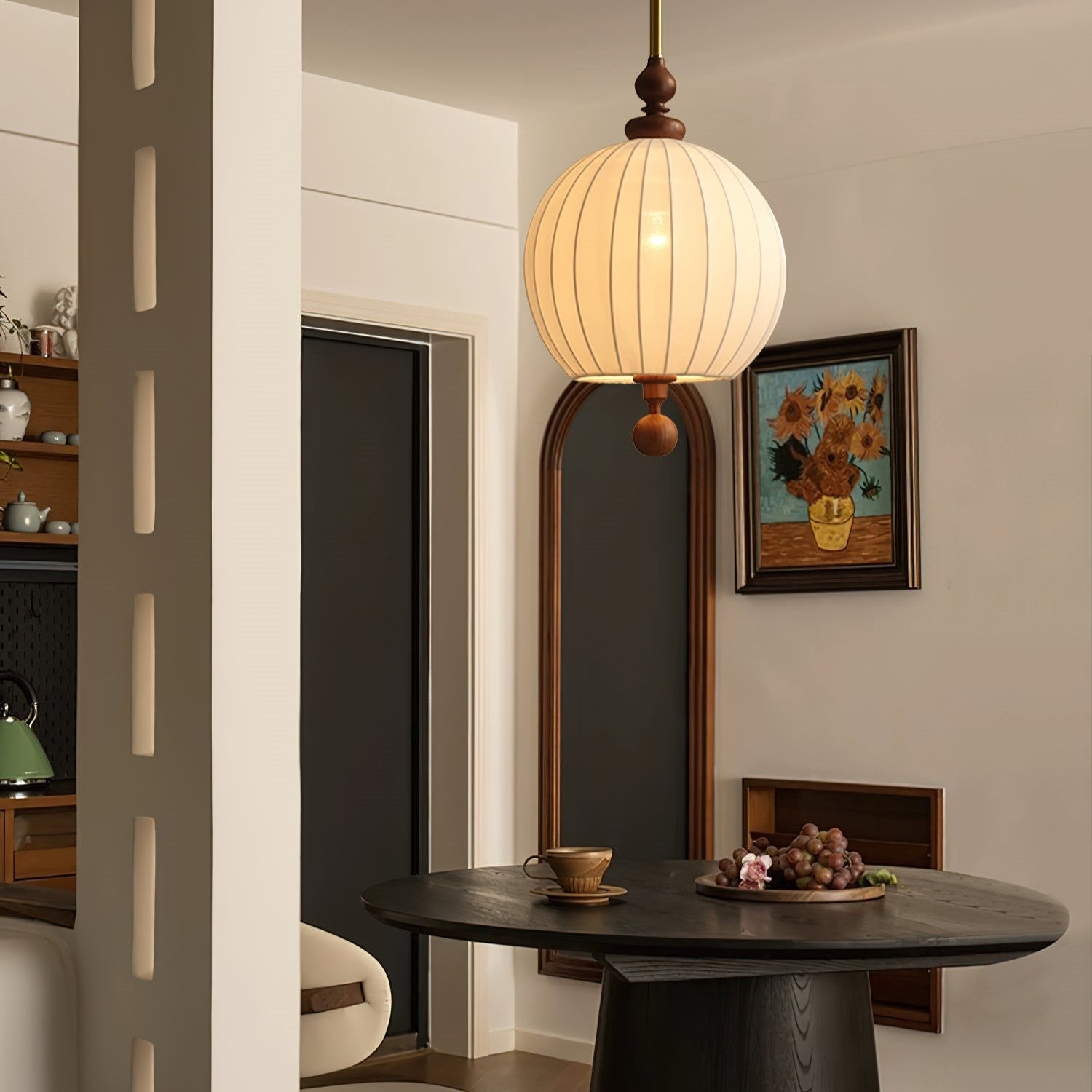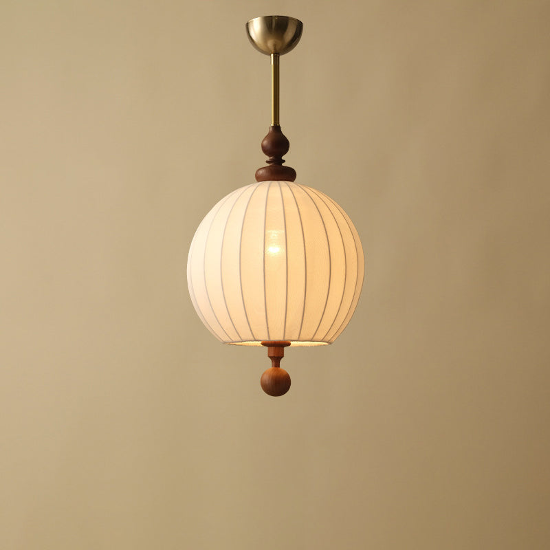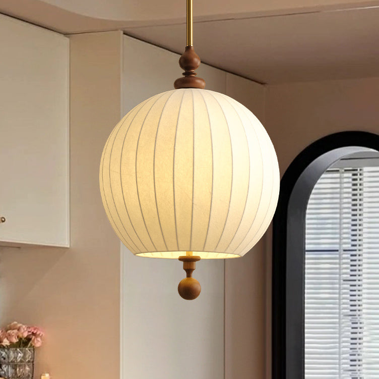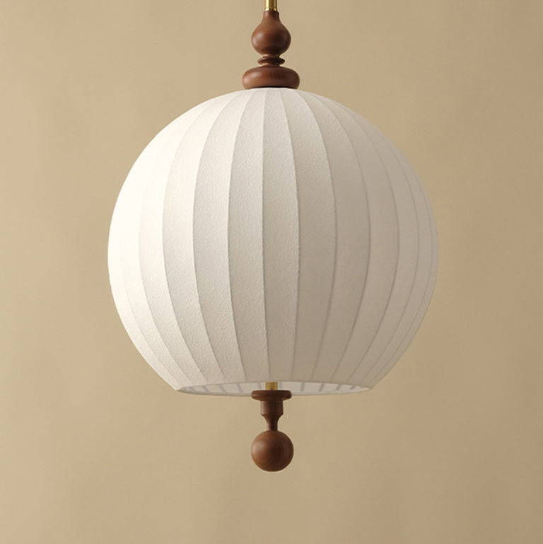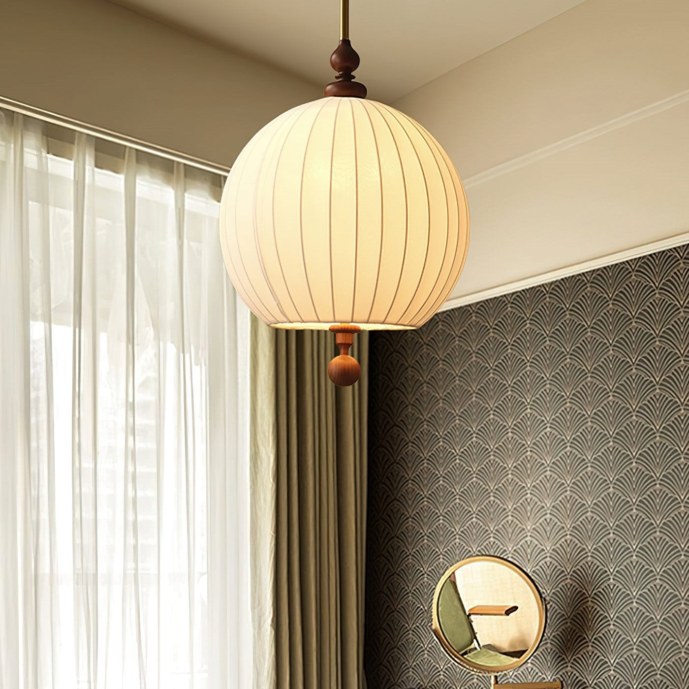 日本の伝統的な球状ファブリックシェード、アッシュウッド、リビングルーム用1灯ペンダントライト