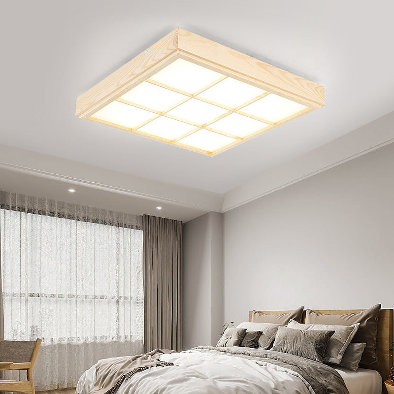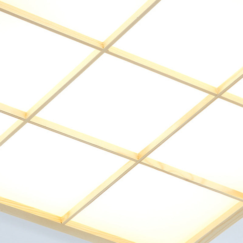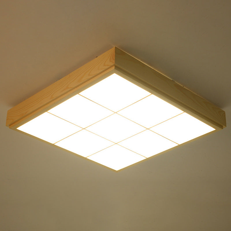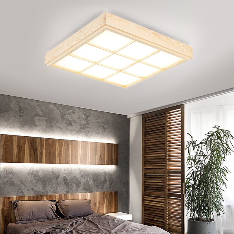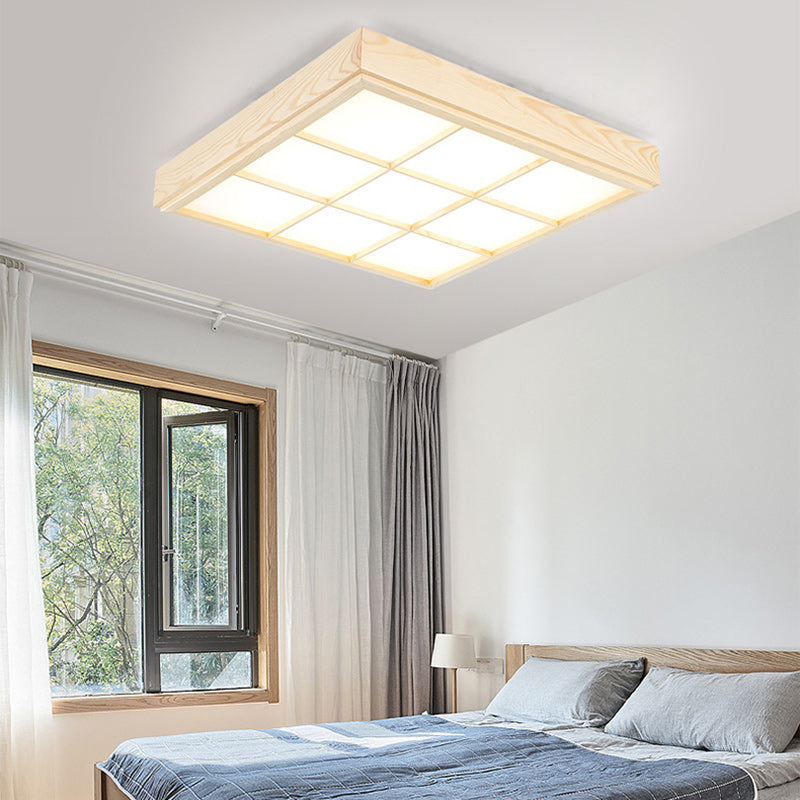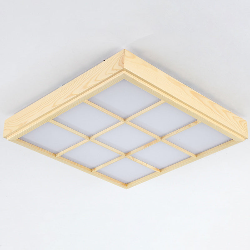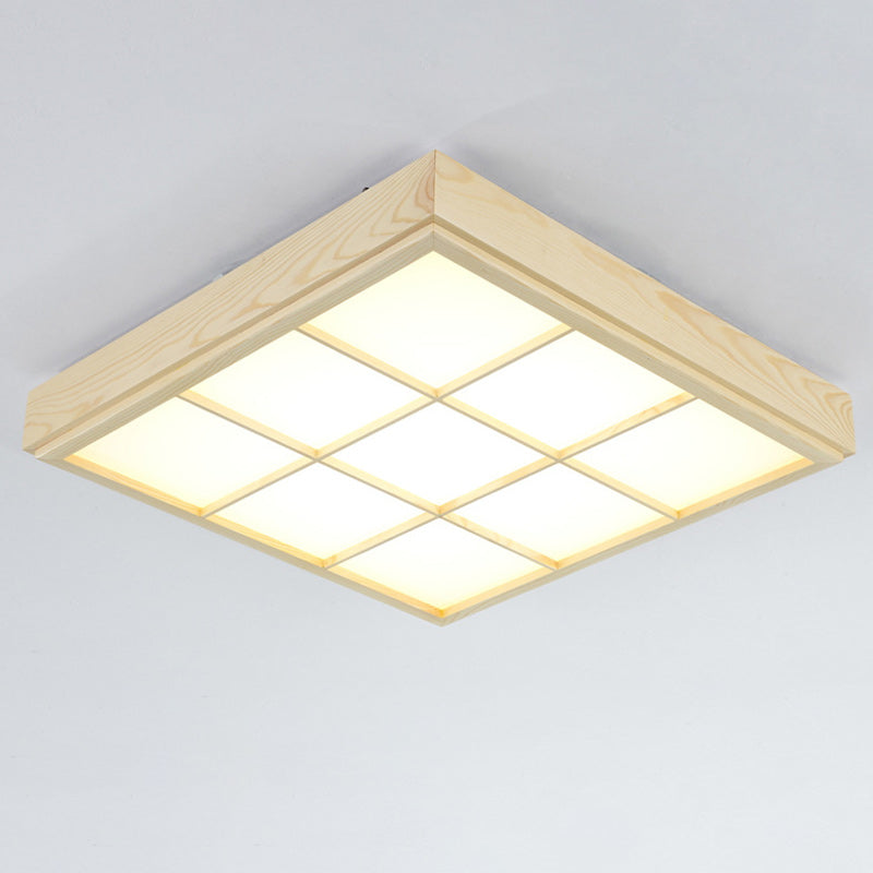 伝統的な日本のスクエアキューブグリッドパインエッジアクリルランプシェードLEDフラッシュマウントシーリングライトリビングルーム用