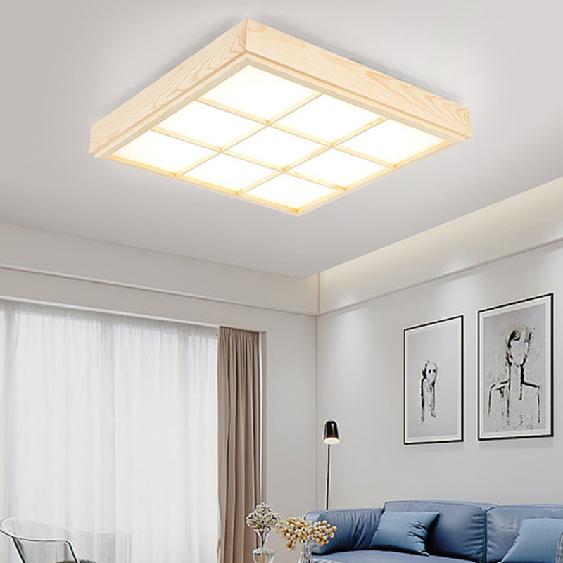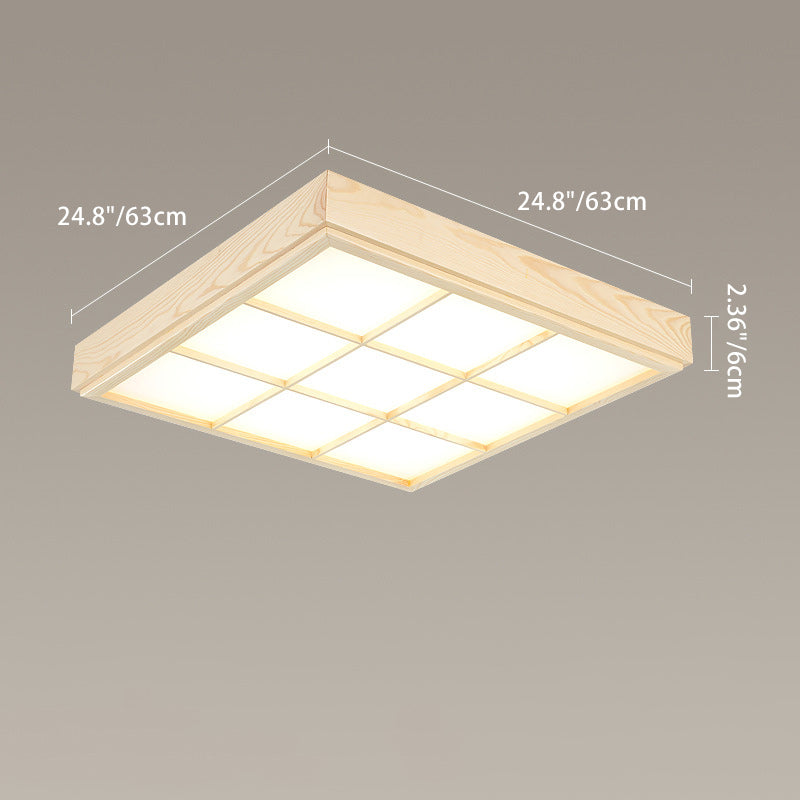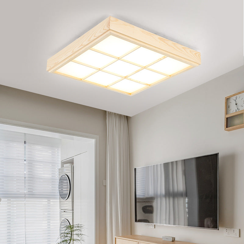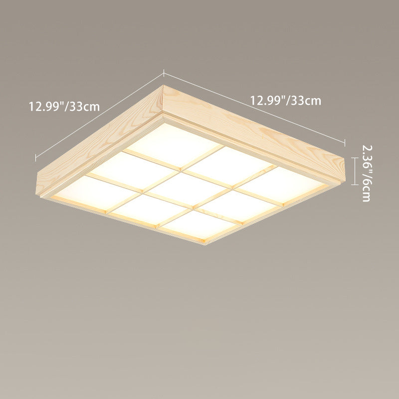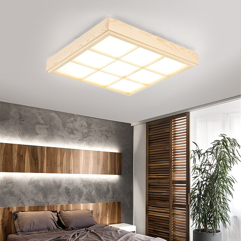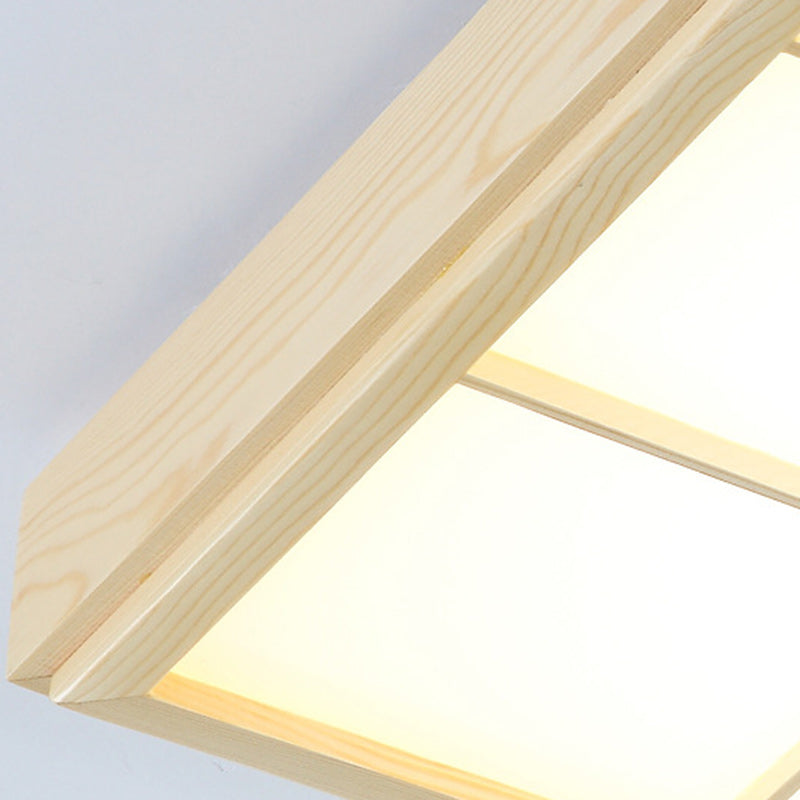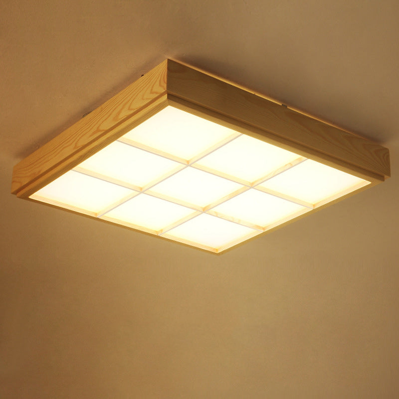 伝統的な日本のスクエアキューブグリッドパインエッジアクリルランプシェードLEDフラッシュマウントシーリングライトリビングルーム用