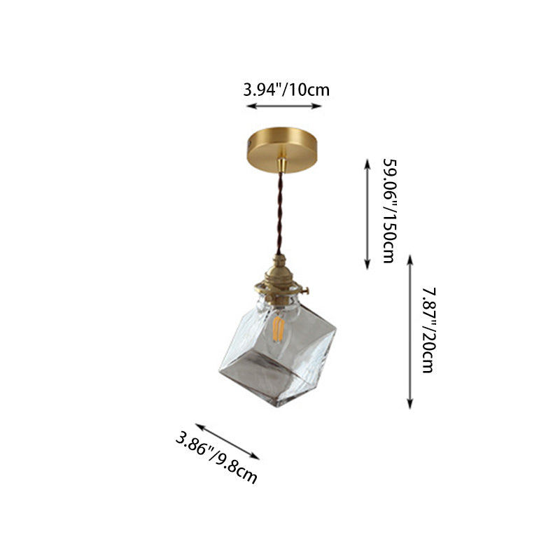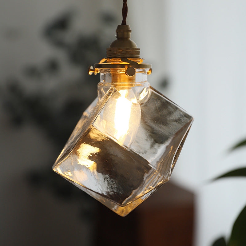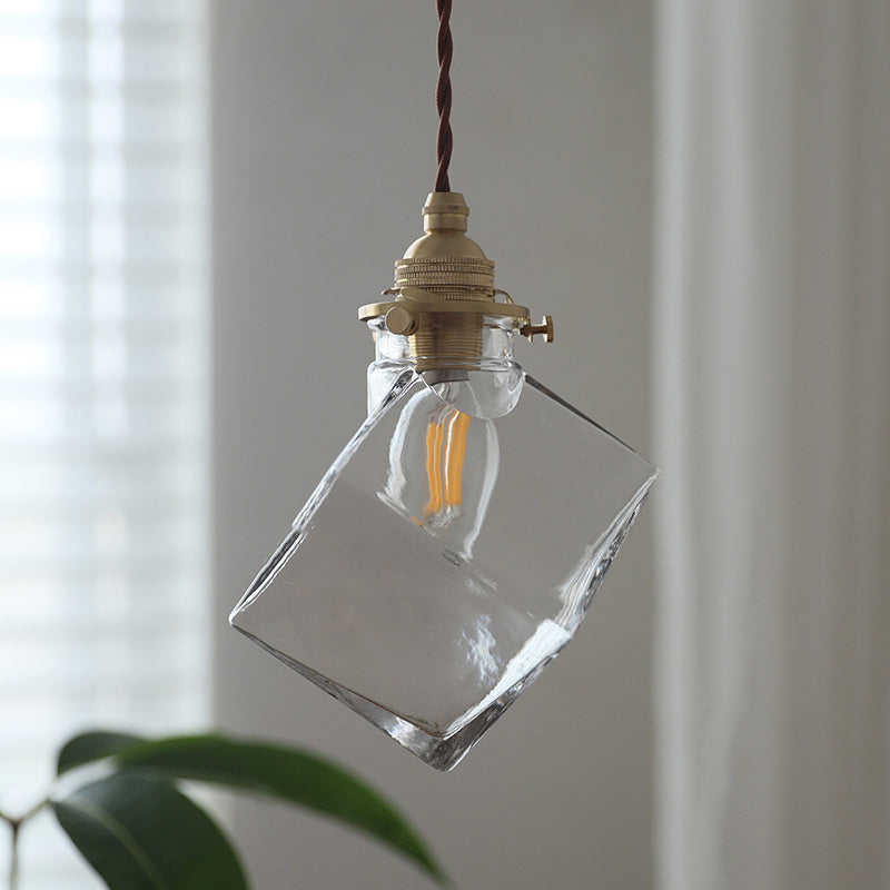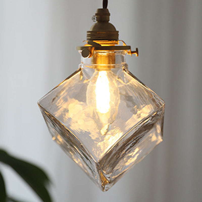 伝統的な日本のスクエアアイスキューブガラスシェード1灯ペンダントライト(リビングルーム用)