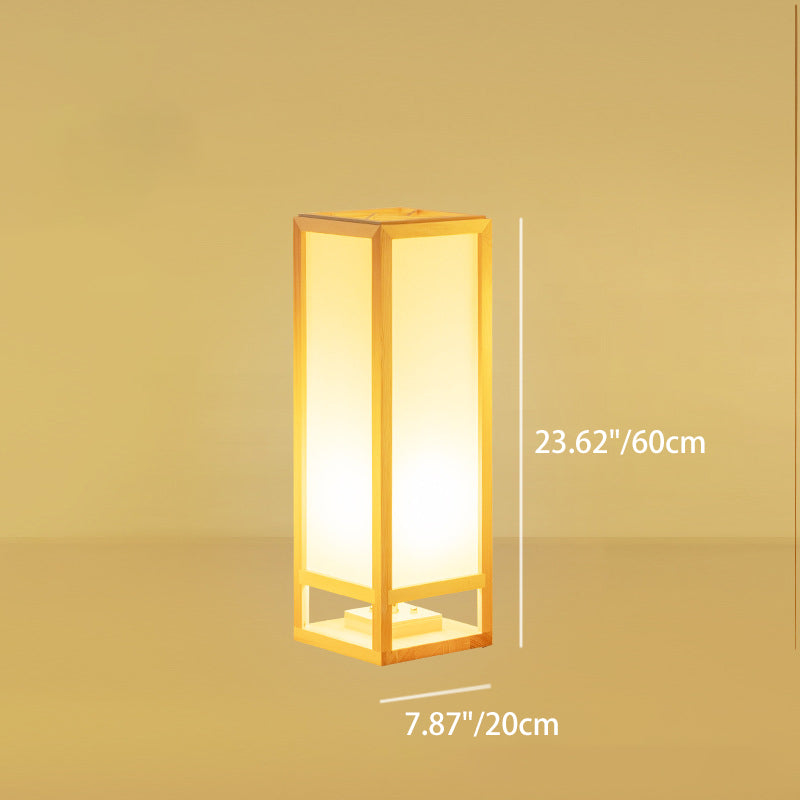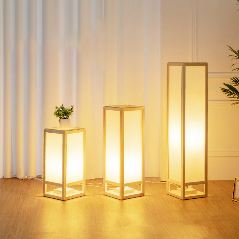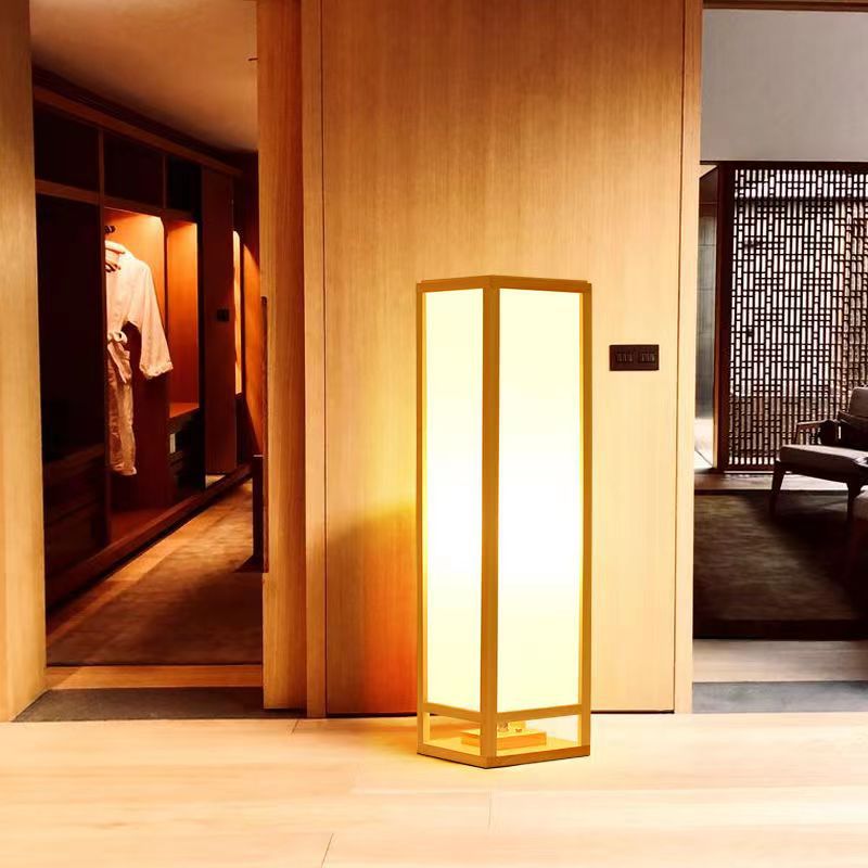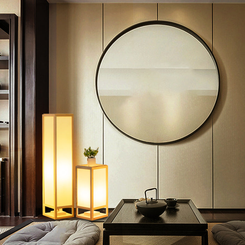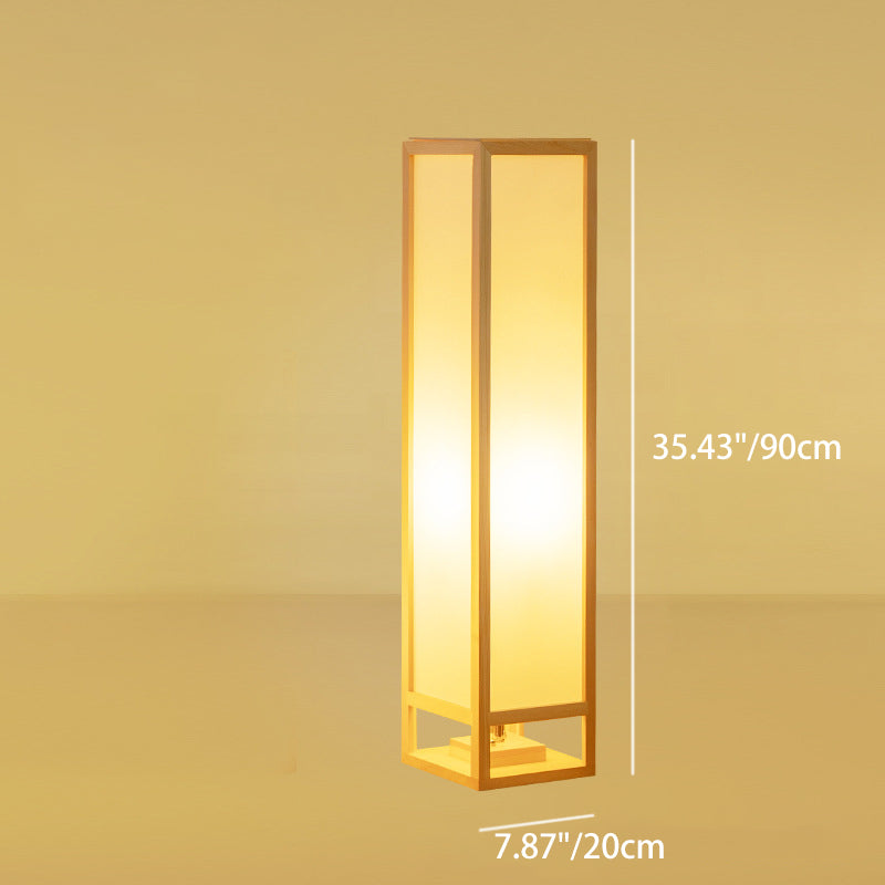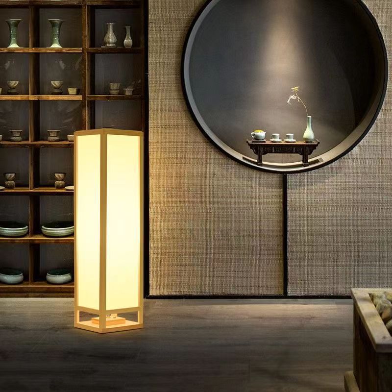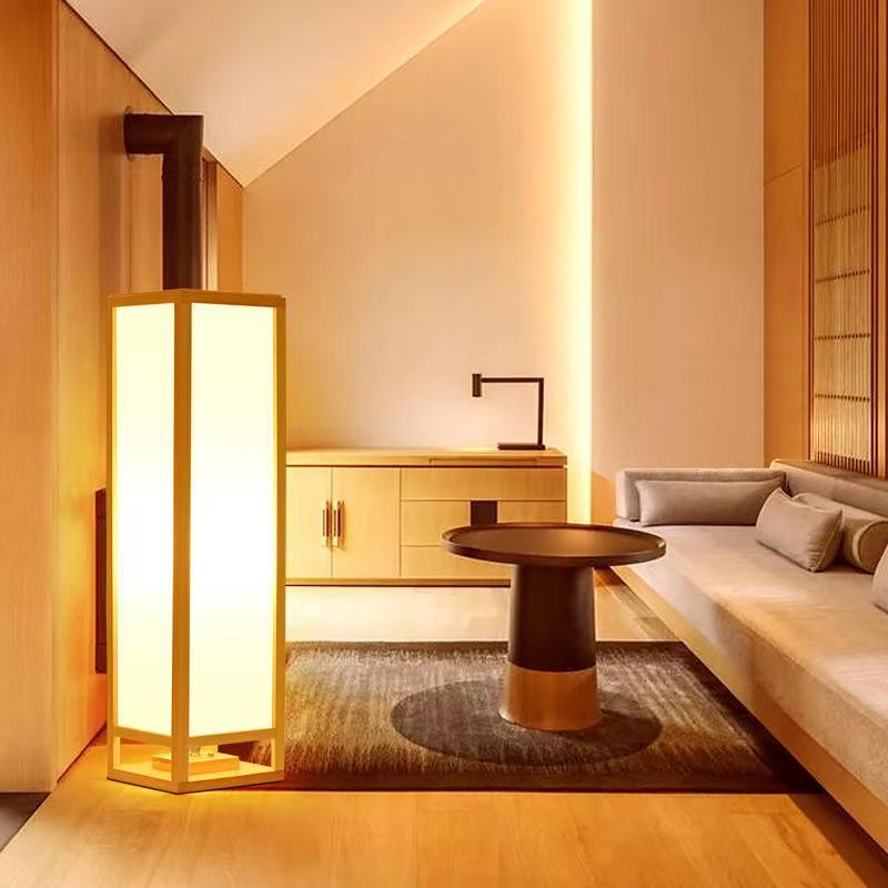 Traditional Japanese Square Rectangle Wood Acrylic 1-Light Standing Floor Lamp For Living Room