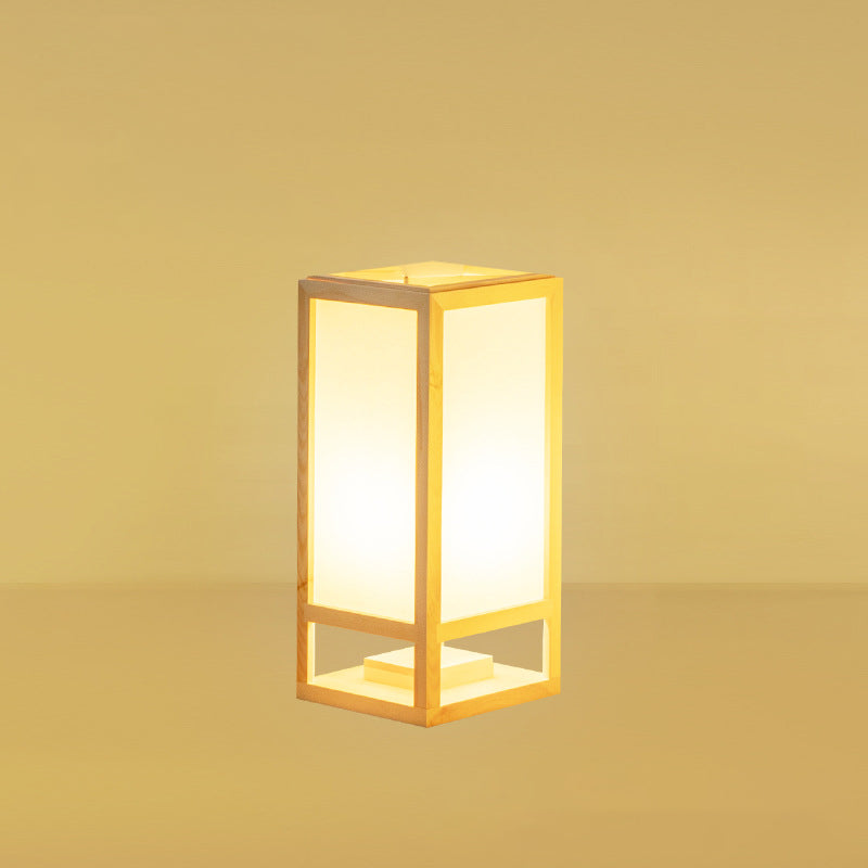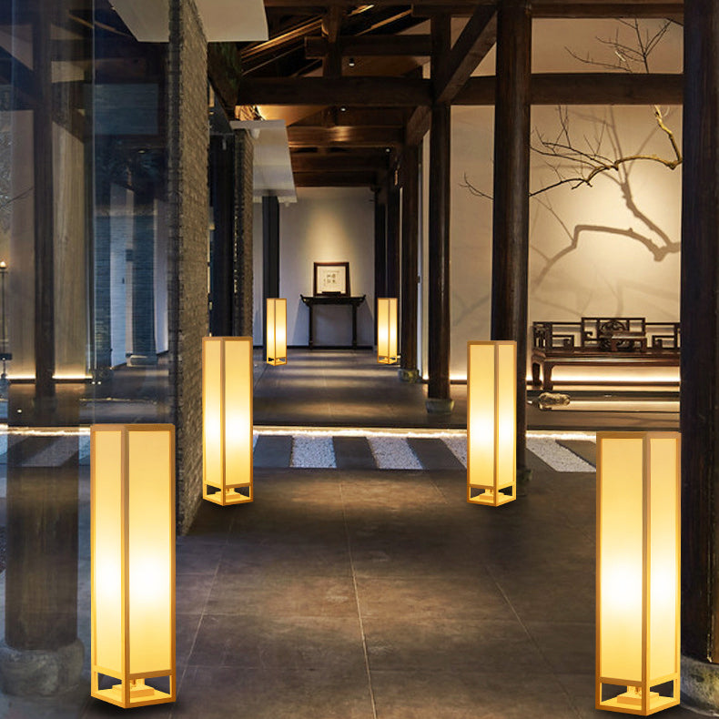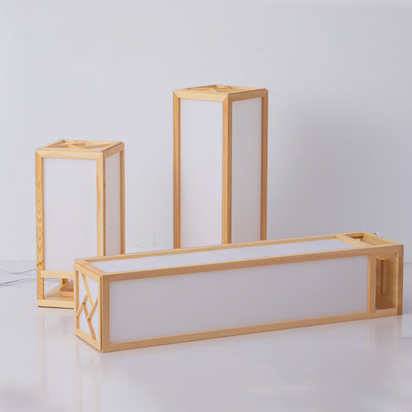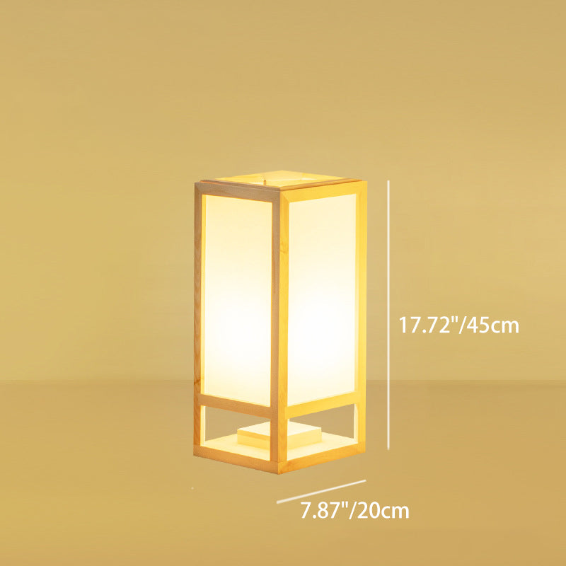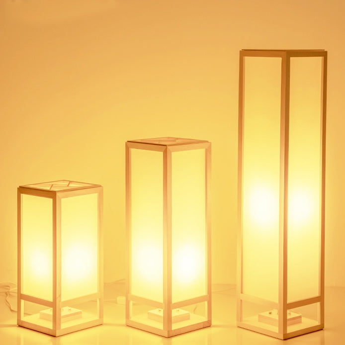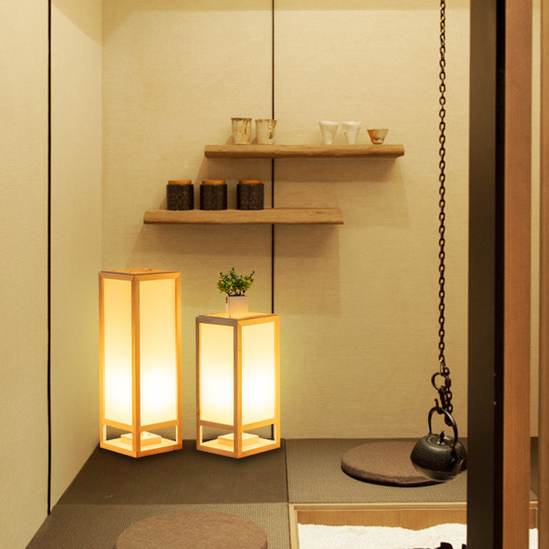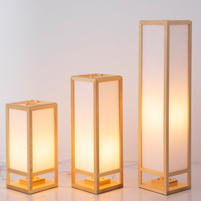Traditional Japanese Square Rectangle Wood Acrylic 1-Light Standing Floor Lamp For Living Room