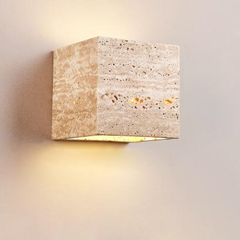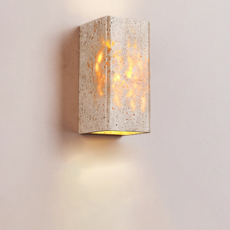 伝統的な日本の正方形長方形の黄色のトラバーチン鉄製LED壁取り付け用燭台ランプ(リビングルーム用)