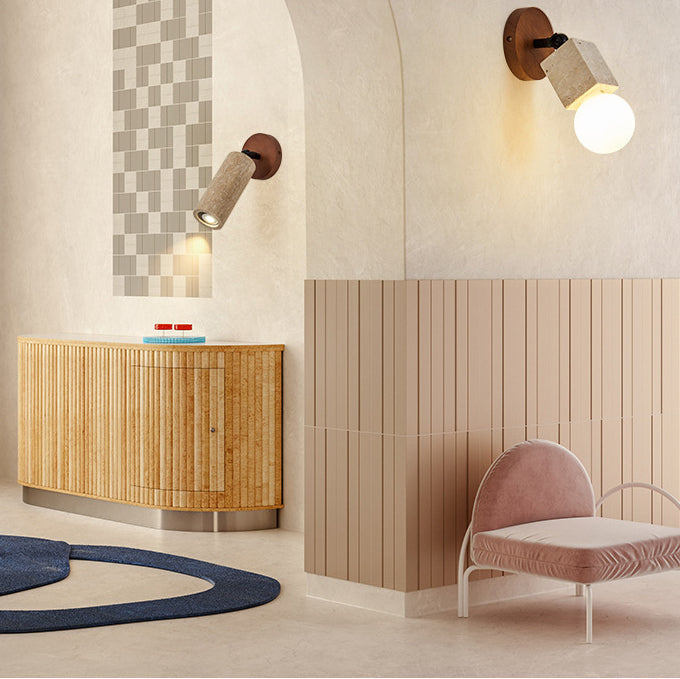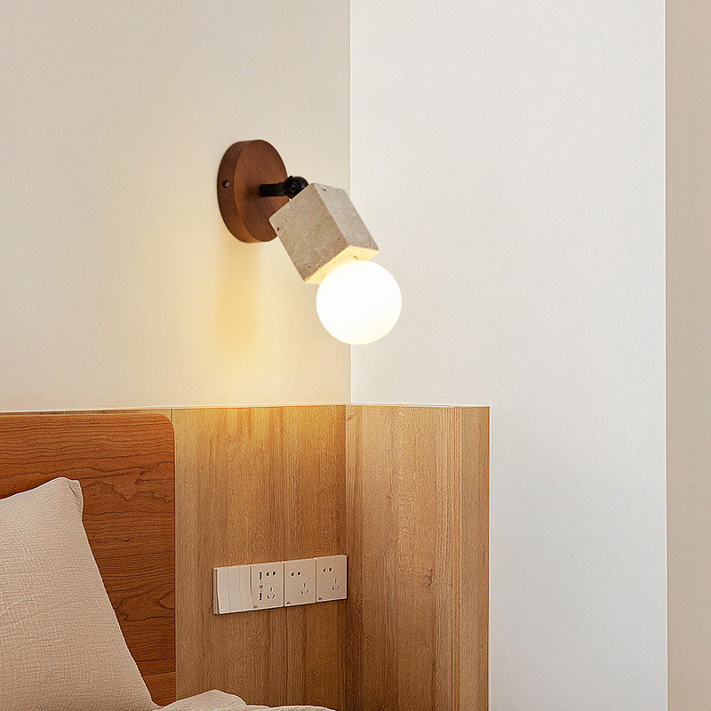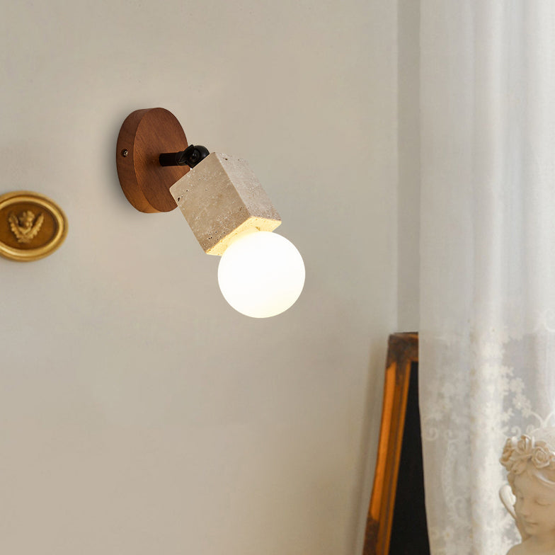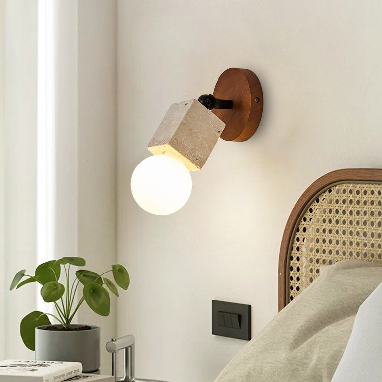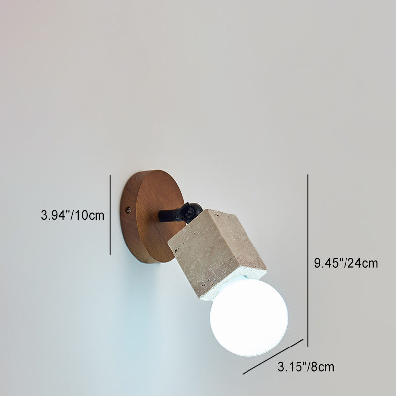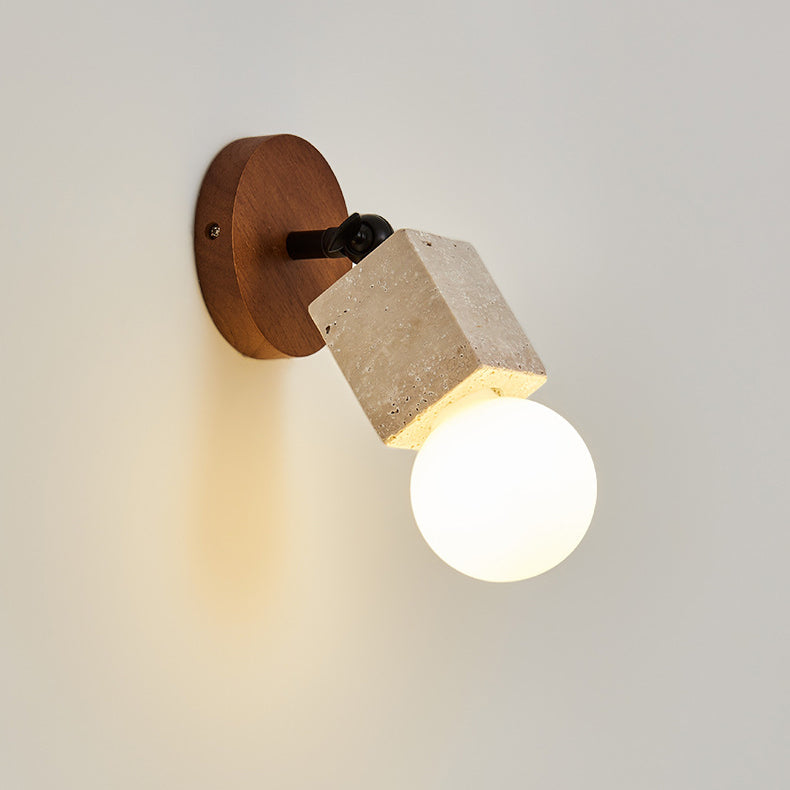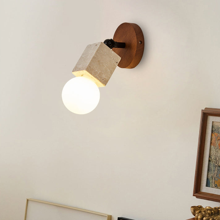 寝室用 伝統的な日本のスクエア型イエロートラバーチン1灯壁取り付け用ランプ