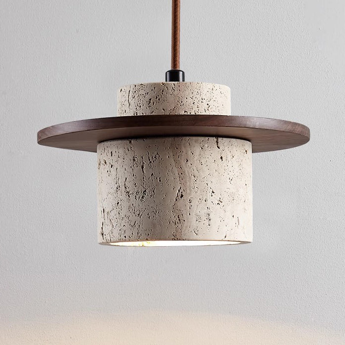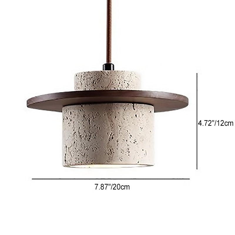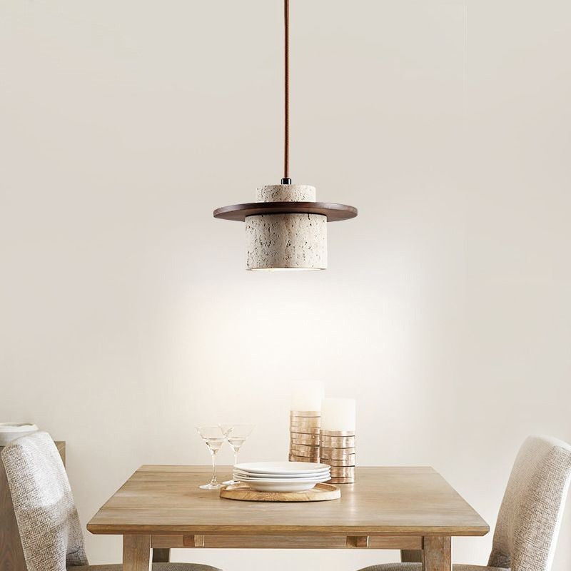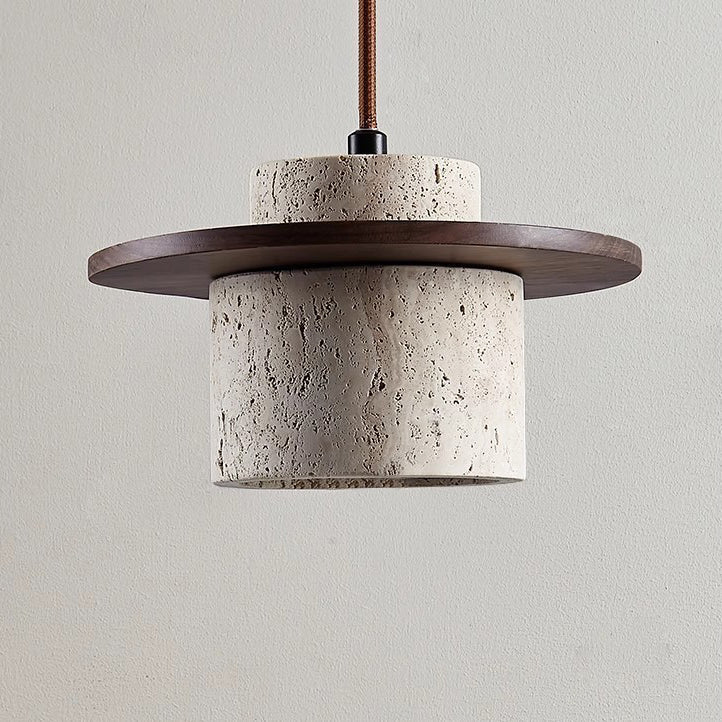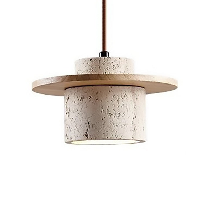 伝統的な日本のトラバーチン無垢材シリンダーフリスビー1灯ペンダントライト(ベッドサイド用)