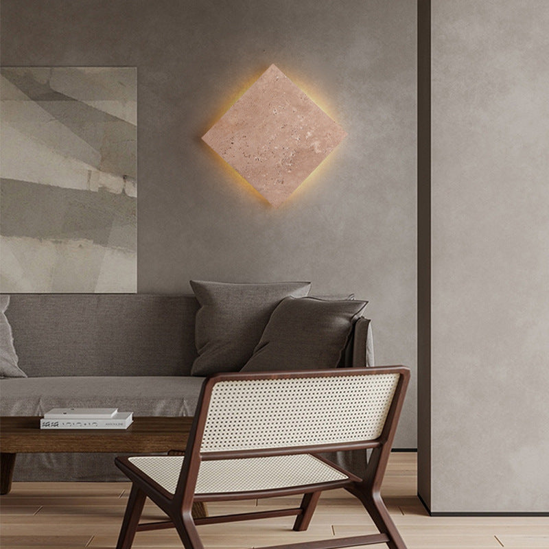伝統的な日本の侘び寂びスクエアイエロートラバーチンLED壁取り付け用燭台ランプリビングルーム用