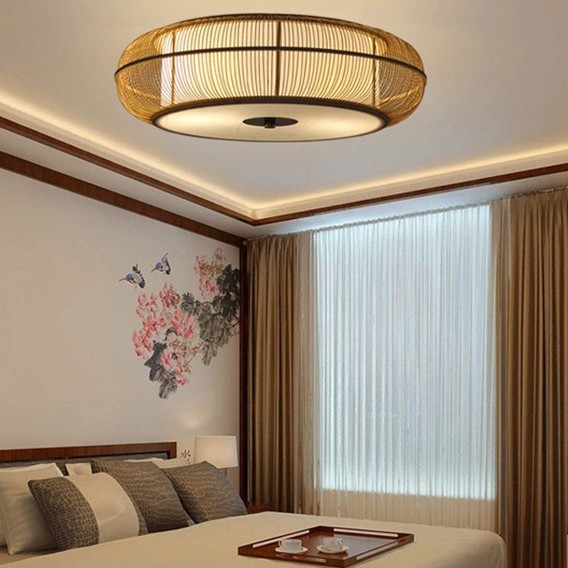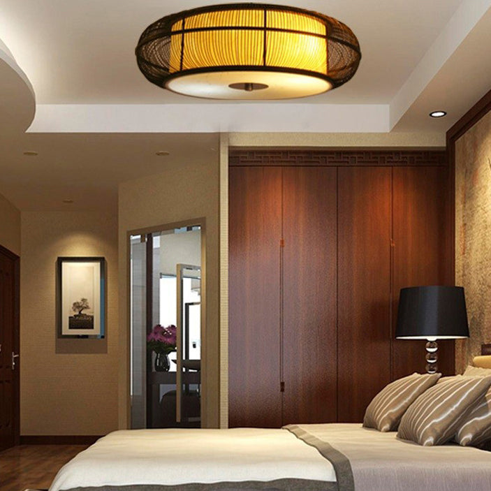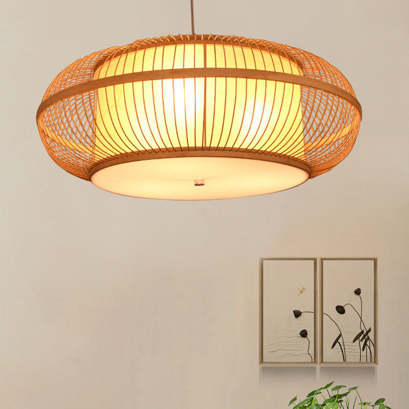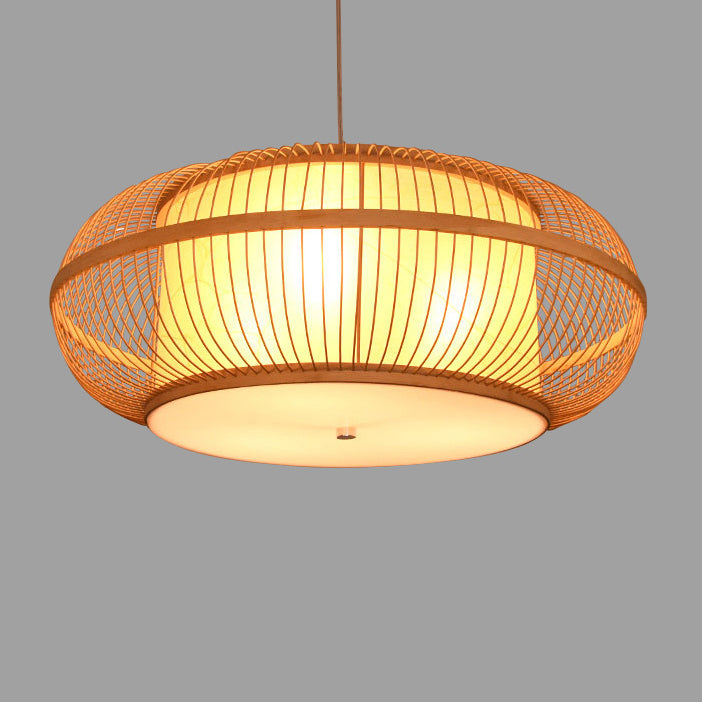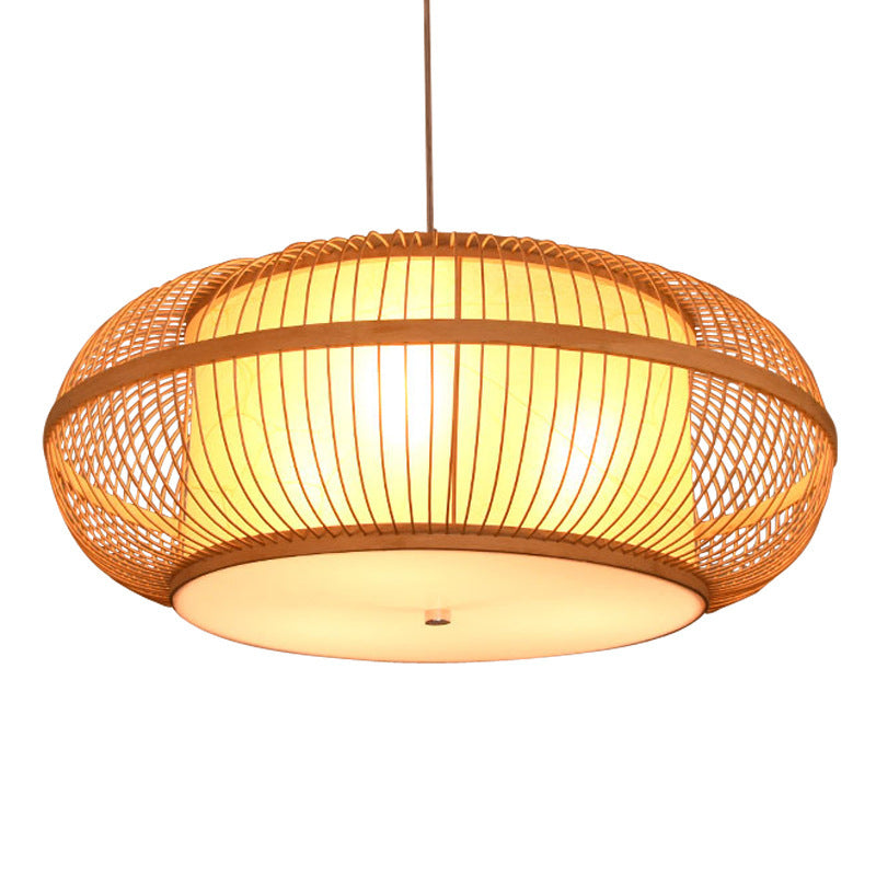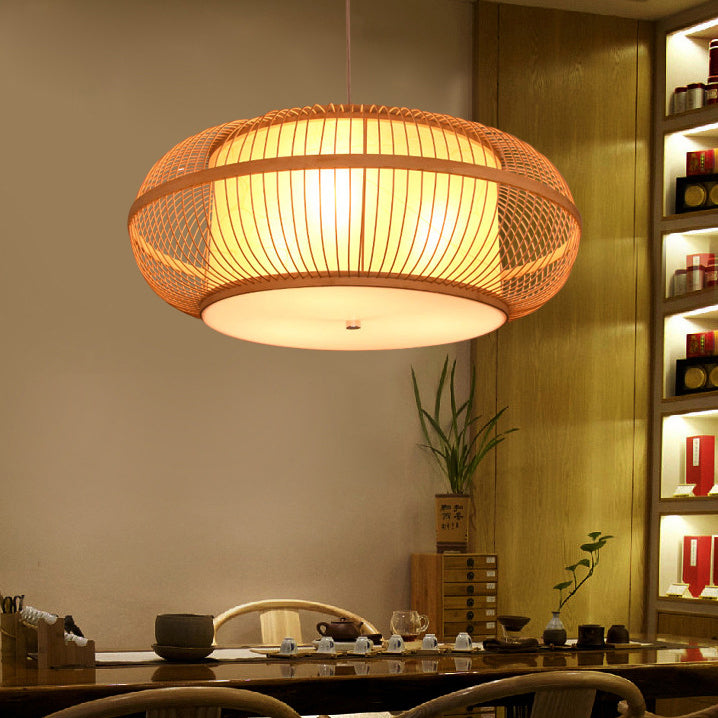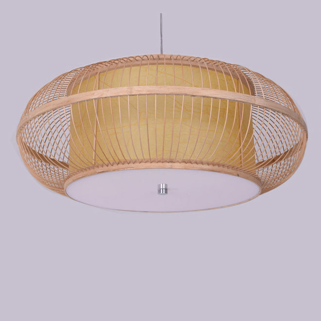 日本の伝統的な編み方による手作りの竹製ラウンドシリンダー3/4ライトシャンデリア(ダイニングルーム用)
