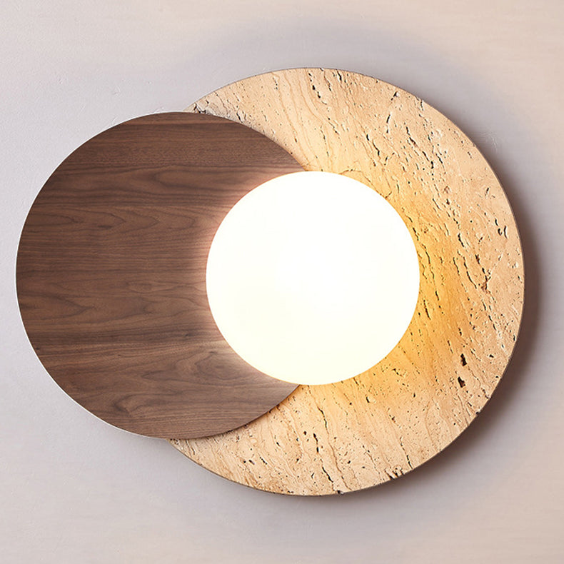 寝室用 伝統的な日本の白いトラバーチン製ディスク1灯壁取り付け用ランプ