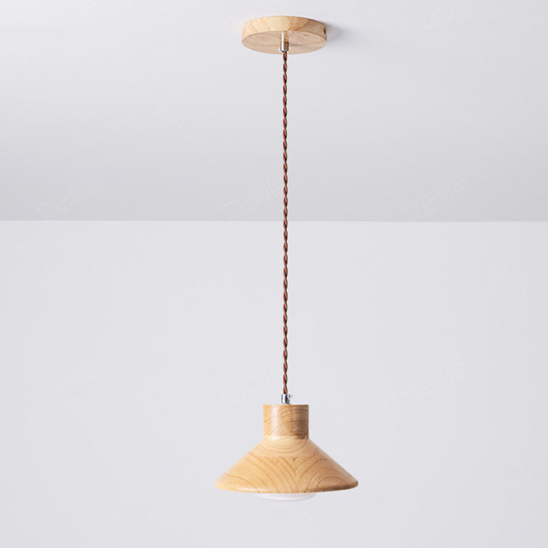 寝室やリビングルームに最適な、伝統的な日本の木製円錐形1灯ペンダントライト