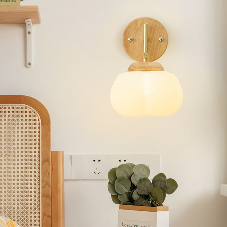 寝室用 伝統的な日本製木製コットンPEシェード 1灯壁付け照明