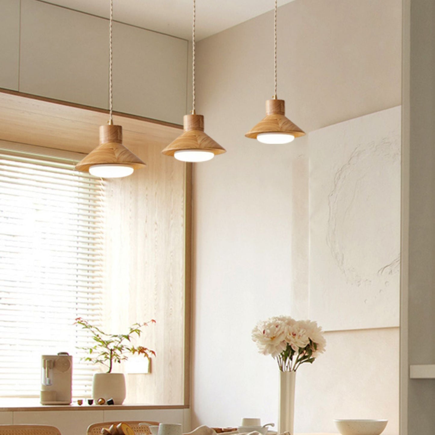 伝統的な日本の木目模様のテーパード1灯ペンダントライト(リビングルーム用)