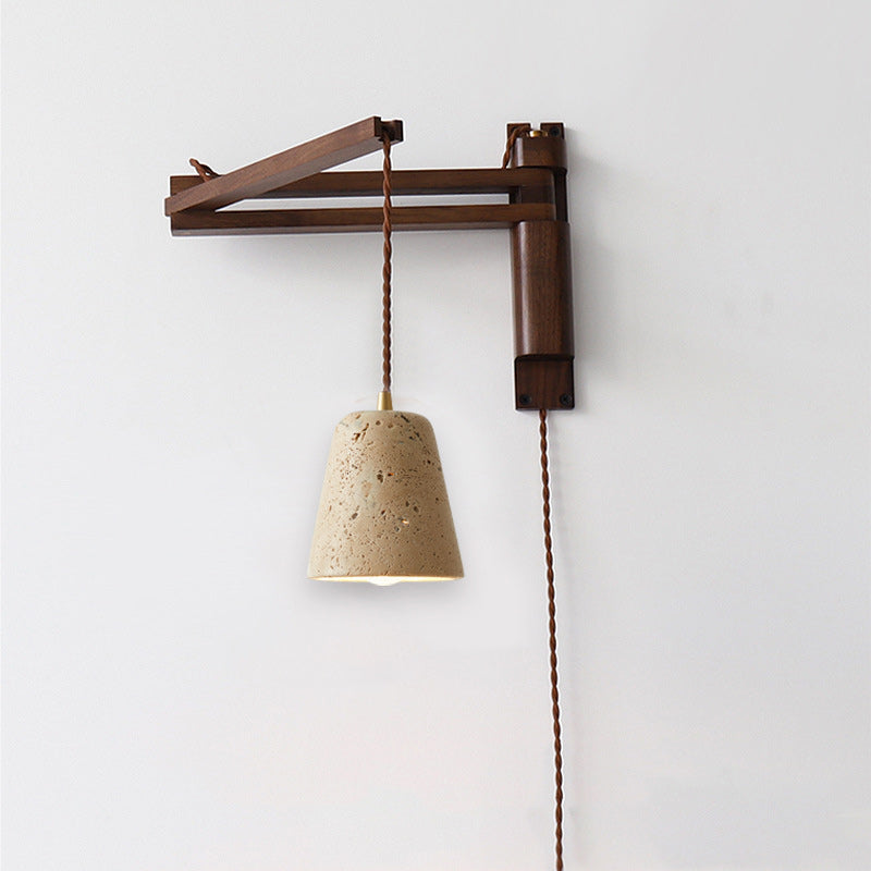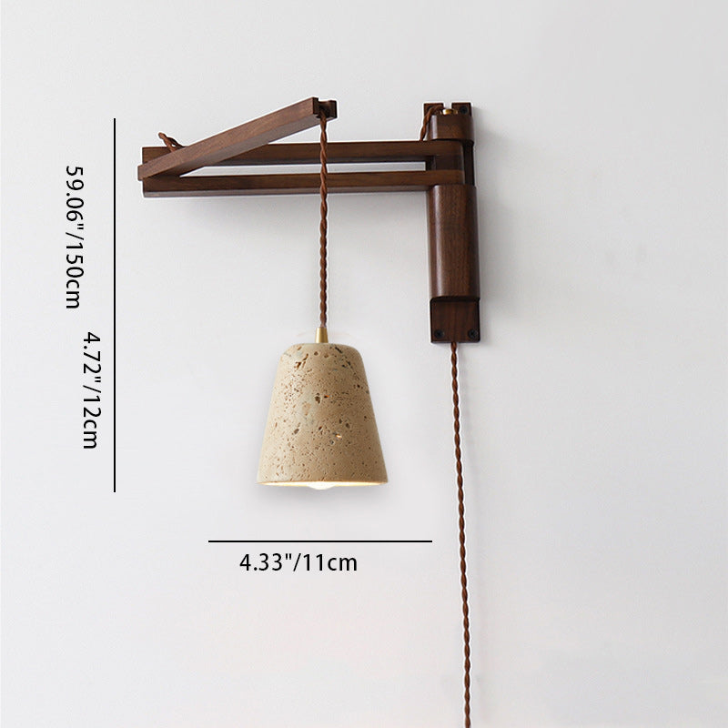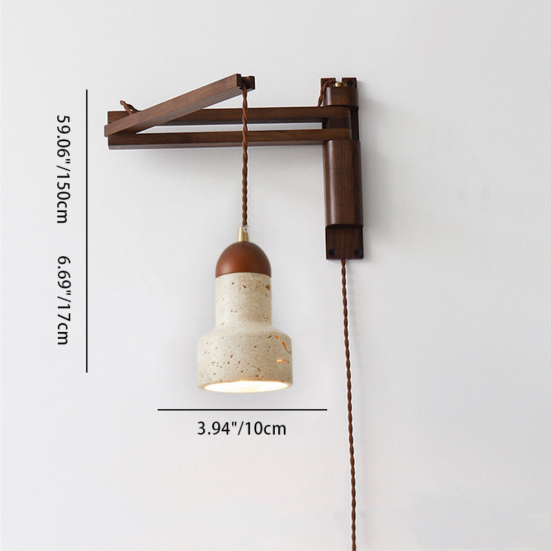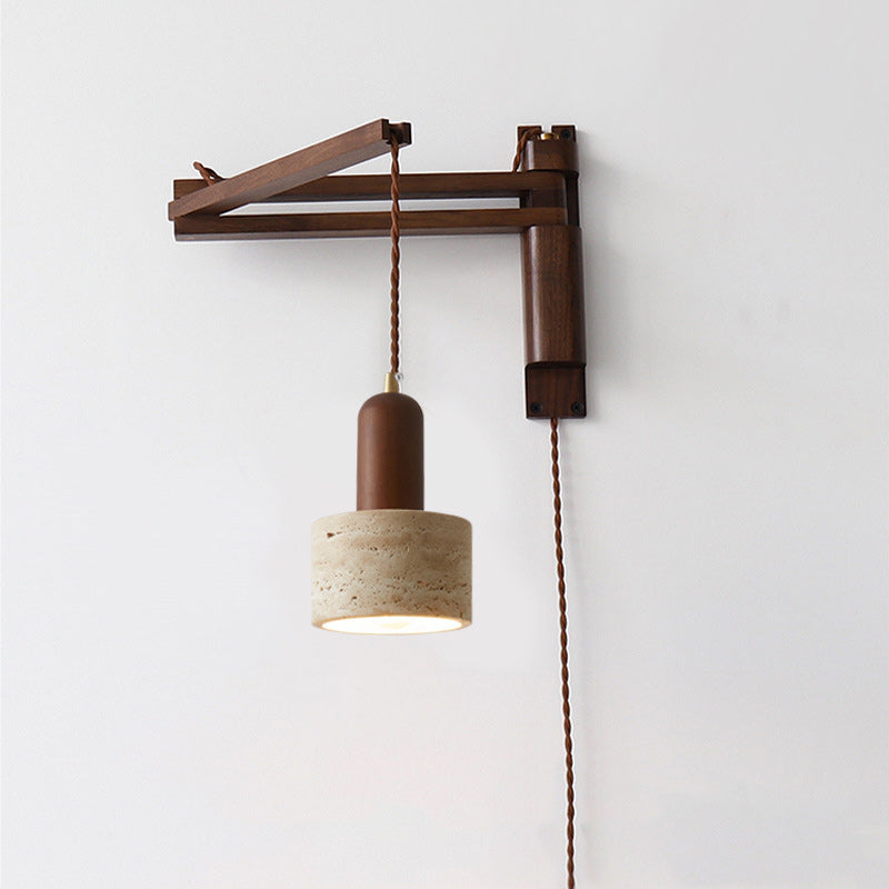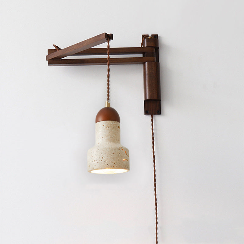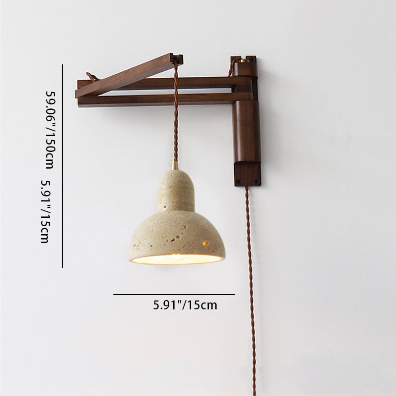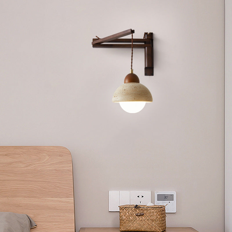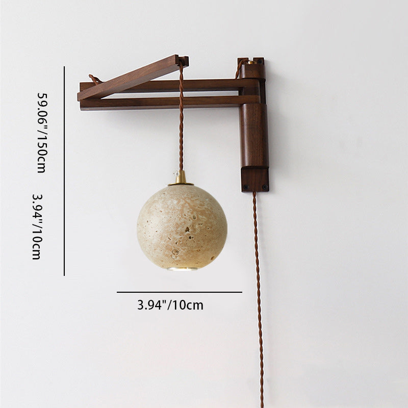 伝統的な日本の木製トラバーチン丸型シェード1灯式折りたたみ式壁取り付け用燭台ランプ(リビングルーム用)