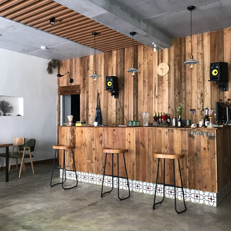 Traditional Retro Square Solid Wood Metal Bar Stool Footrest For Dining Room