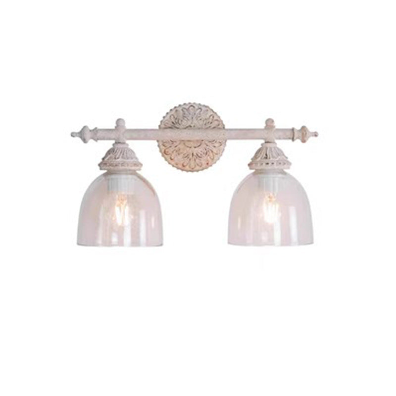 伝統的で素朴なアンティーク調の彫刻が施された鉄製ガラスカップシェード、2灯ミラーフロントウォールスコンスランプ(バスルーム用)