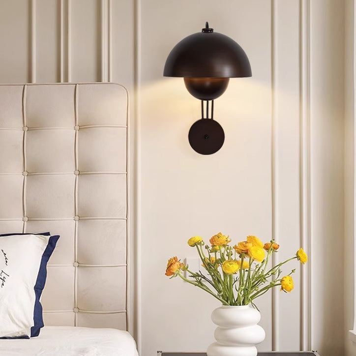 寝室用、伝統的な素朴なドーム型アイアン1灯壁取り付け用燭台ランプ