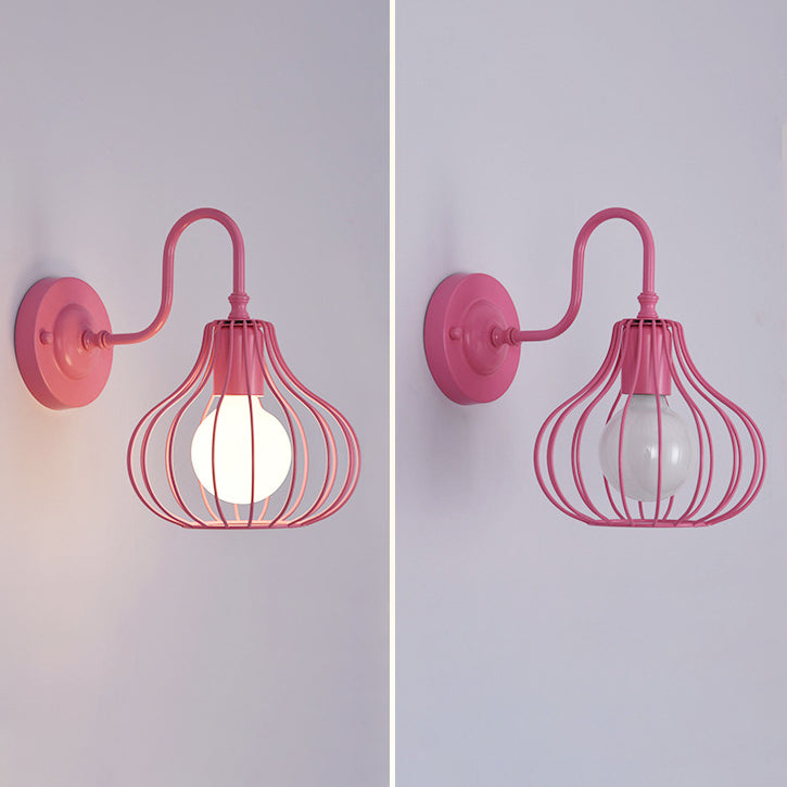 伝統的な素朴な鉄製フレームのパンプキン型1灯壁取り付け用燭台ランプ(リビングルーム用)