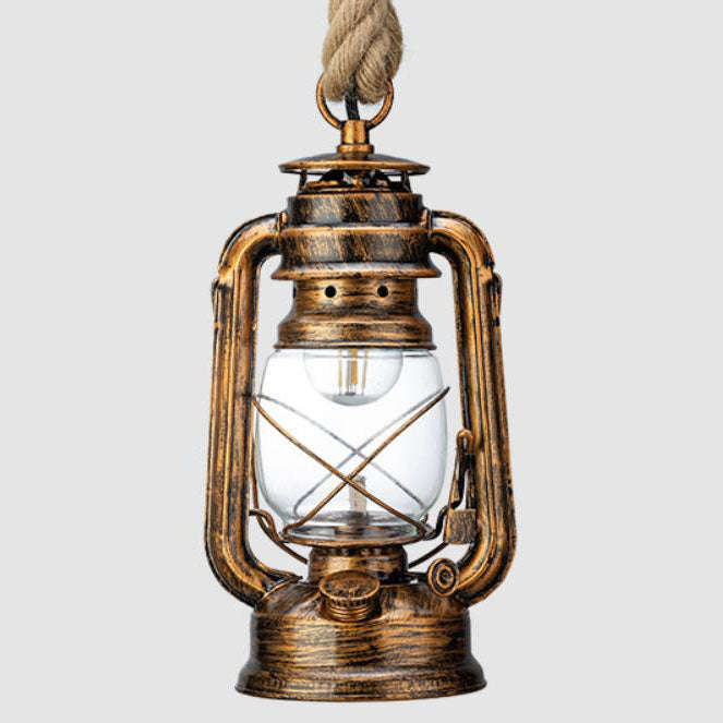 伝統的な素朴な灯油ランタン 鉄製ガラス 1灯ペンダントライト リビングルーム用