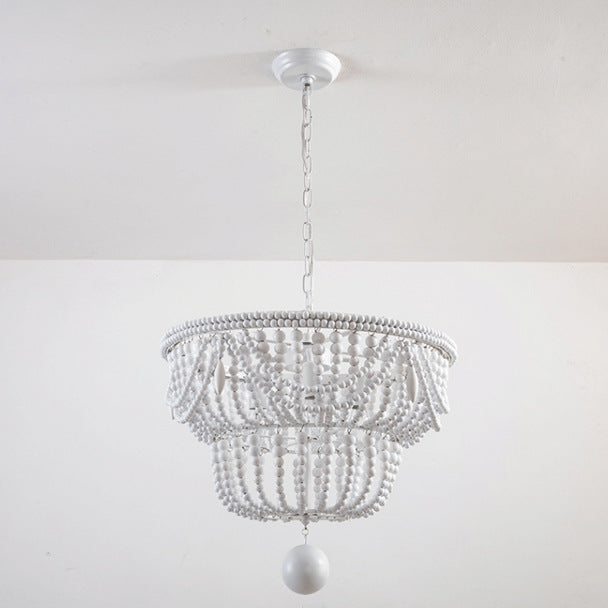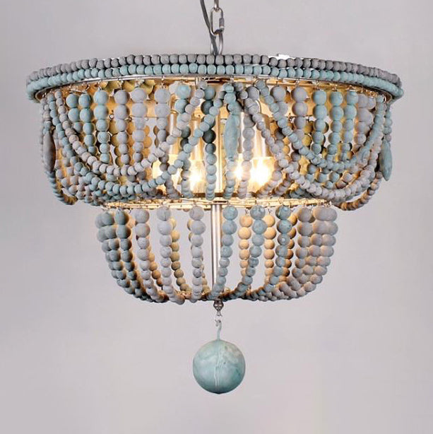 伝統的な素朴なランタン球形鉄製木製ビーズ4灯シャンデリア(リビングルーム用)