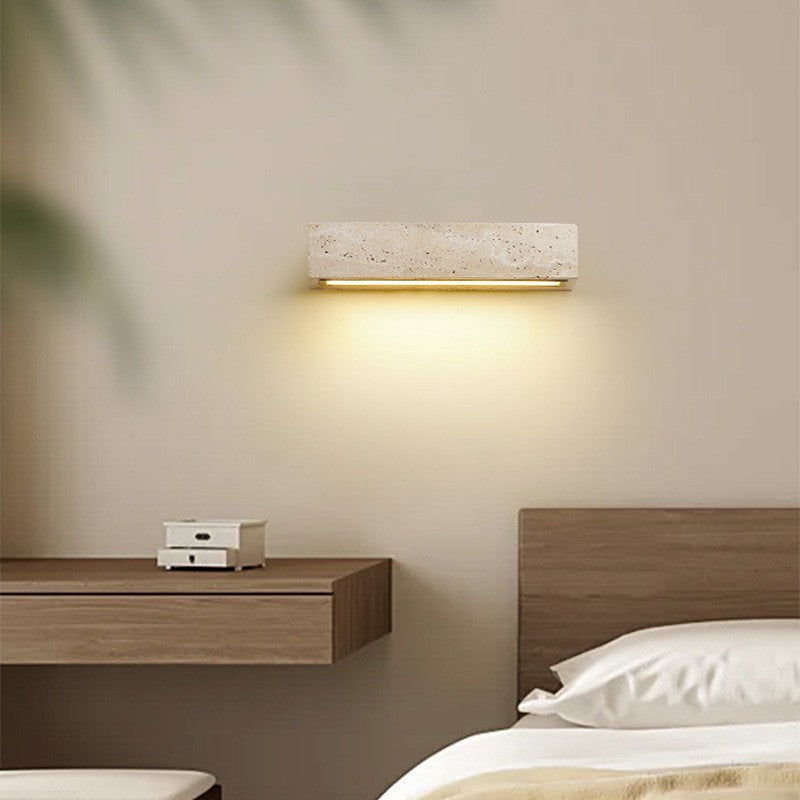伝統的な素朴な長方形キューブ型イエロートラバーチンLED壁取り付け用燭台ランプ(寝室用)