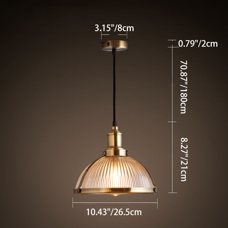 ダイニングルームに最適な、伝統的な素朴な半円形の鉄製ガラス製1灯ペンダントライト