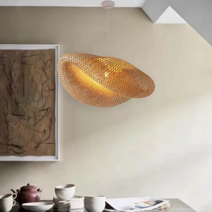 伝統的な素朴なシェル竹製1灯ペンダントライト(リビングルーム用)