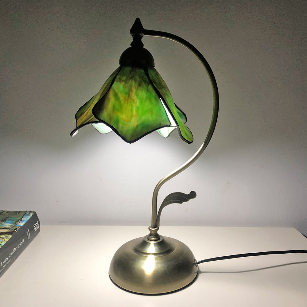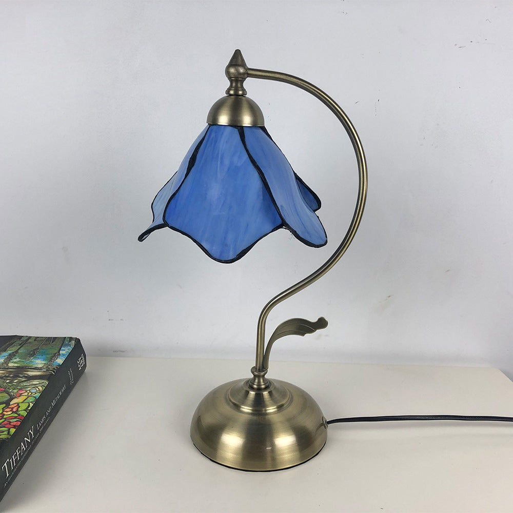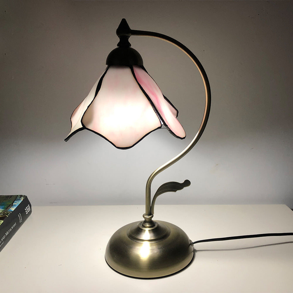 Traditional Tiffany Conical Glass Iron 1-Light Table Lamp For Bedroom