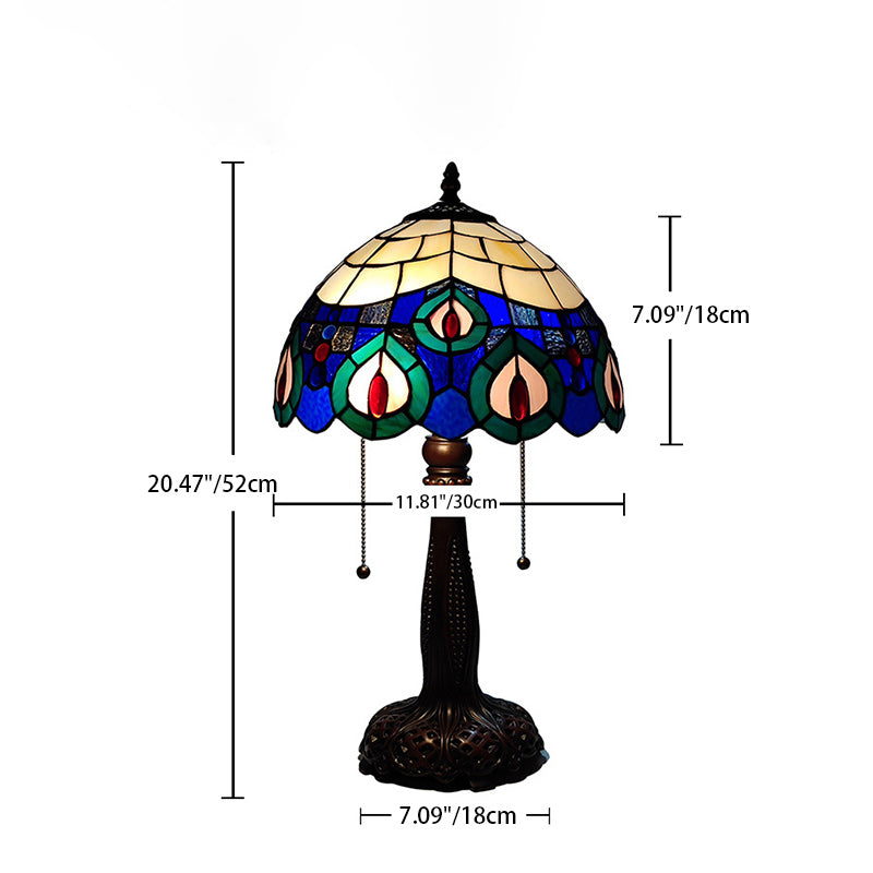 Traditional Tiffany Half Round Cylinder Petal Dragonfly Stained Glass Resin 2-Light Table Lamp For Bedroom