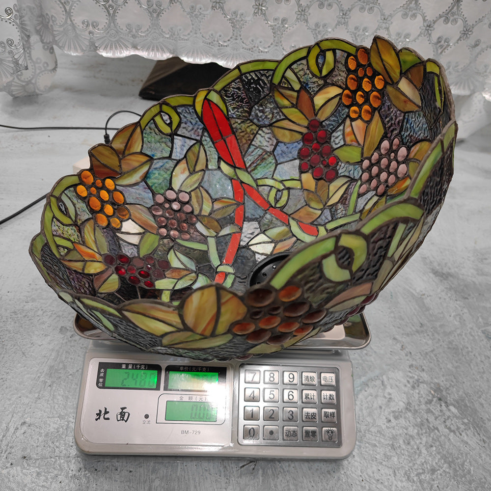 Traditional Tiffany Resin Glass Dome Grape Cow Diamond Pretty Woman Base 2-Light Table Lamp For Bedside