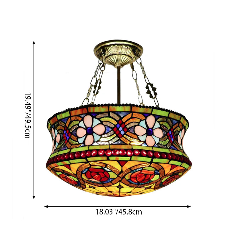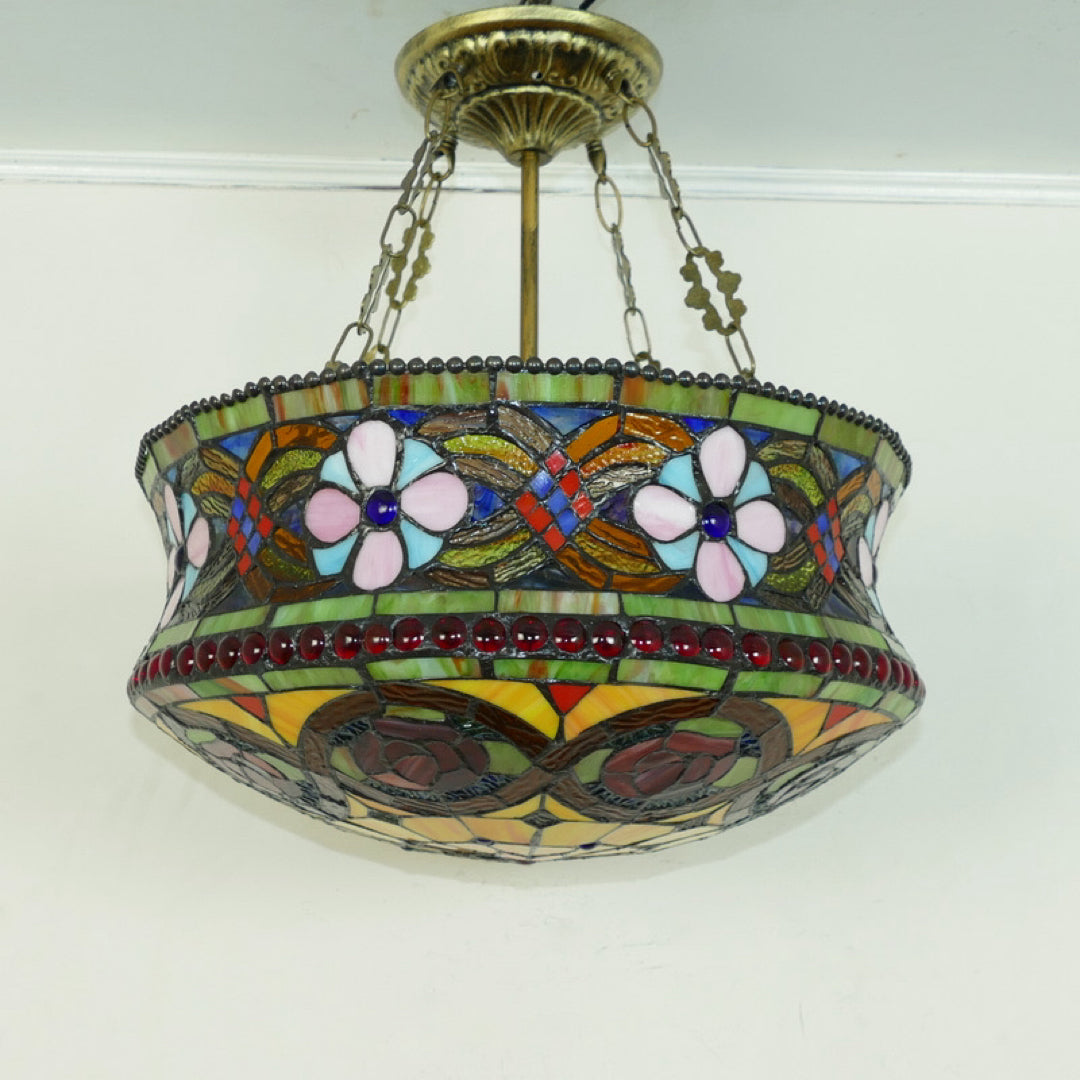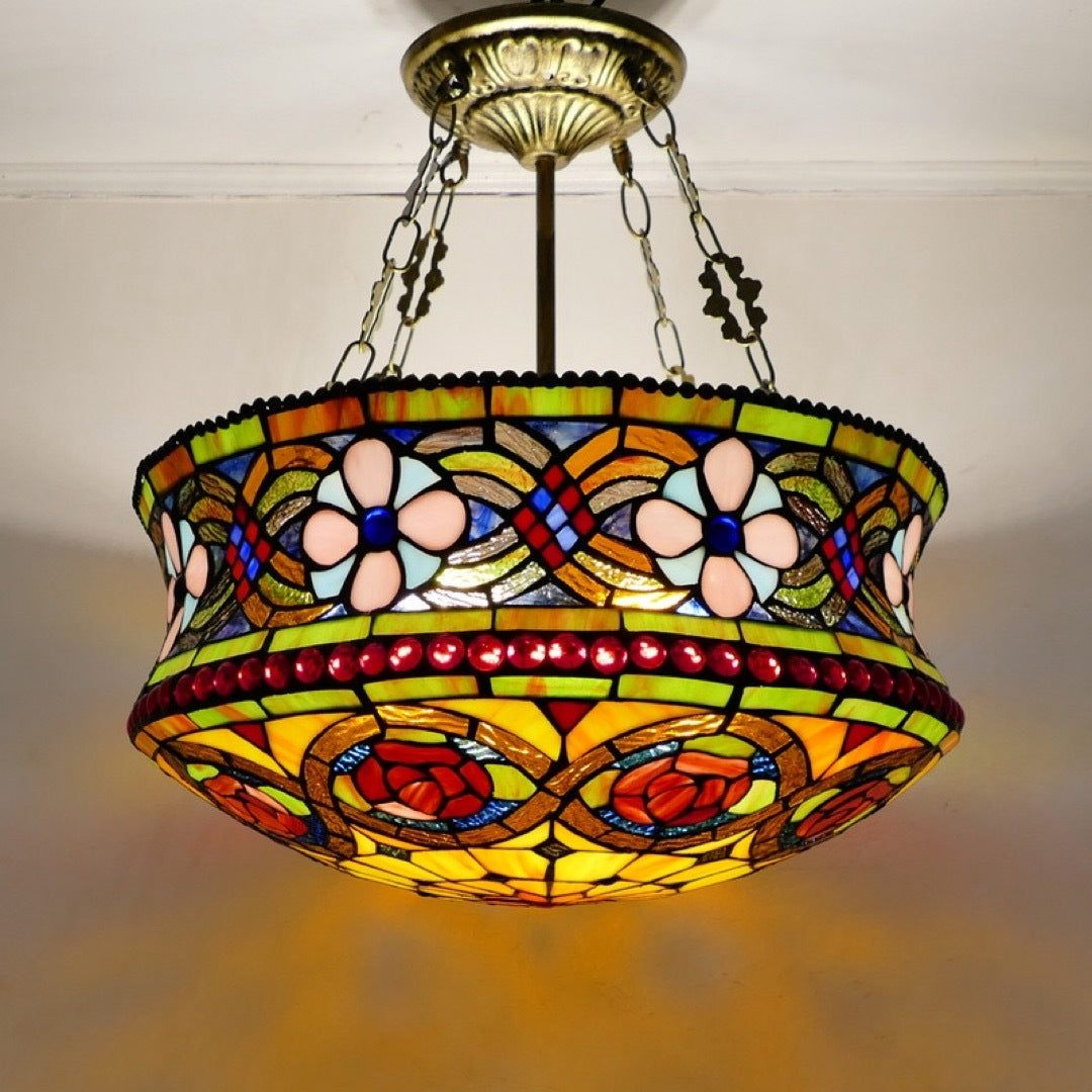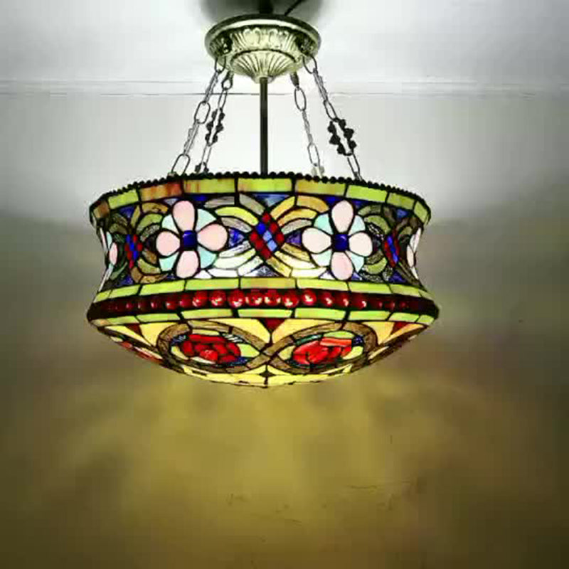 伝統的なティファニーローズフラワーパターンステンドグラスシリンダー5ライトシャンデリアリビングルーム用
