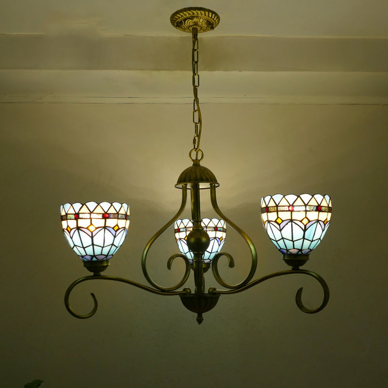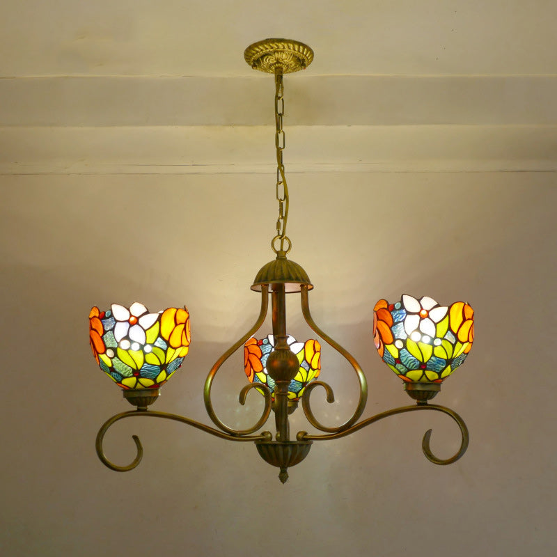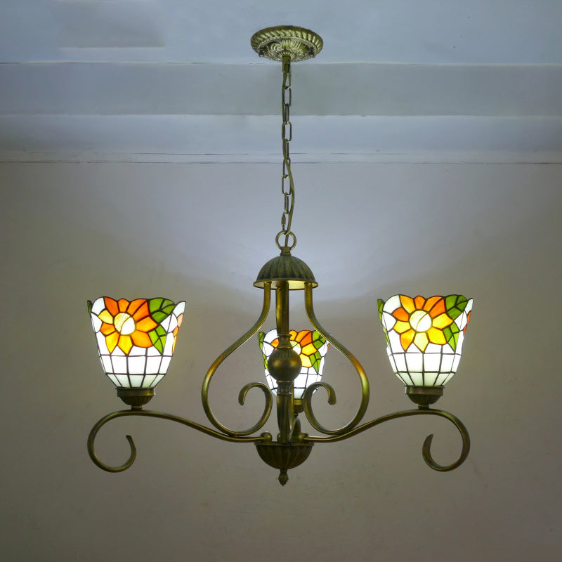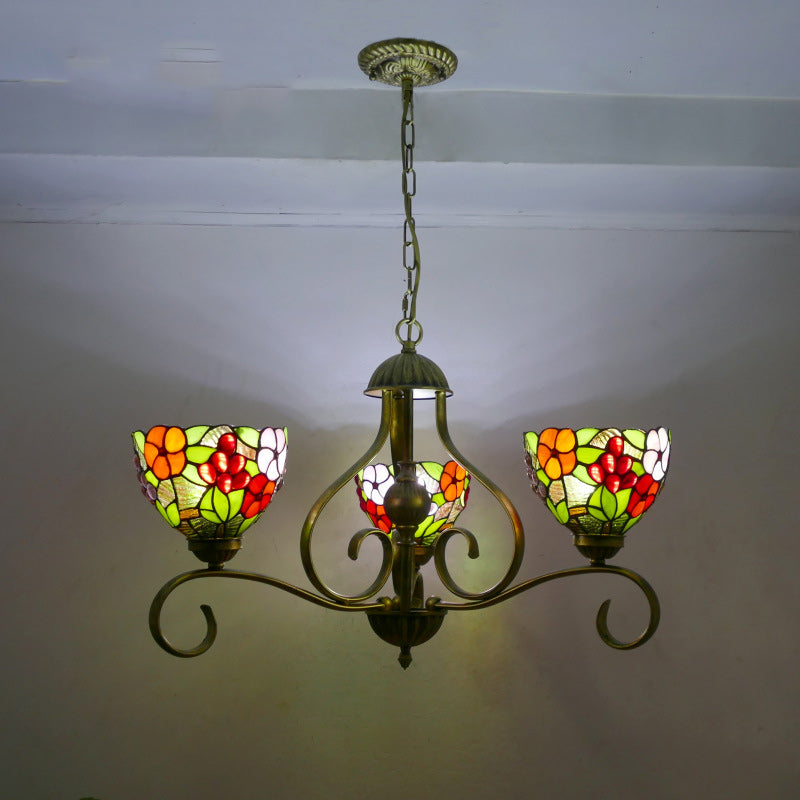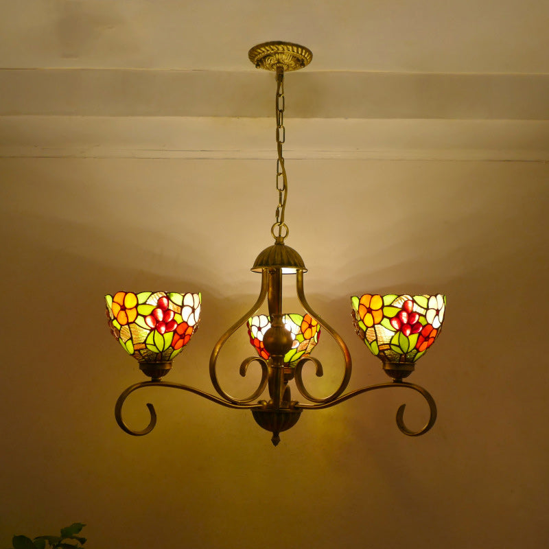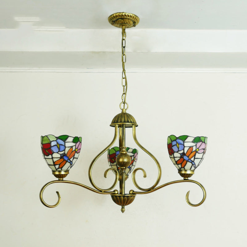 伝統的なティファニーの半円曲線枝ガラス鉄製3灯シャンデリア(リビングルーム用)